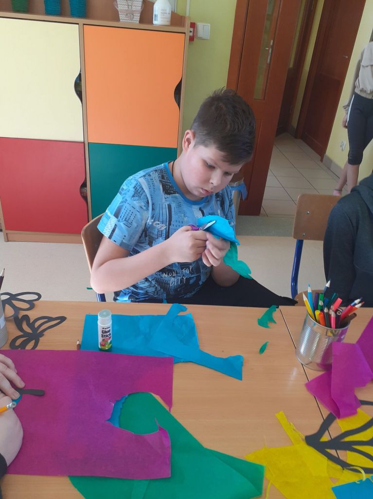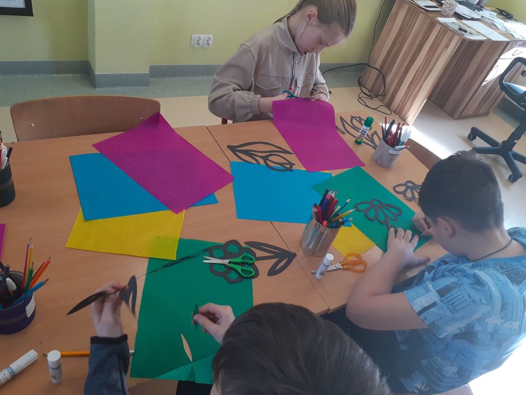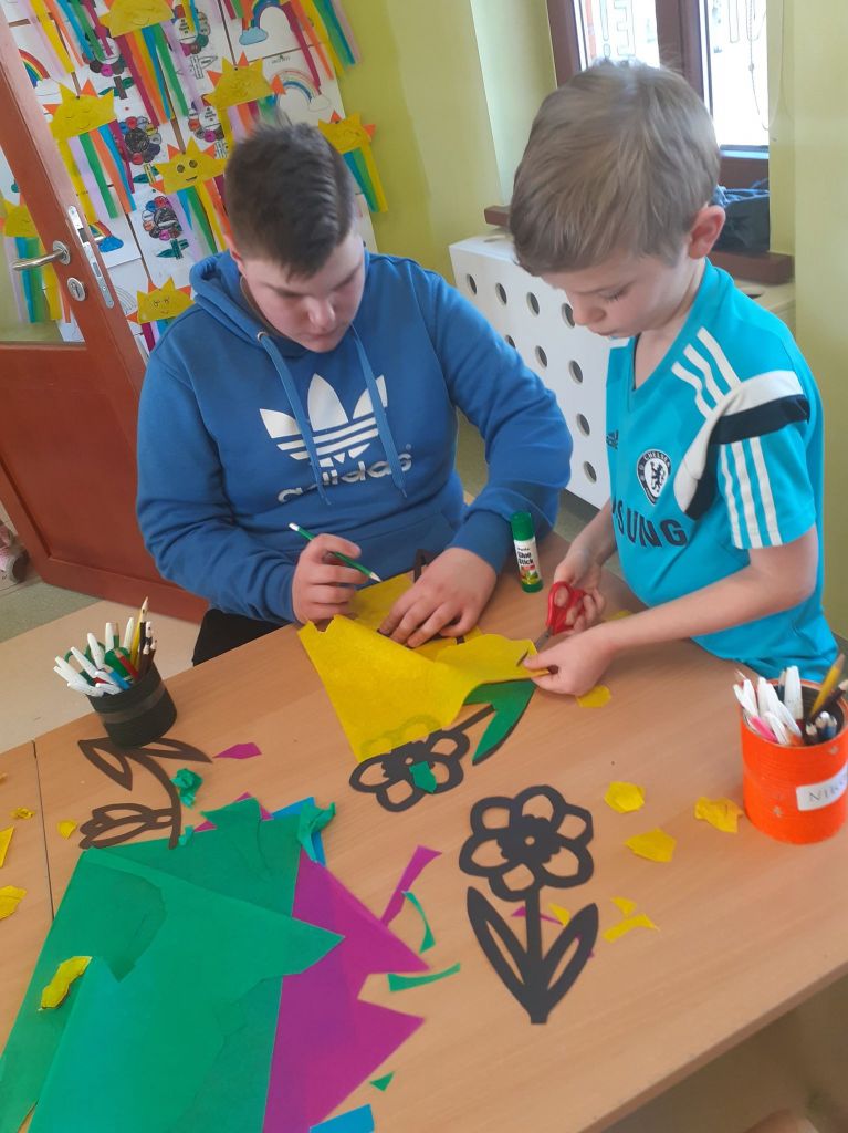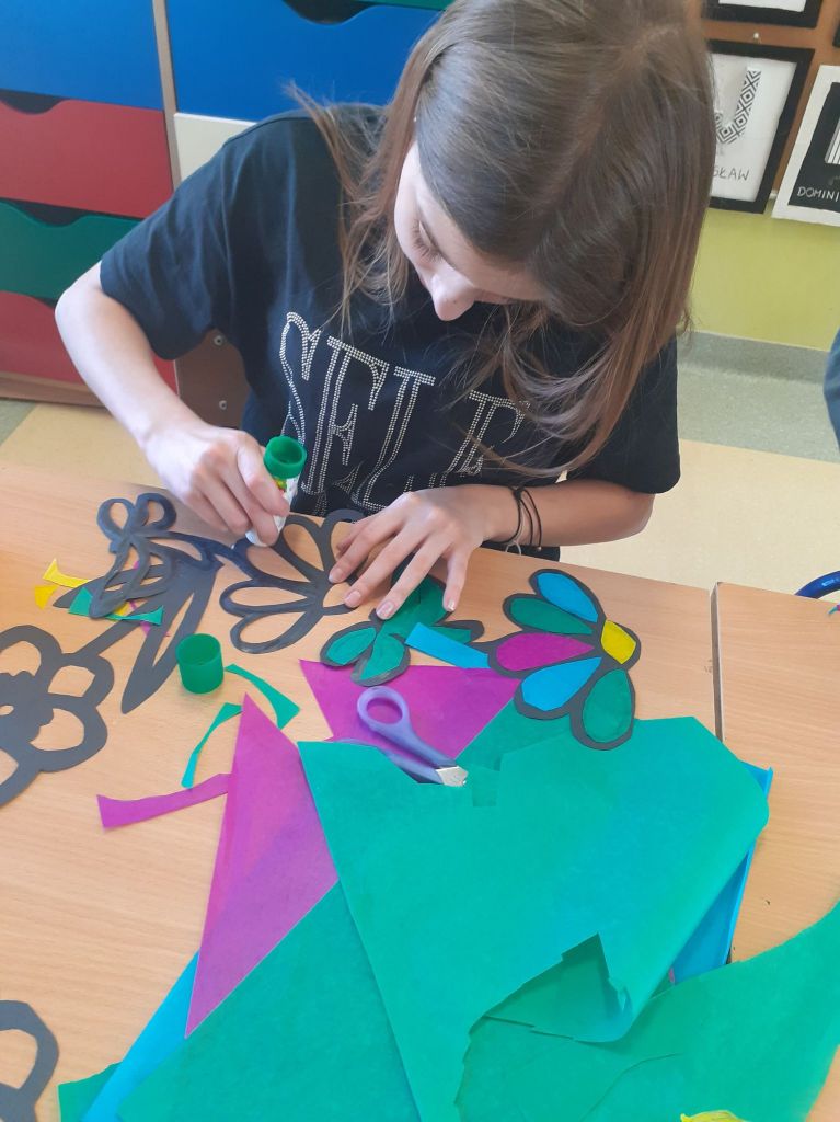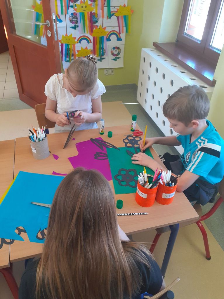Nie chcieliśmy jednak być tak monotematyczni, więc w przerwie wykonaliśmy wiosenne witraże na okna. Wyglądają fenomenalnie, kiedy słońce wpada przez nie do sali. Od razu przyjemniej się zrobiło.