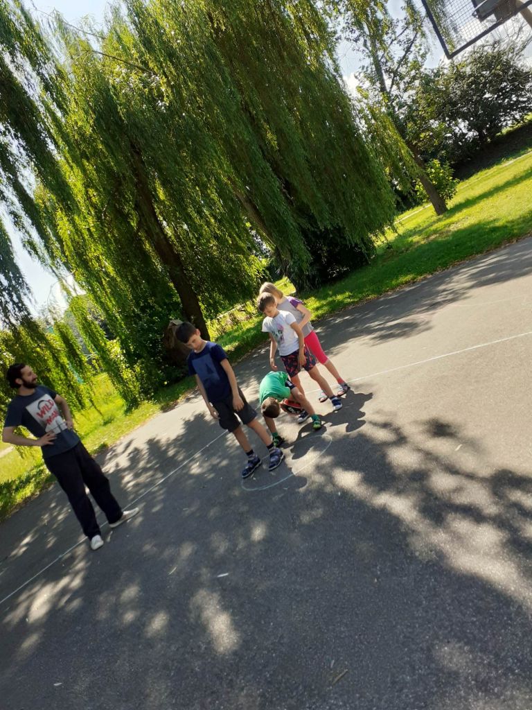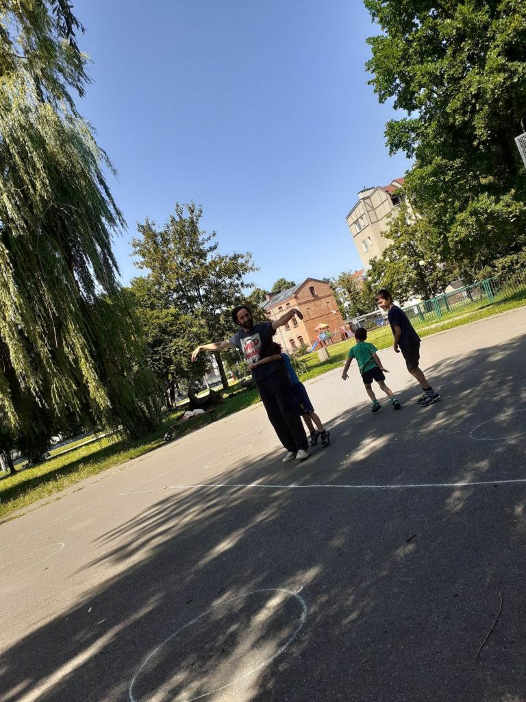 Czwartek upłynął nam na zabawie na świeżym powietrzu. Julia i Amo przygotowali dla nas mnóstwo gier i zabaw z piłką. Niektóre były nam znane, ale były też takie, które okazały się absolutną nowością. Było dużo rywalizacji, dużo energii i dobrej zabawy. Dziękujemy im za ten dzień!