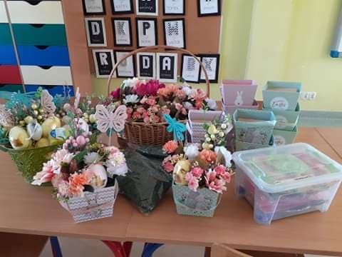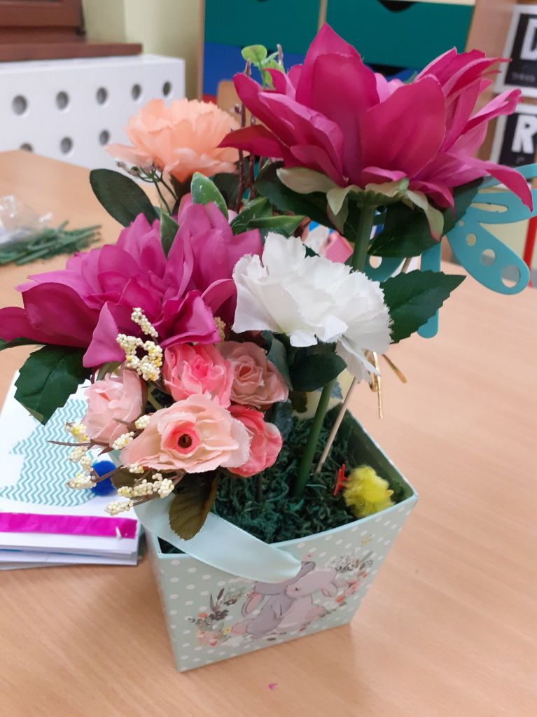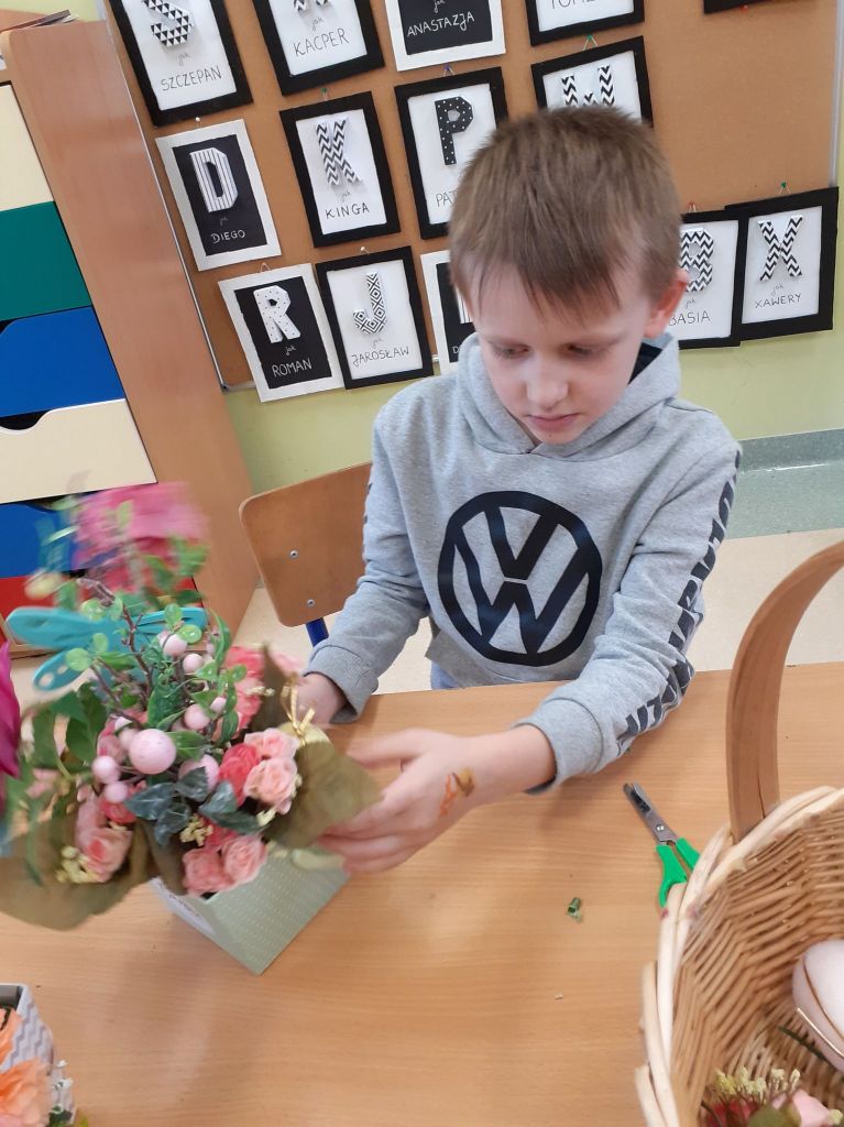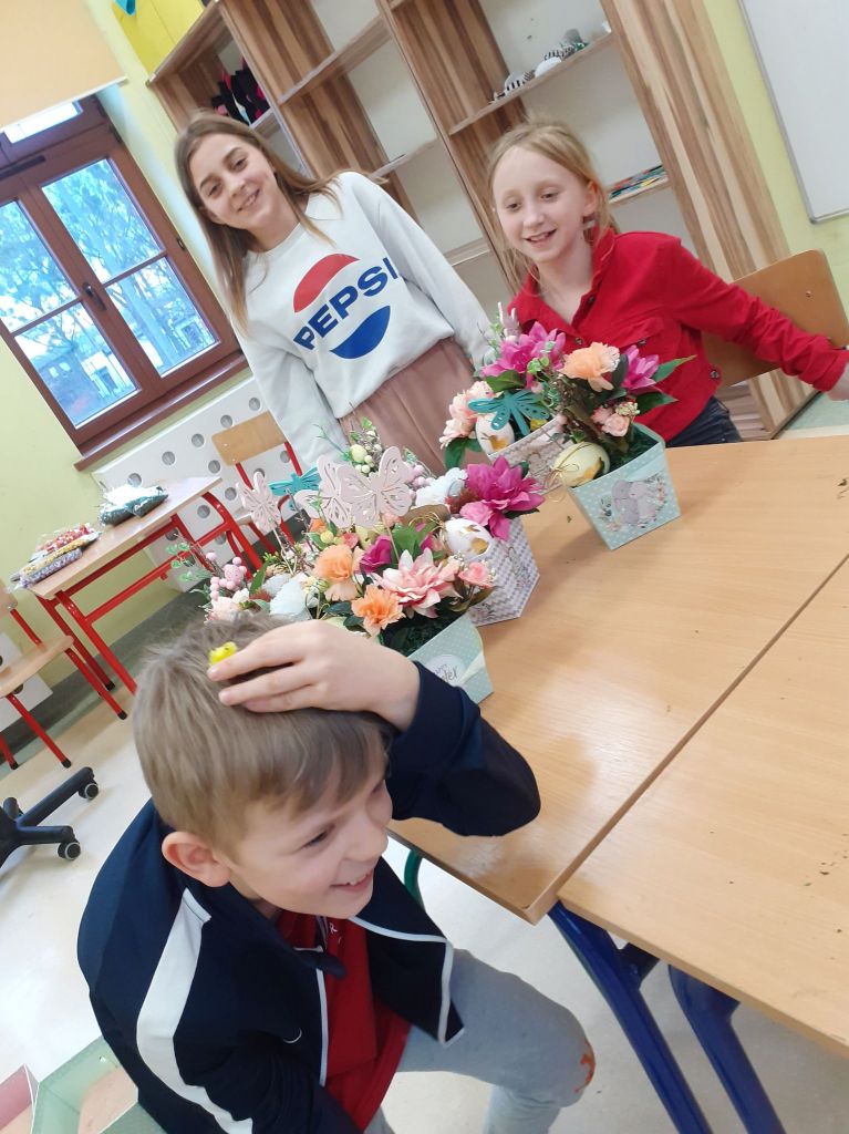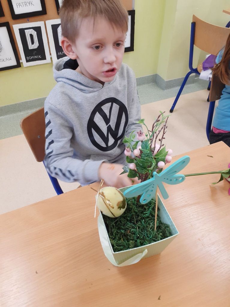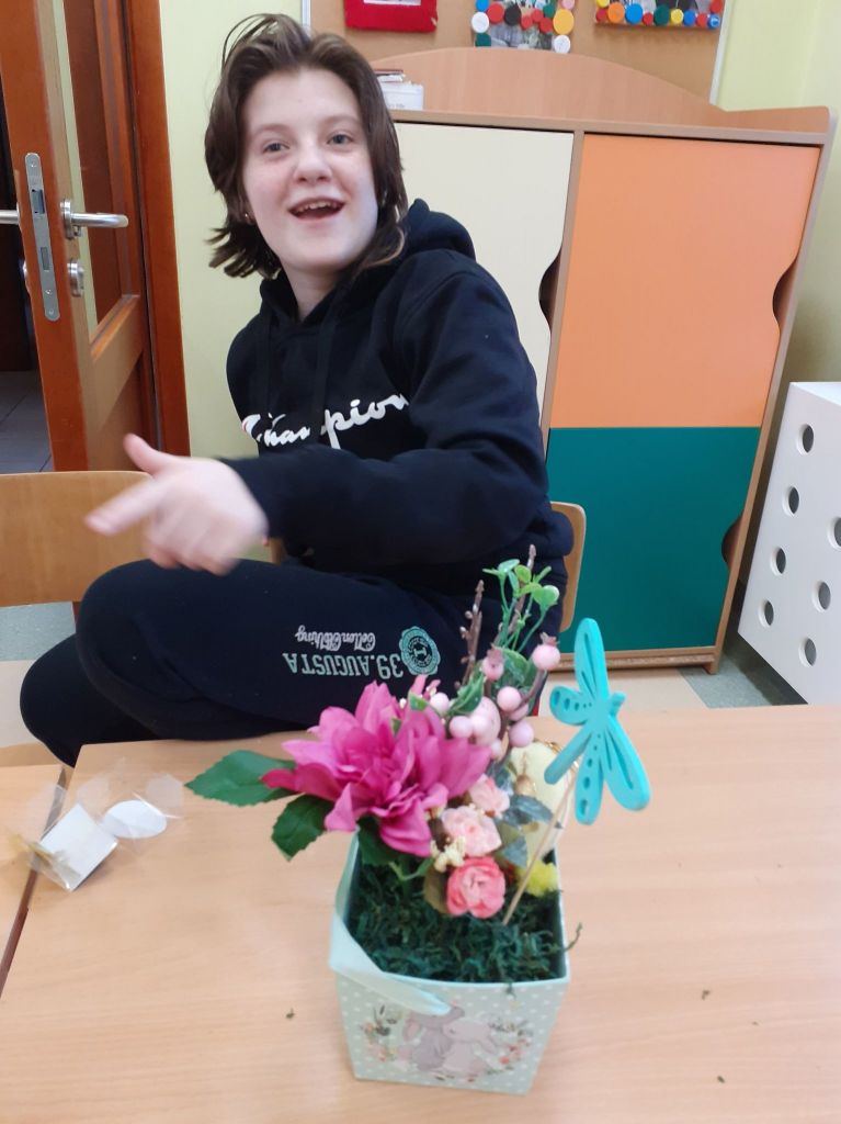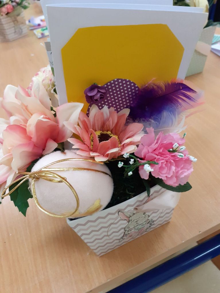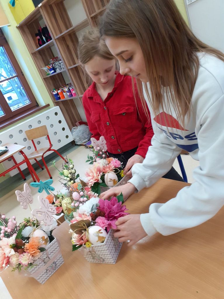 Ogarnęło nas wielkanocne szaleństwo. Tym razem na warsztat wzięliśmy stroiki, które po drobnych modyfikacjach mogą być także całoroczną ozdobą naszych domów. Wystarczyły kolorowe pudełka, gąbka florystyczna, sztuczne kwiaty, ozdoby na piku, jajka, trochę mchu. Każdy z nas stworzył własną kompozycję. Wyszło pięknie! Wiosna i Wielkanoc powoli wkrada się do naszych domów.