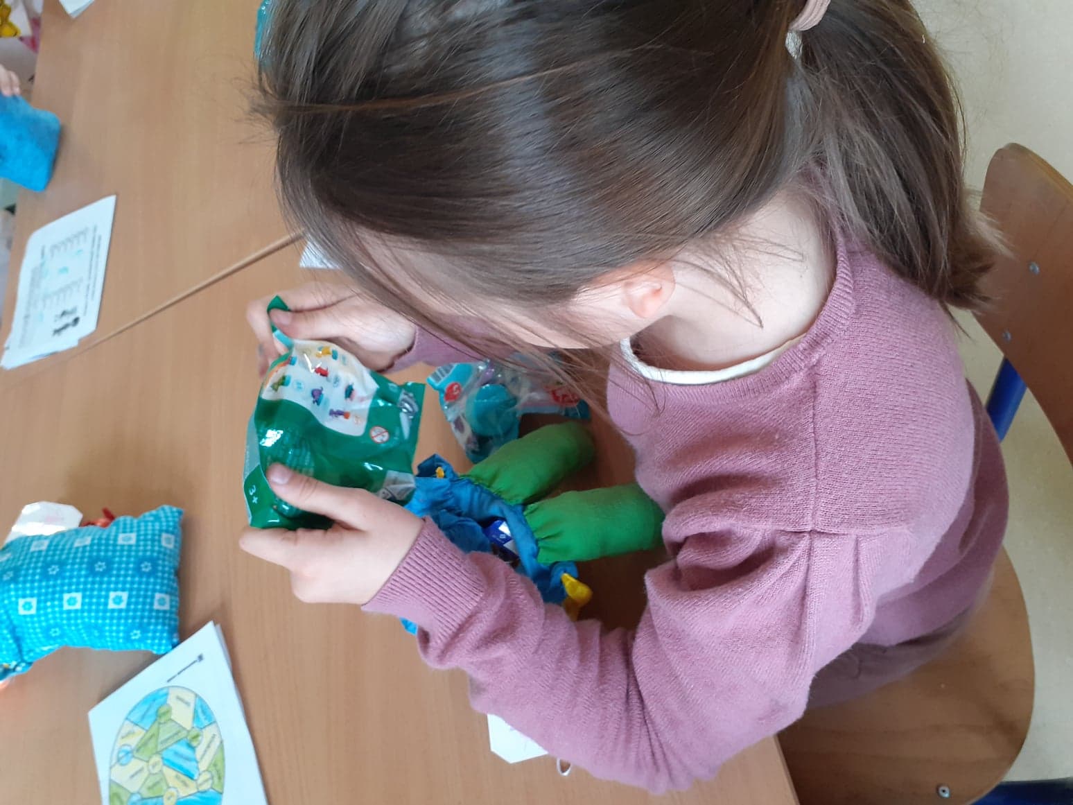 Podołaliśmy wszystkiemu i nasze wysiłki zostały nagrodzone! W zajączkowych woreczkach znaleźliśmy słodkości, figurki dinozaurów i małe wielkanocne zawieszki.