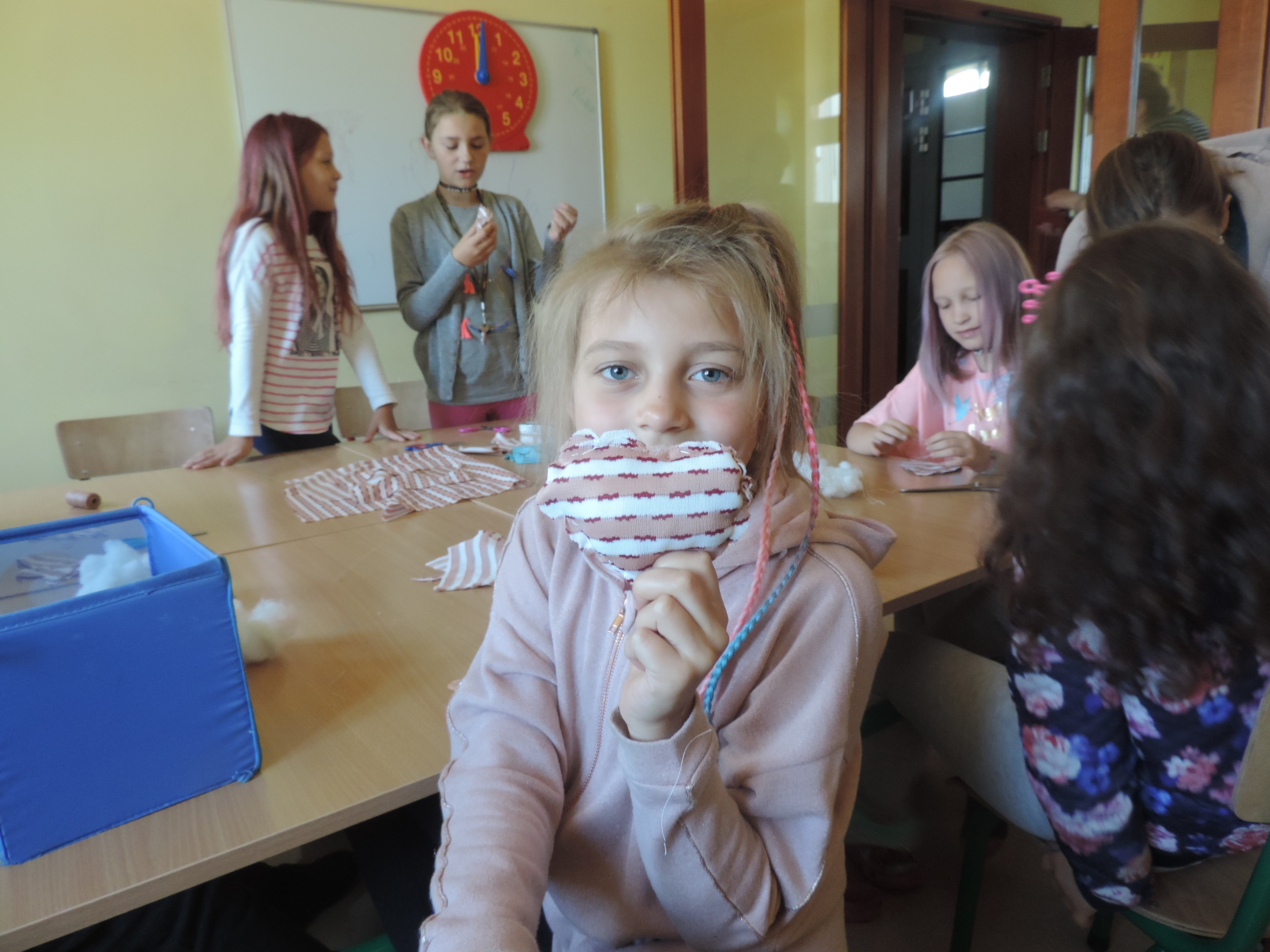 Szyć się jeszcze nie uczyliśmy, więc postanowiliśmy nadrobić te zaległości. Pomysł nam się bardzo spodobał. Zaczęliśmy od malutkich poduszeczek. Tak jak przypuszczaliśmy, nawleczenie nitki na igłę nie należy do najłatwiejszych zadań, ale później było już tylko lepiej. Jesteśmy zadowoleni z efektu końcowego.
