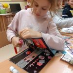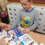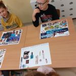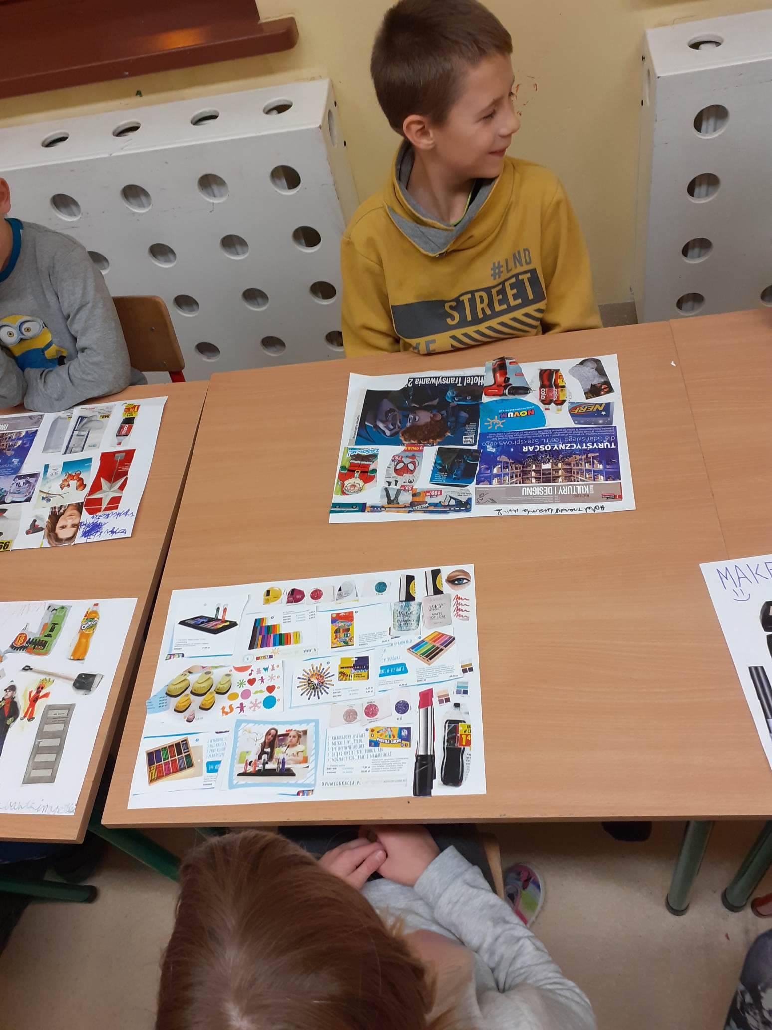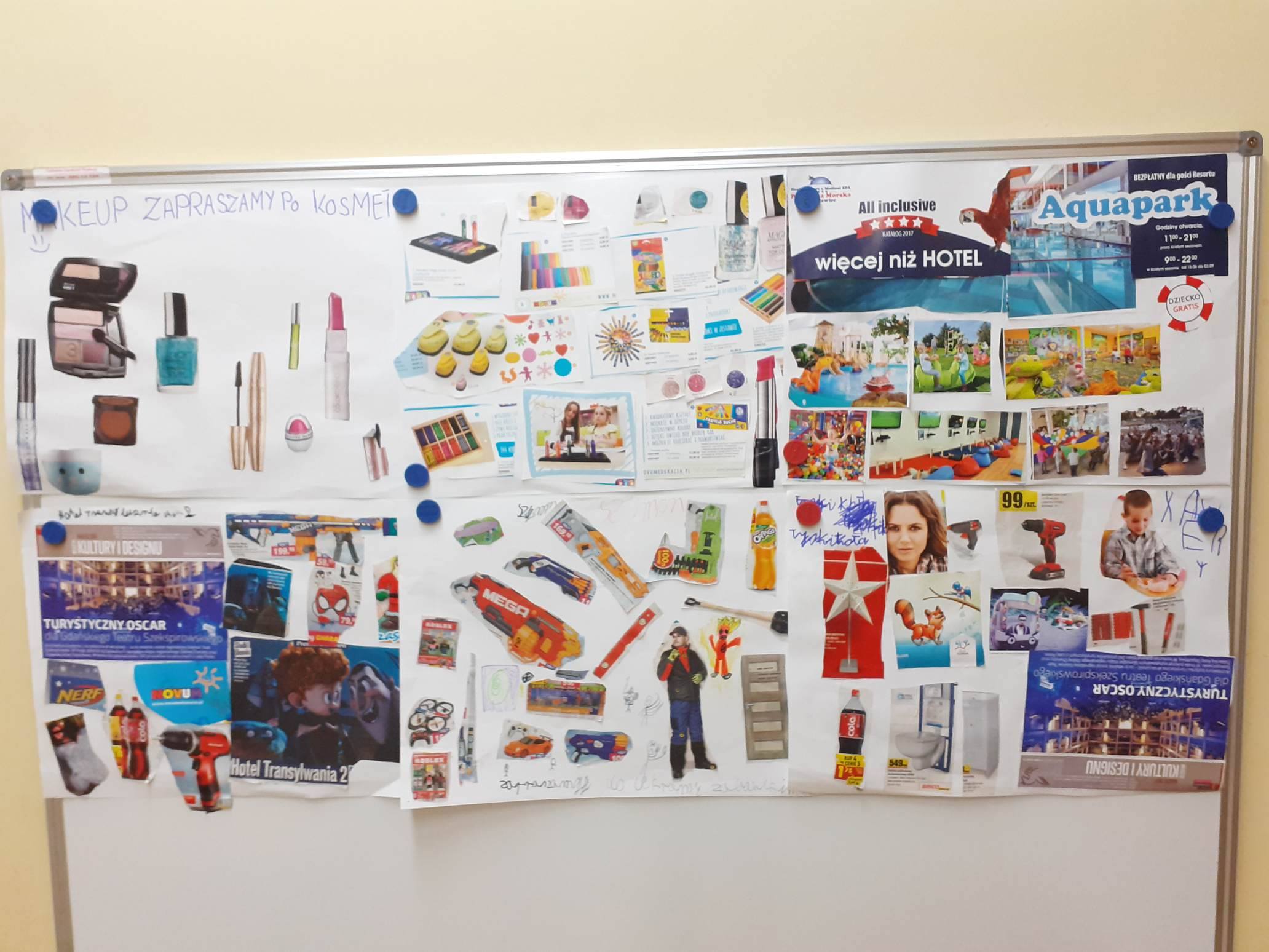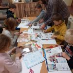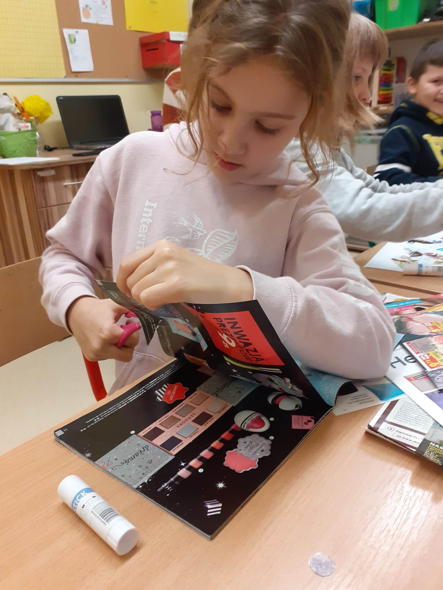Przejrzeliśmy stare gazety i zastanawialiśmy się co można z nimi zrobić. Okazało się, że nasz wolontariusz Amo ma na nie pomysł – tworzyliśmy kolaże. Wycinaliśmy to, co spodobało nam się z całej sterty prasy i umieściliśmy na naszych kartkach-plakatach. Później zastanawialiśmy się co wpłynęło na taki, a nie inny, nasz wybór. Było ciekawie. Pewnie jeszcze nie raz wrócimy do tej techniki.