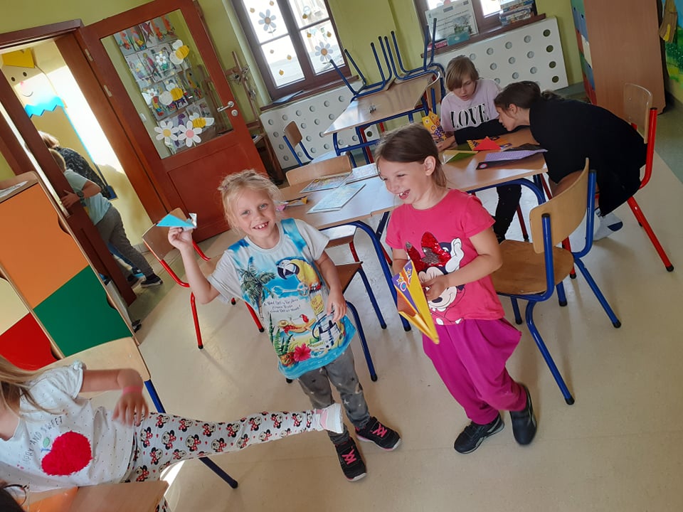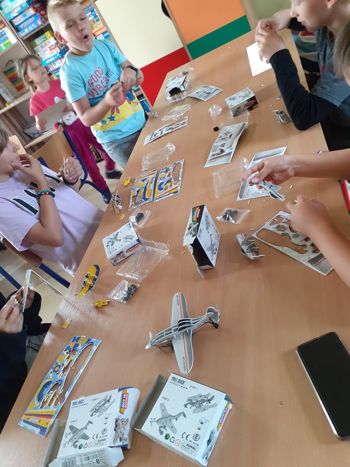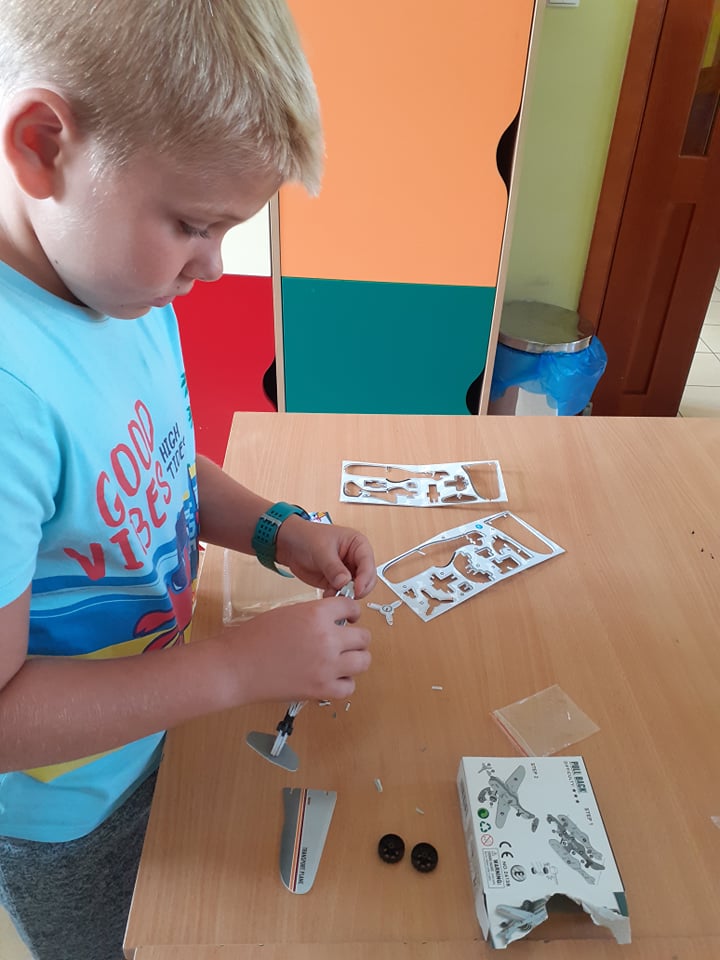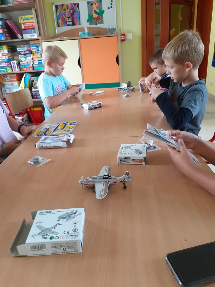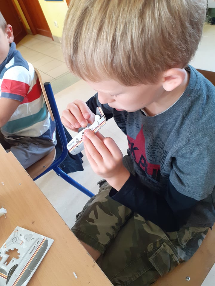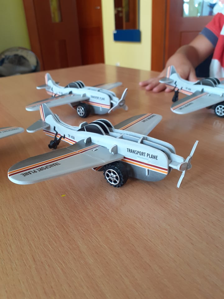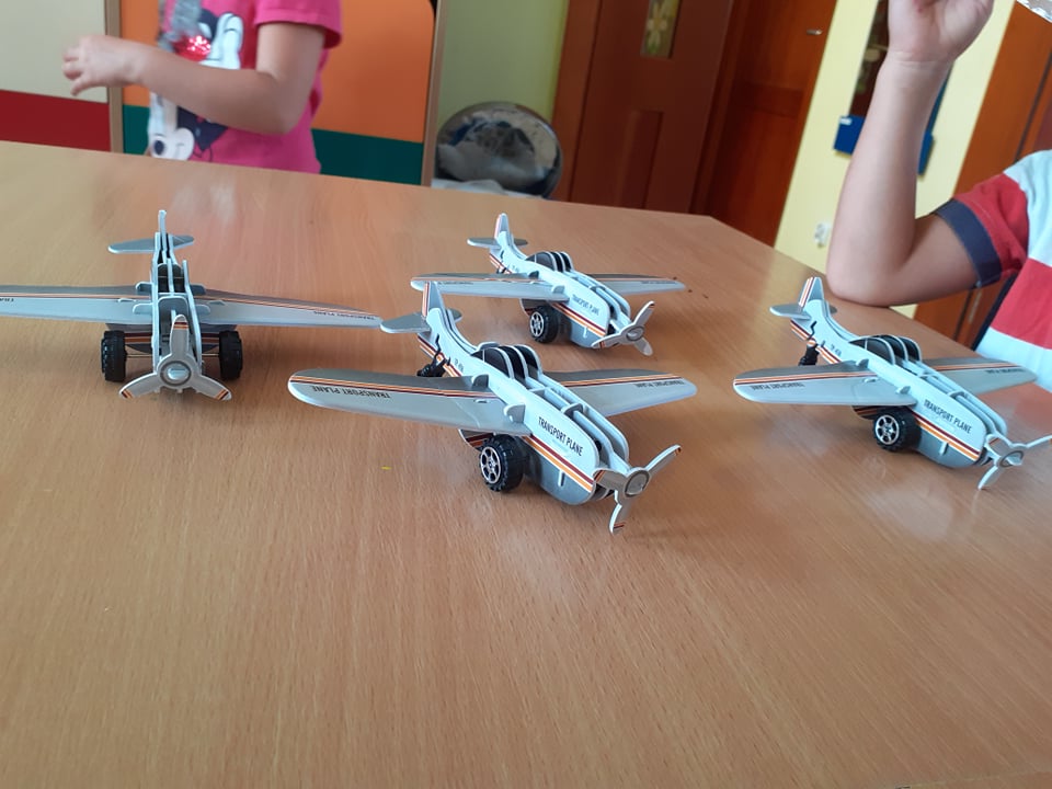 Ostatni tydzień wakacji spędziliśmy w powietrzu wśród samolotów, motyli, dmuchawców i ważek. Składaliśmy samoloty z papieru i takie trochę bardziej skomplikowane – w postaci puzzli 3D. Obie wersje posłużyły nam później do zabawy, czyli podróży w przestworza. Pozostając w temacie, przypomnieliśmy sobie także bajkę „Samoloty” – bardzo lubimy seanse filmowe.