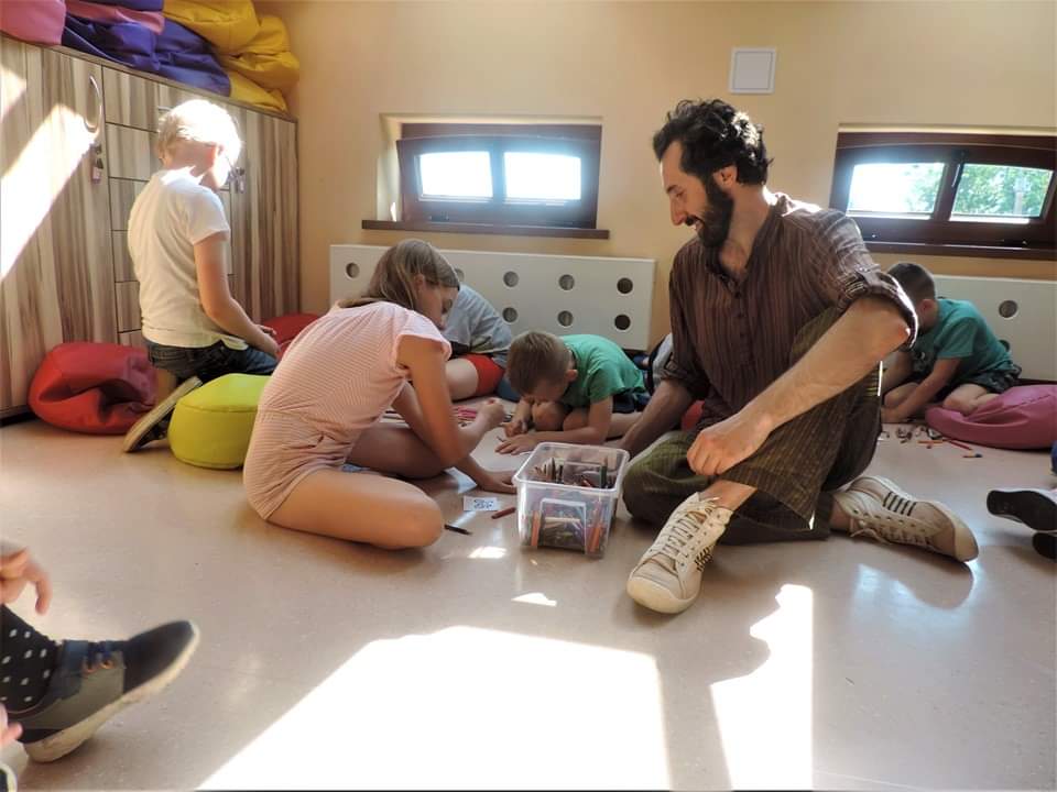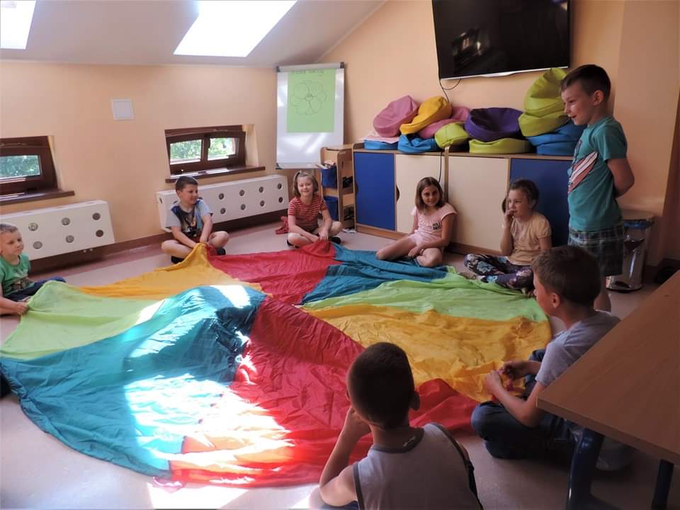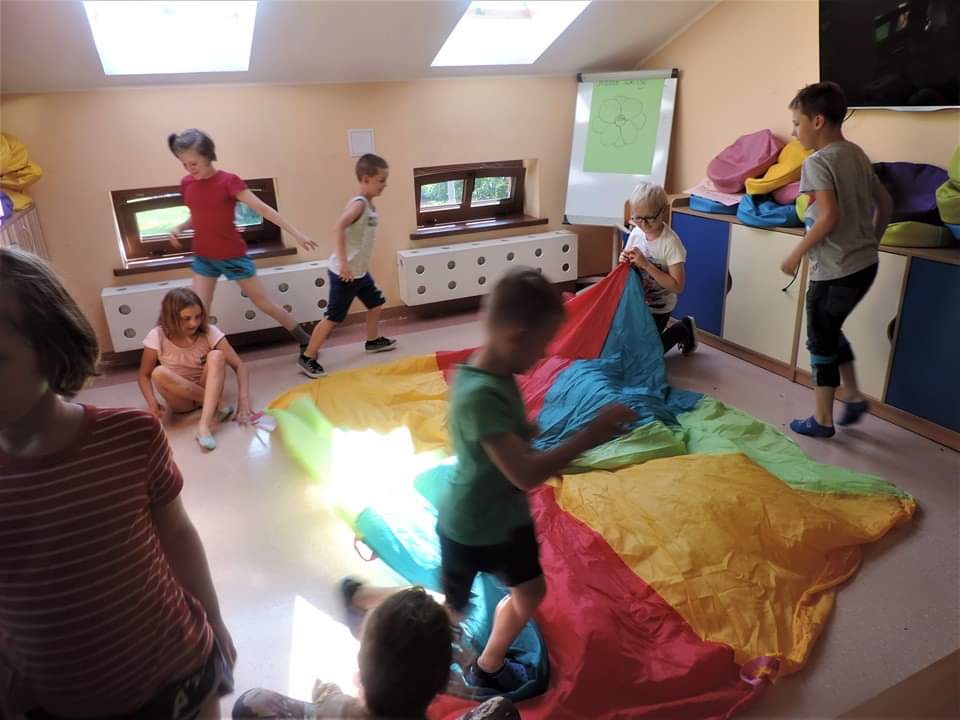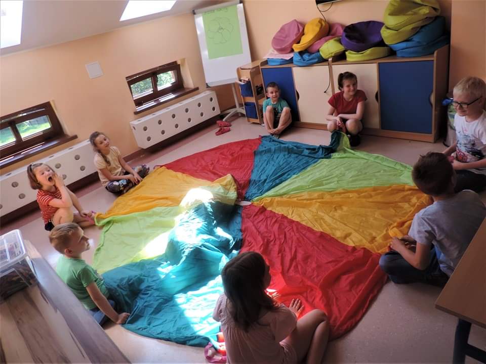 Czas na zabawę również się znajdzie. Dzisiaj sprawdzaliśmy naszą spostrzegawczość. Jedno z nas znikało pod chustą animacyjną i trzeba było zgadnąć kogo zabrakło. Jak się okazuje, mamy całkiem niezłe oko.