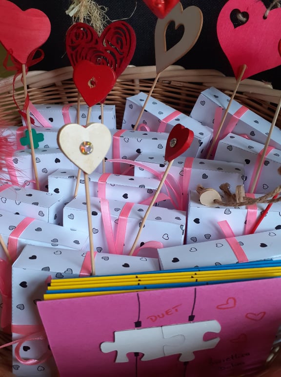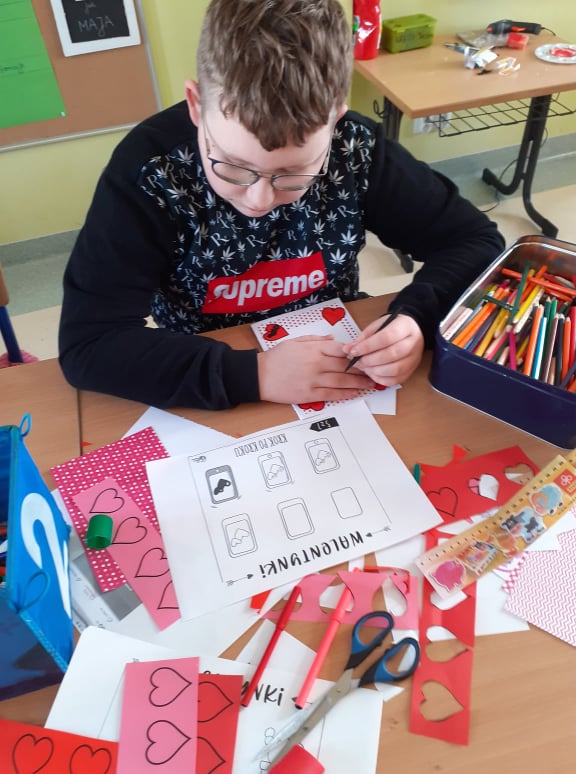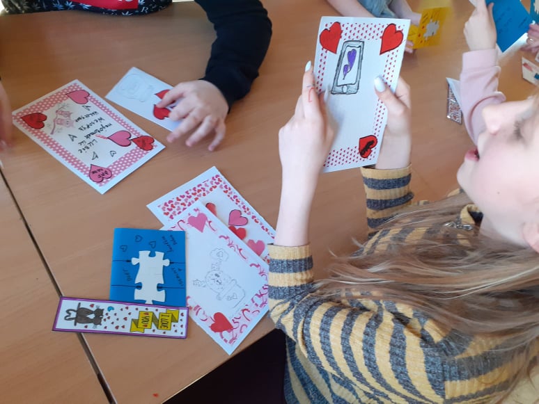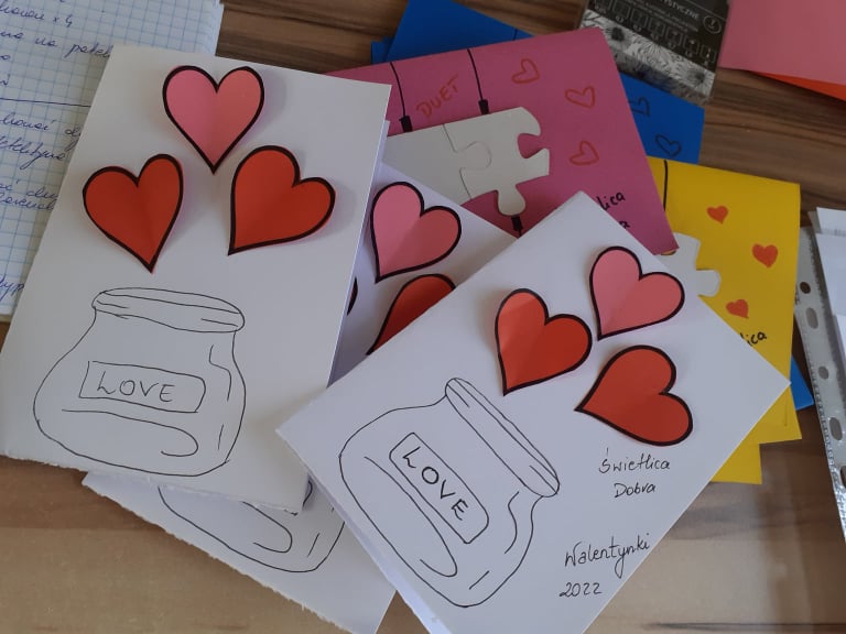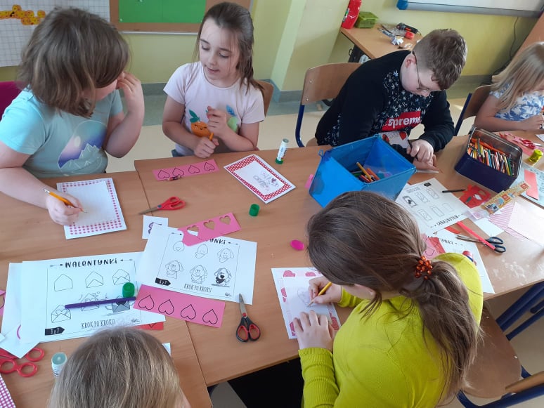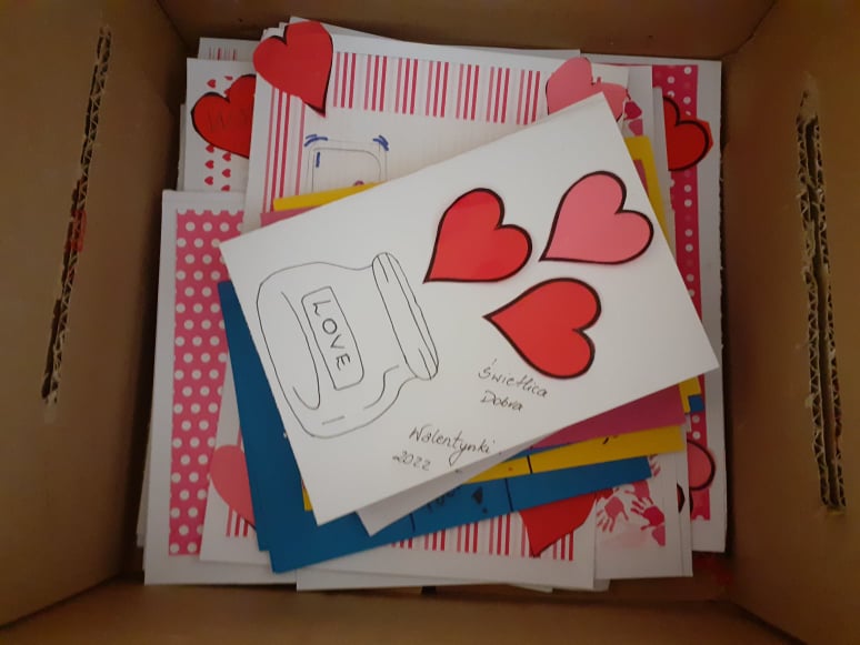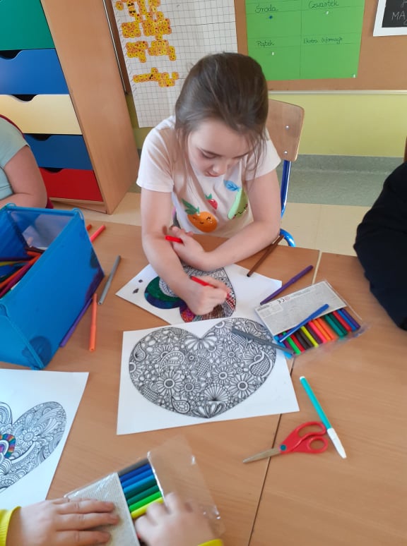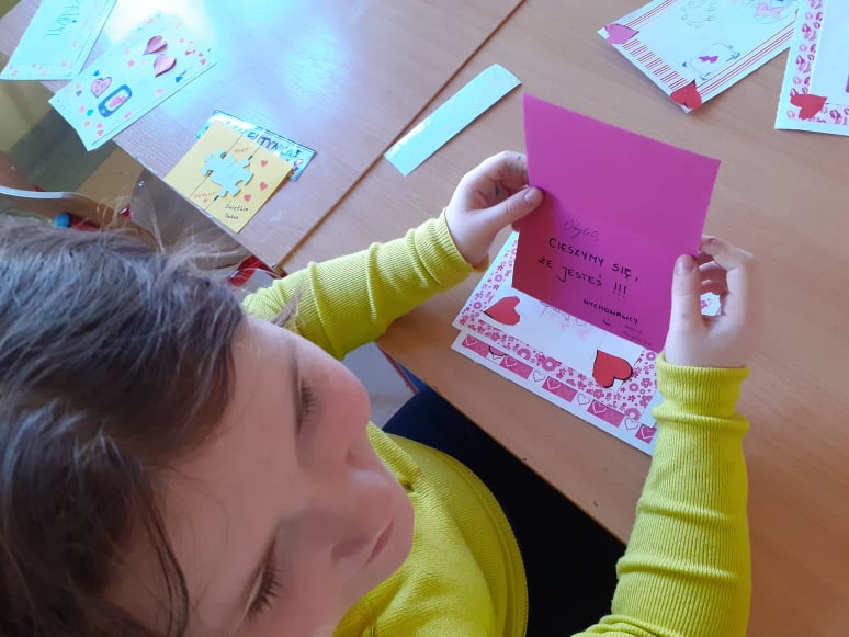 Początek ferii zimowych najlepszy z możliwych, bo w Walentynki, czyli w otoczeniu czerwono-różowych serduszek, wśród uśmiechów, miłych słów i gestów. Mieliśmy naszą walentynkową pocztę – każdy znalazł swoją walentynkę czy przyjaciela od serca. Powstały piękne kartki, zakładki do książek i kolorowanki serc. Były też upominki niespodzianki, które dzieci otrzymały na koniec dnia.