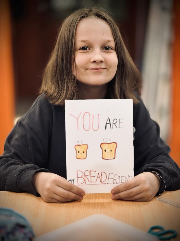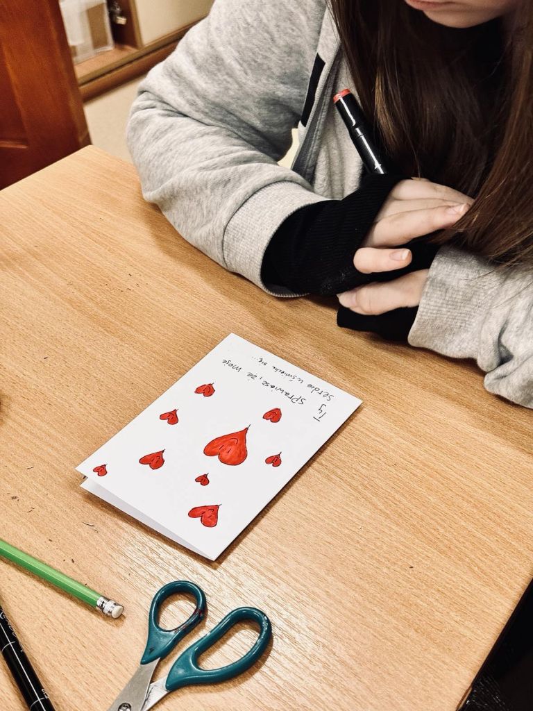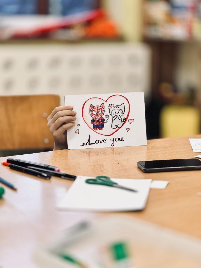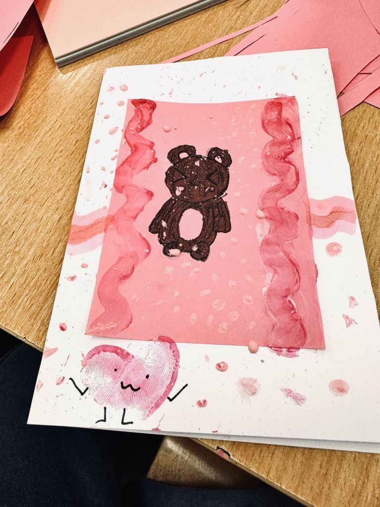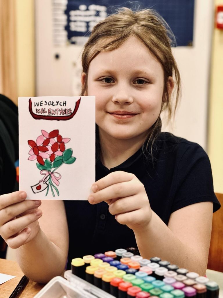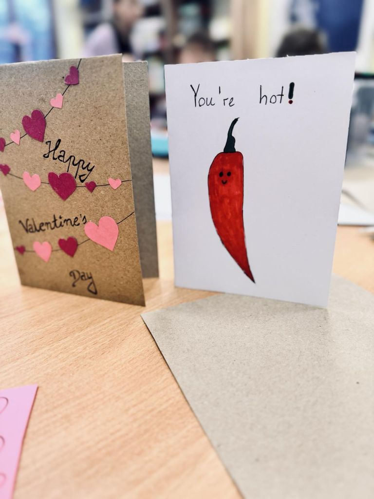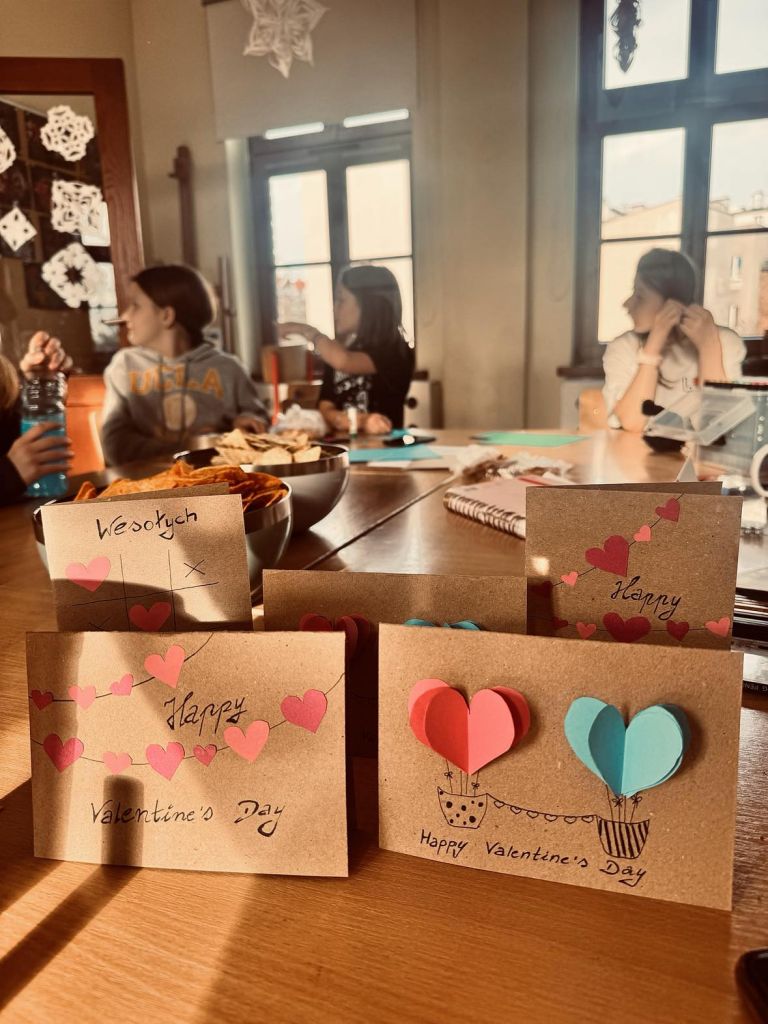 Wczoraj tworzyliśmy kartki walentynkowe i nie da się ukryć, że nasza kreatywność nie zna granic. Wyszło pięknie, miło i zabawnie dzięki temu, że niektórzy zastosowali gry słowne, takie jak: my life is butter with you, bee my valentine, hug me and never lego.