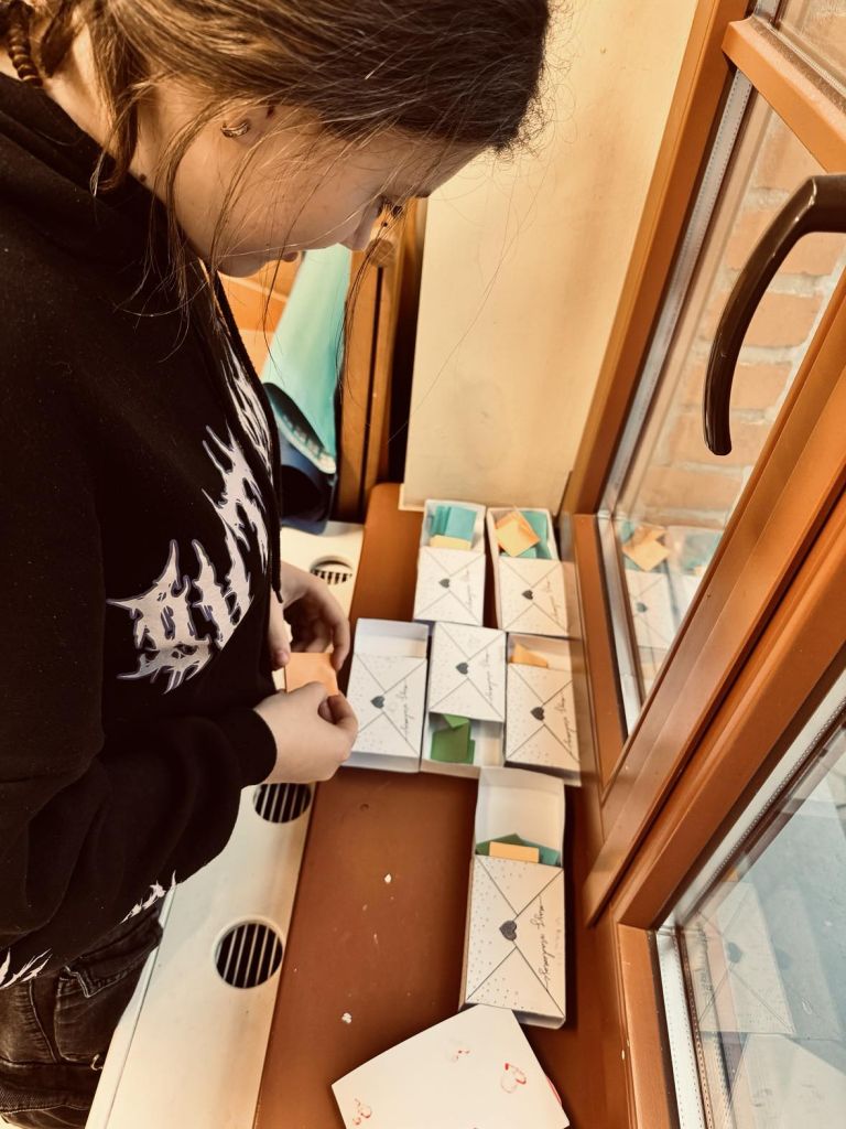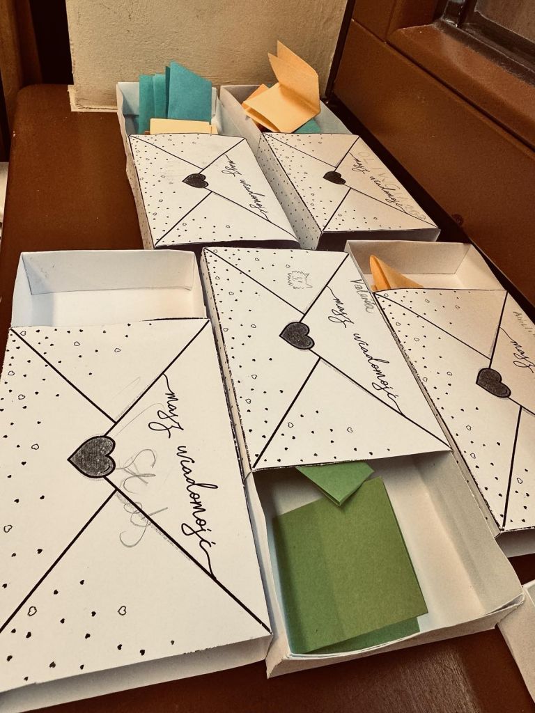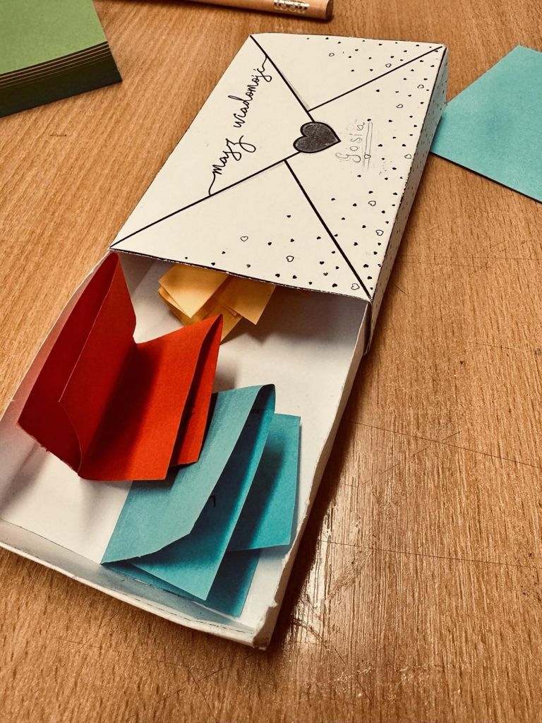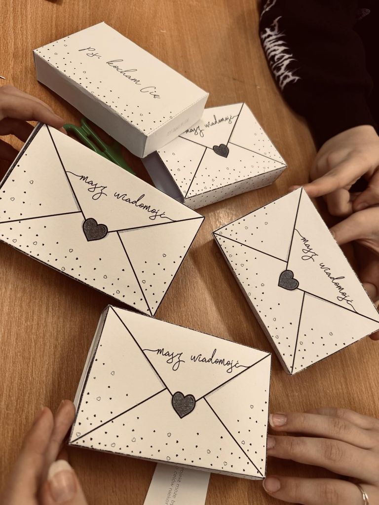 Dzisiaj poczta walentynkowa została uruchomiona i kartki trafiły w ręce swoich odbiorców, wywołując uśmiech na twarzach. Na tym nie poprzestaliśmy, bo zrobiliśmy małe pudełeczka na miłe wiadomości od naszych koleżanek i kolegów. Porcja miłych słów jakie otrzymaliśmy przeszła nasze oczekiwania. To był bardzo serduszkowy dzień!