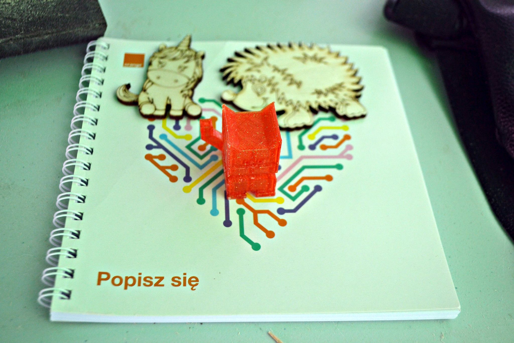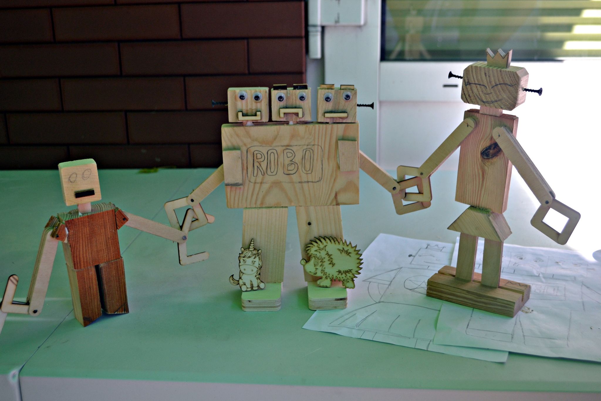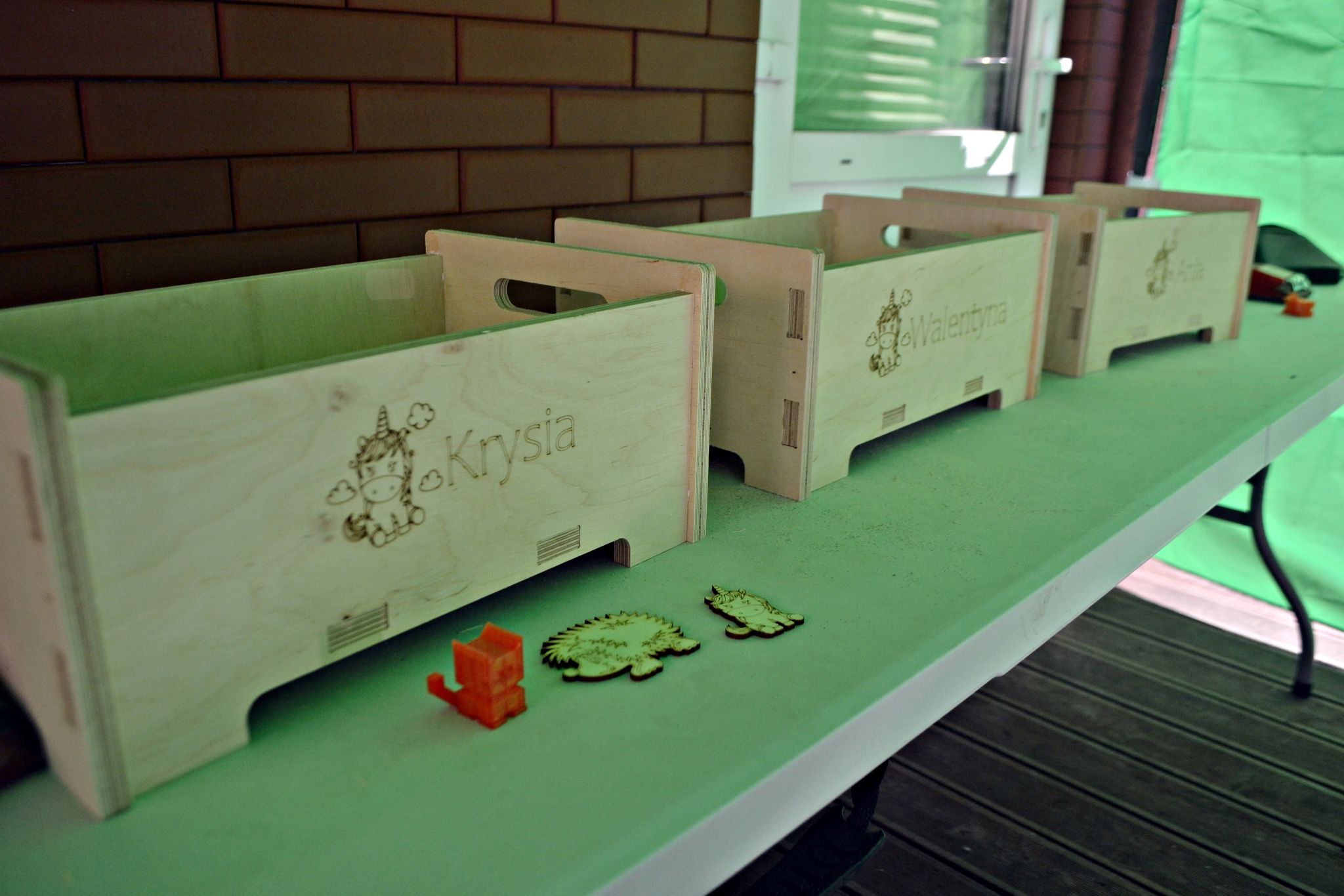 A to wszystko powstało z drewna – z odpadów, które pozostały po innych projektach – czego po naszych pracach absolutnie nie widać. Przez cały czas było dużo sklejania, szlifowania, przycinania, ale na każdym z etapów mogliśmy liczyć na pomoc Panów z FabLab. Dlatego nasze prace wyszły takie niesamowite! Wspólnym wysiłkiem można wiele osiągnąć.
