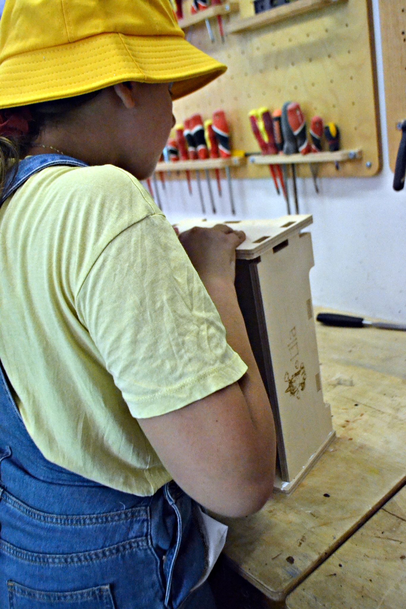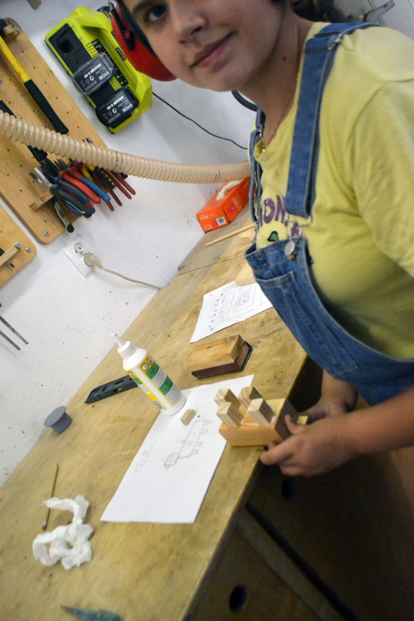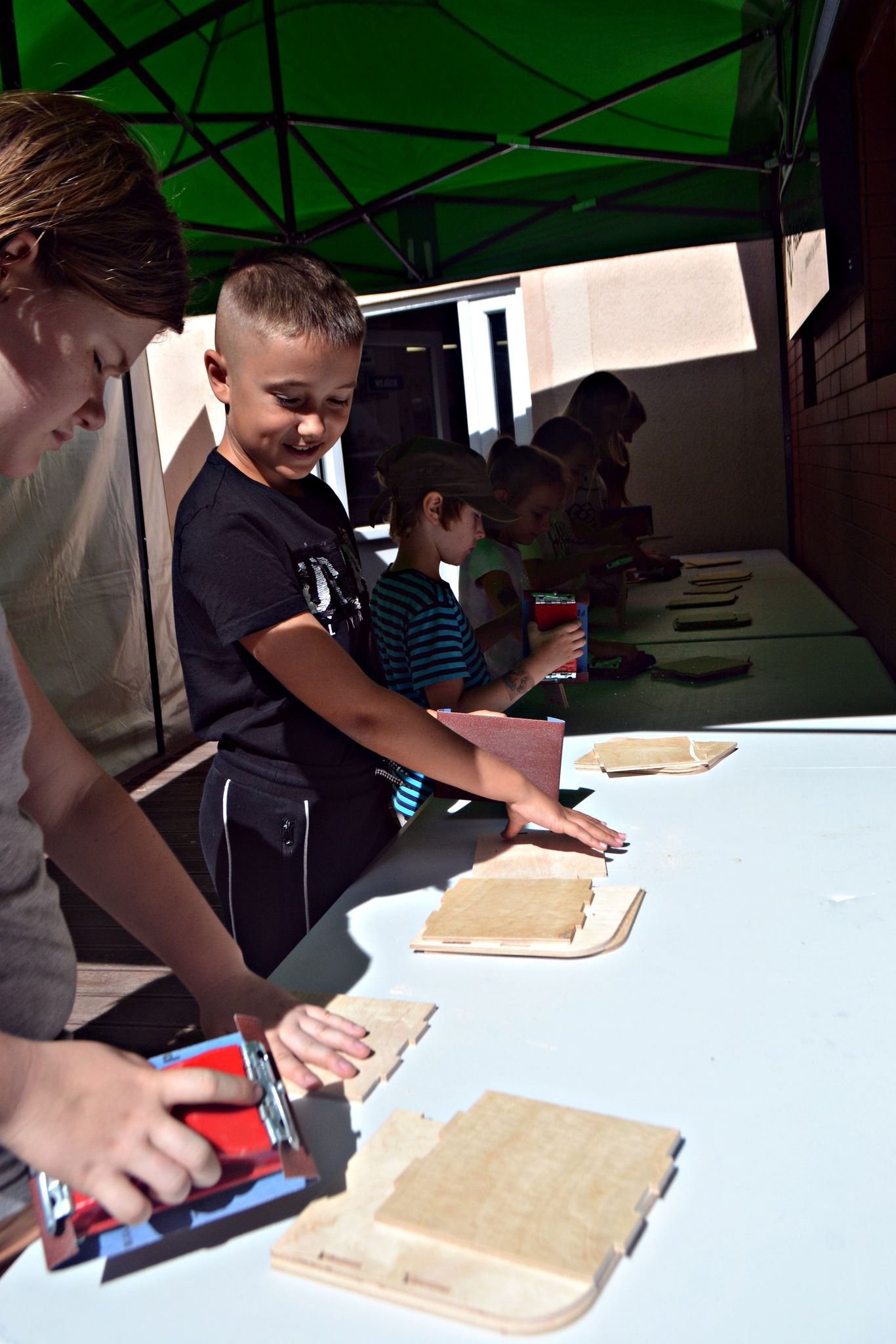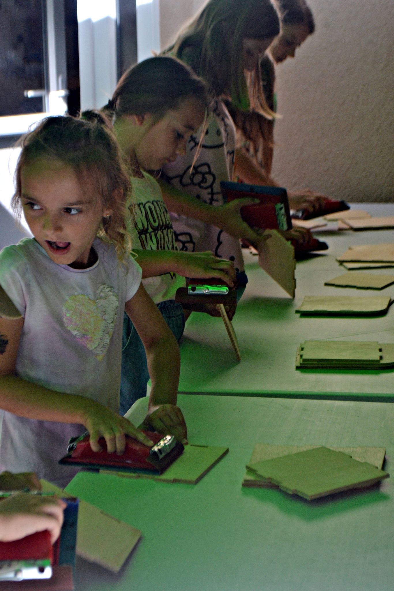 A to wszystko powstało z drewna – z odpadów, które pozostały po innych projektach – czego po naszych pracach absolutnie nie widać. Przez cały czas było dużo sklejania, szlifowania, przycinania, ale na każdym z etapów mogliśmy liczyć na pomoc Panów z FabLab. Dlatego nasze prace wyszły takie niesamowite! Wspólnym wysiłkiem można wiele osiągnąć.