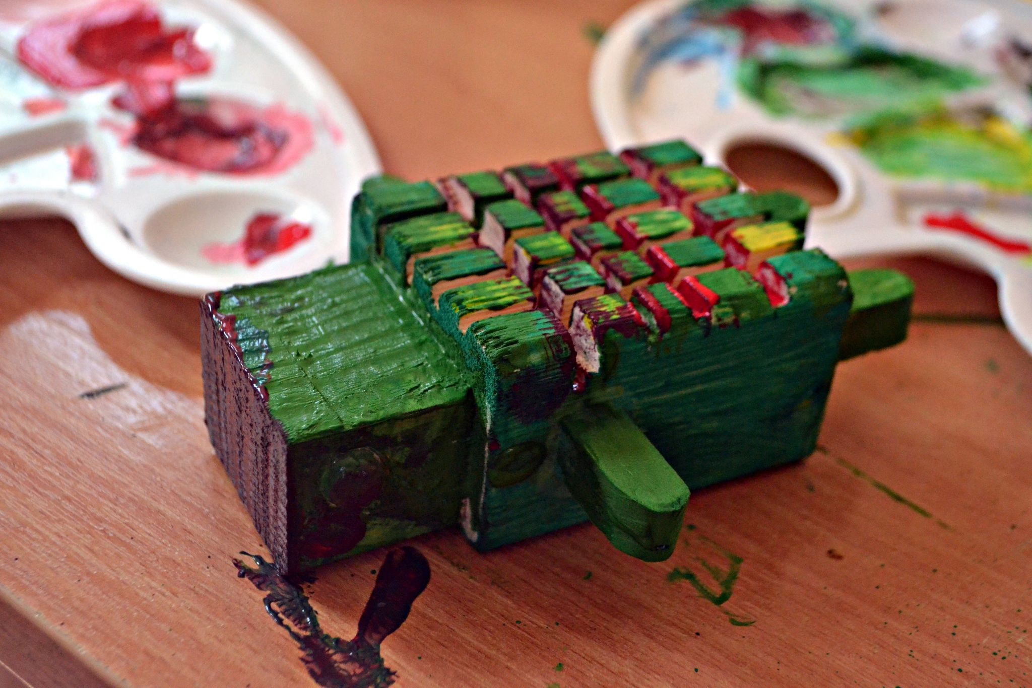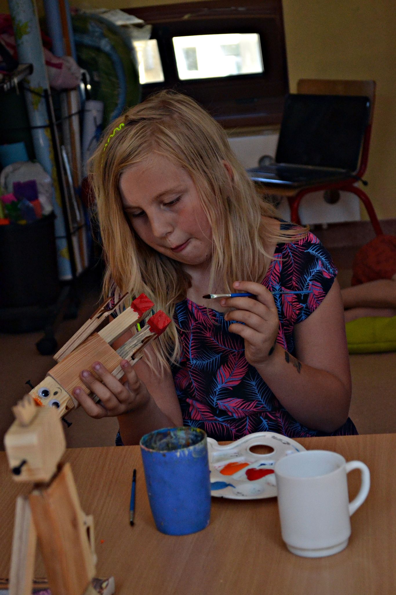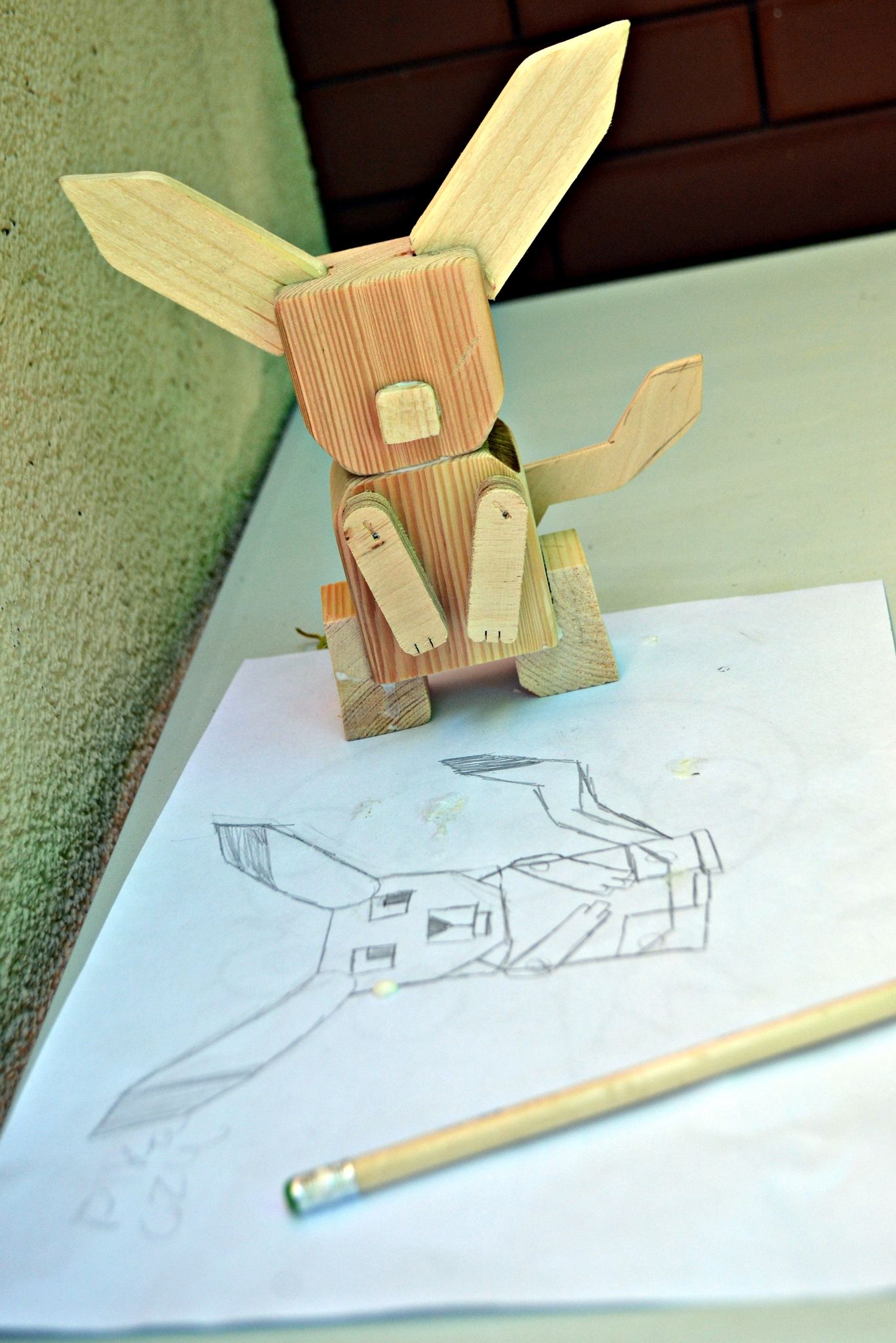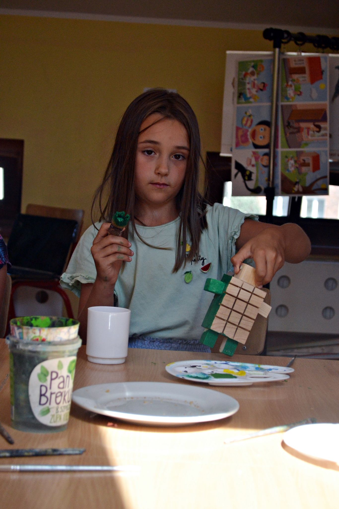 Robociki, które ostatecznie stały się również innymi stworzonkami, kosztowały nas najwięcej pracy. Wybór odpowiednich kawałków drewna, szlifowanie ich, przycinanie, sklejanie, a następnie wybór elementów dekoracyjnych jak oczy czy uszy i antenki ze śrubek. W świetlicy postanowiliśmy jeszcze nadać im barw. Wyszło bardzo oryginalnie!