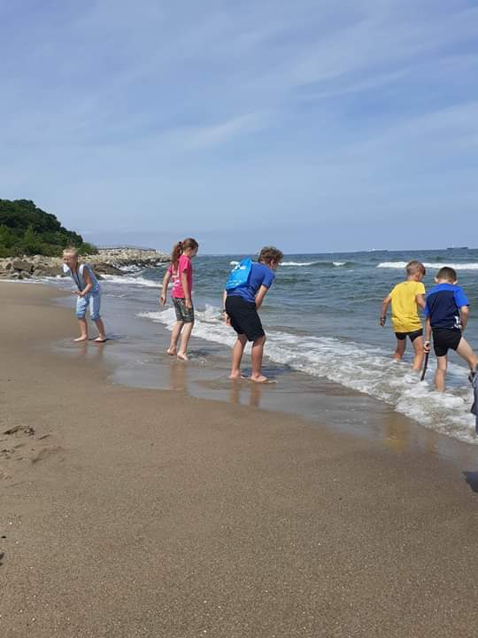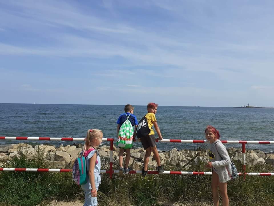 Nie zabrakło części rozrywkowej – pluskania w morzu, zbierania muszelek i szaleństw na plaży. Każdy z nas wrócił z wycieczki w wyśmienitym humorze i z miniaturką pomnika z Westerplatte.