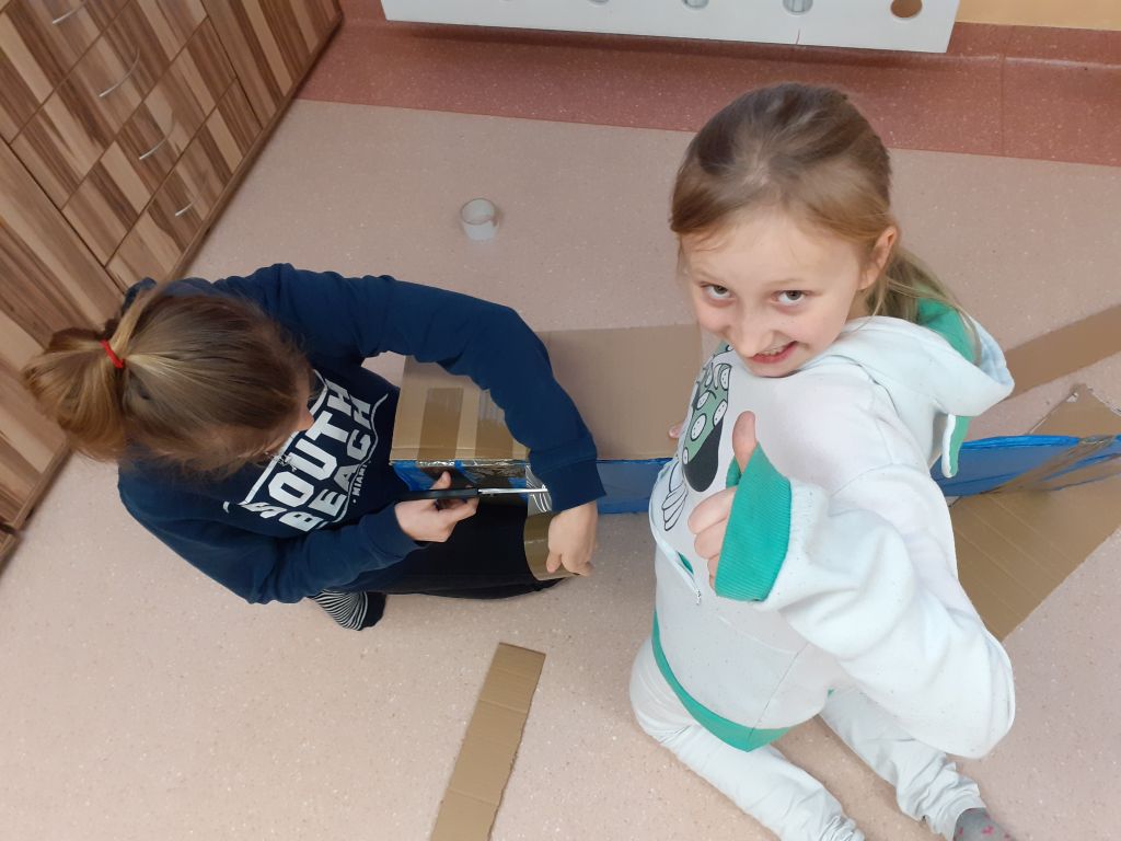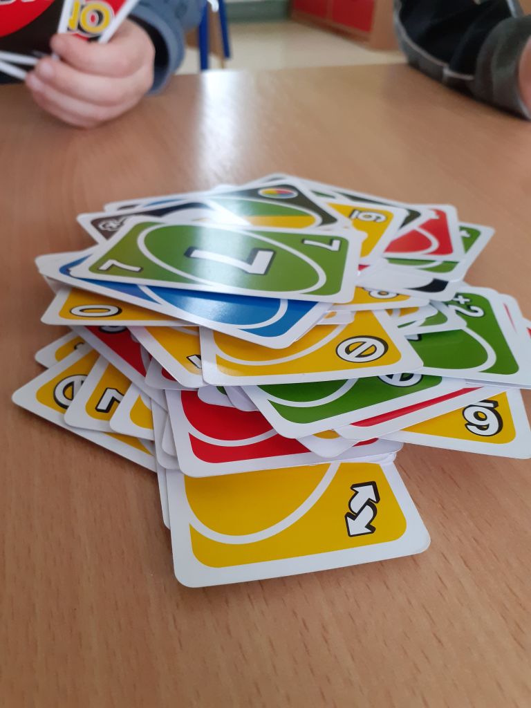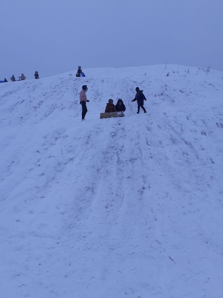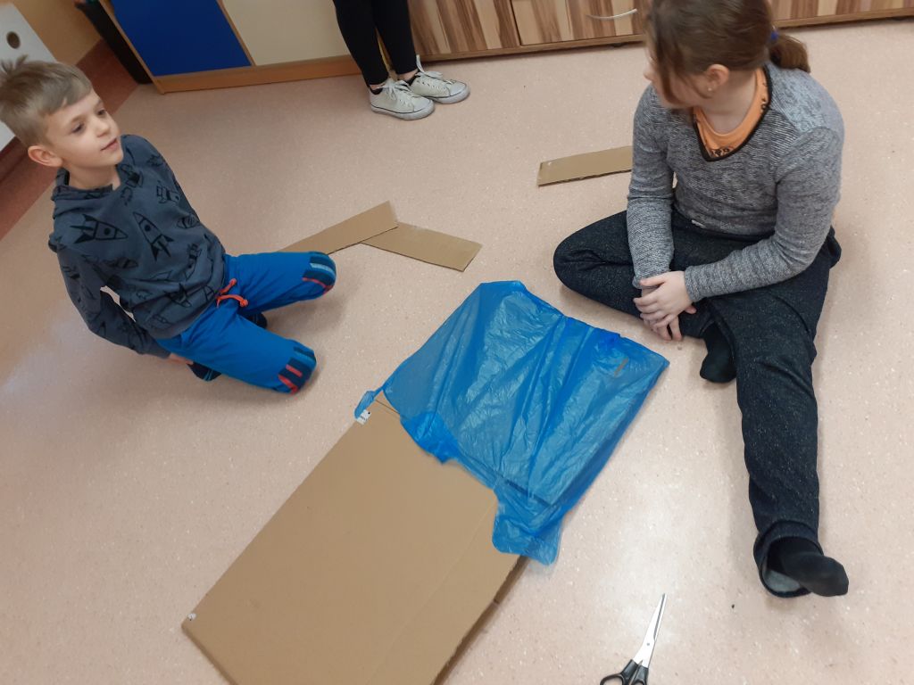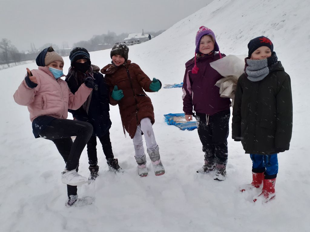 Pierwszy dzień w placówce po tak długiej przerwie… I stało się! Nareszcie spotkaliśmy się on-life, nie online. Ile radości daje spotkanie twarzą w twarz. Aby miło spędzić ten dzień nie było nam wiele potrzeba – bitwa na morzu w statki, gra karciana Uno, „Ja mam, kto ma”. Dobrze było się znowu zobaczyć i porozmawiać: opowiedzieć co się u nas zmieniło, jak spędziliśmy czas w domu, jakie odczucia towarzyszyły tym, którzy wrócili, a jakie tym, którzy nadal uczą się zdalnie. Wykorzystaliśmy także pomysł jednej z wolontariuszek EKS – Nino, na sanki z kartonu. Nawet zdążyliśmy je wypróbować!