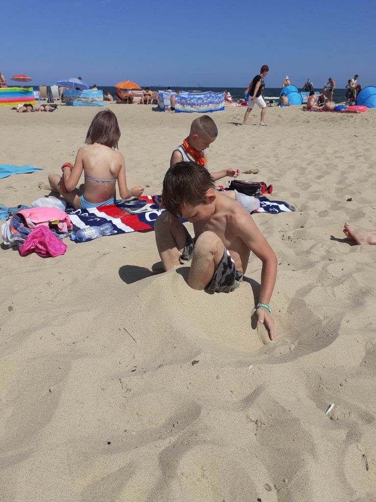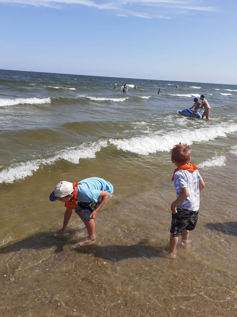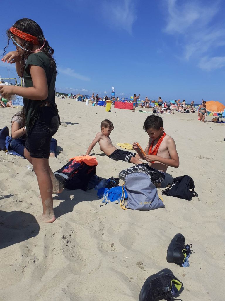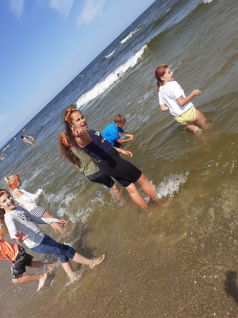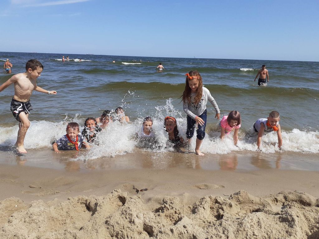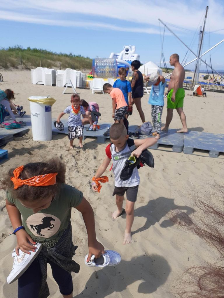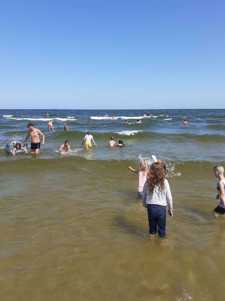 Piękna pogoda, plaża, morze. Wymarzony sposób na zakończenie tygodnia. Niektórzy z nas po raz pierwszy byli na wyspie. Wyspa? W Gdańsku? Niemożliwe! A dla niektórych nie była to nowość, bo Wyspę Sobieszewską odwiedzali już wcześniej. Dla pozostałych atrakcją było czekanie, aż most się dla nas otworzy i będziemy mogli przejść ponad wodą.A później już tylko dobra zabawa – na ścieżce zdrowia i szaleństwa w wodzie.Dziękujemy naszym koleżankom i kolegom z Młodzieżowej Placówki Wychowawczej, że spędzili z nami ten dzień.