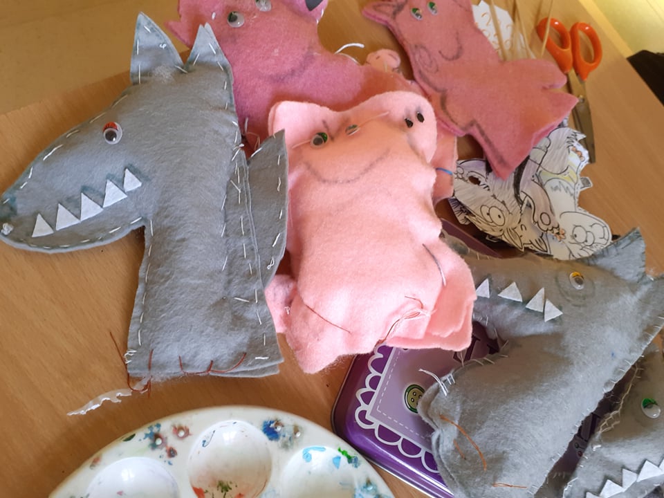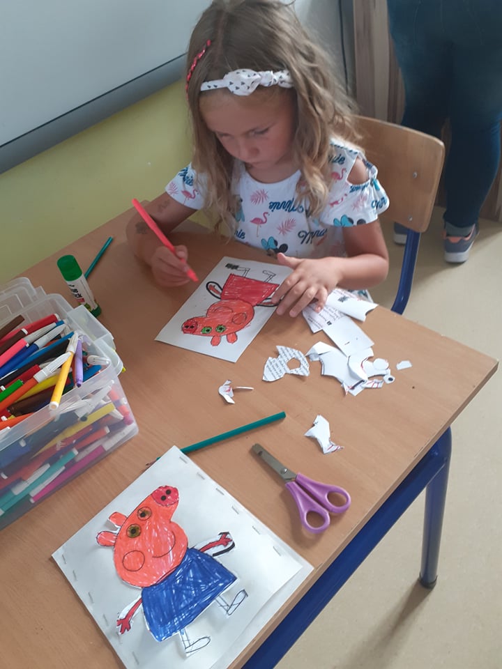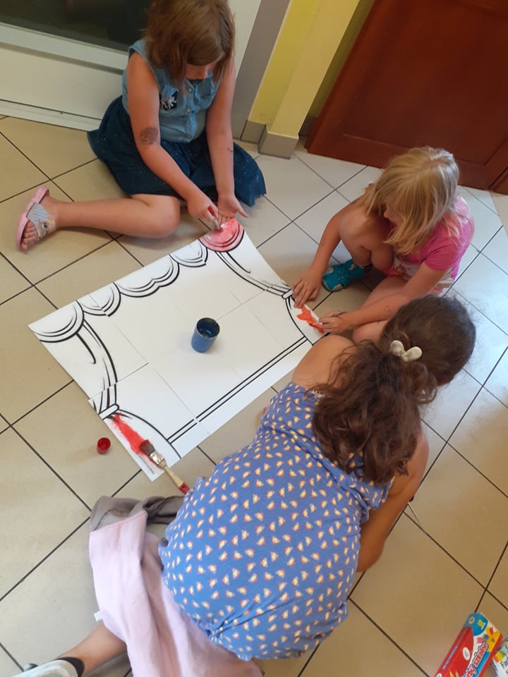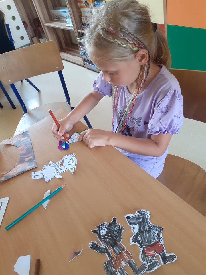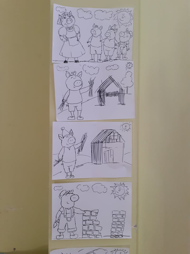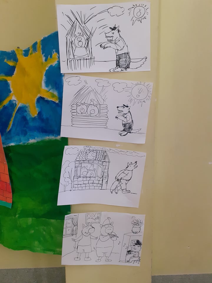 Tydzień pełen postaci teatralnych i z bajek. Tworzyliśmy scenerię do mini przedstawienia „Wilk i trzy świnki”, po uprzednim zapoznaniu się z historią i przygotowaniu postaci na patyczkach. Spodobało nam się to tak bardzo, że zrobiliśmy również postaci do „Złotowłosej i trzech niedźwiadków” oraz „O wilku i koźlątkach”. Karton, wydrukowana kurtyna i teatr gotowy! Tak niewiele pracy, a tak wiele dobrej zabawy.