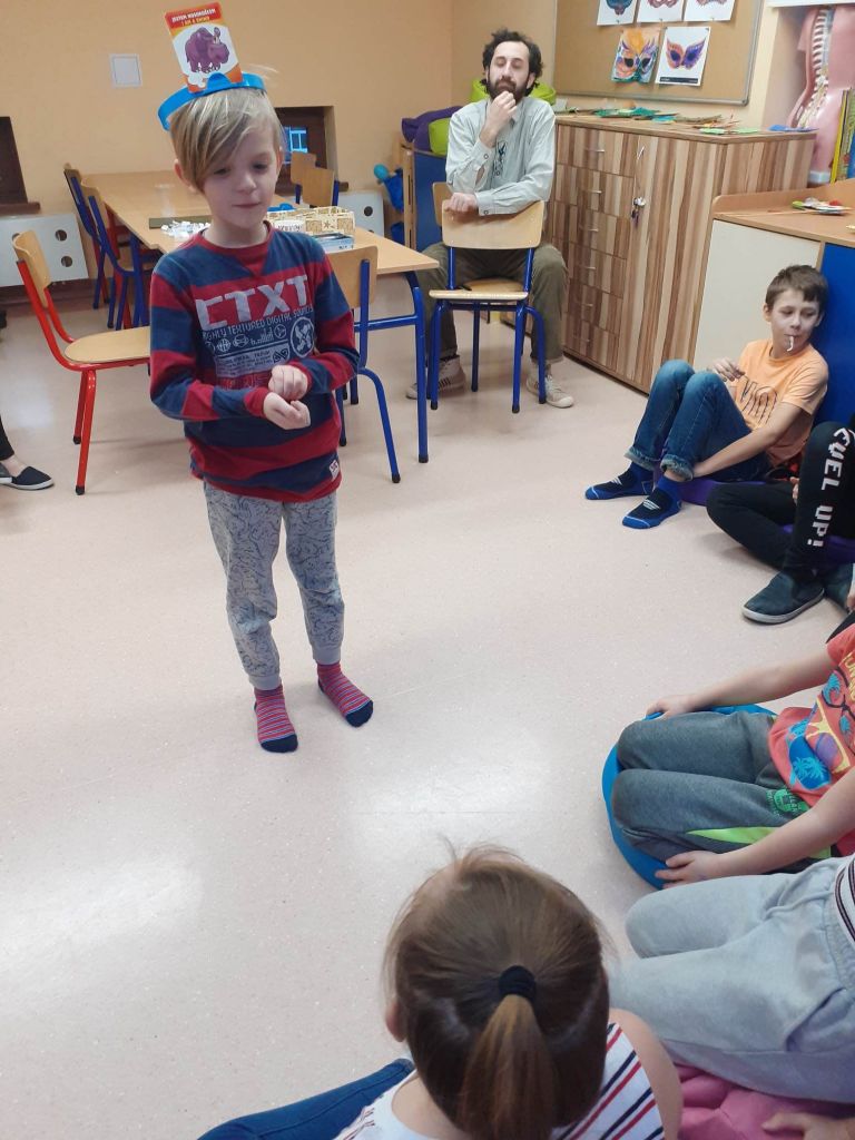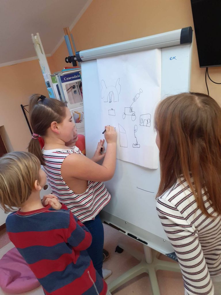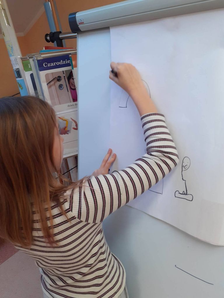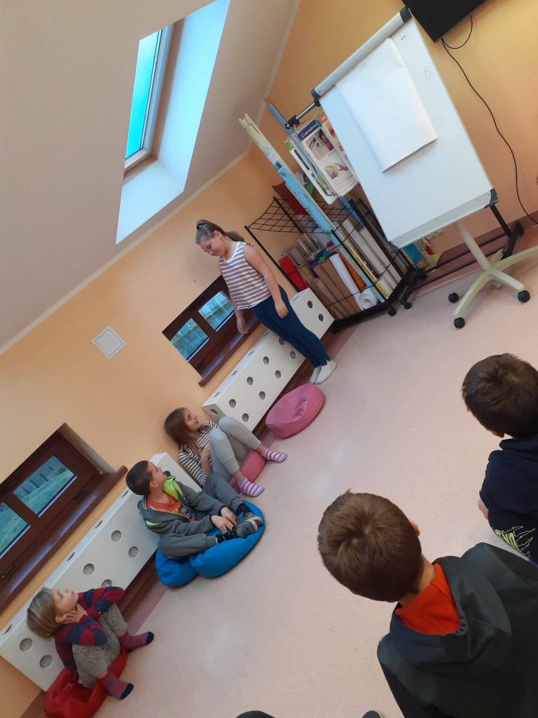 Ale była zabawa! Kalambury, SłowoStwory i Czym jestem? Zarazem przyjemne i edukacyjne, bo należało uruchomić wyobraźnię, umiejętność kojarzenia, nasze rysunkowe i teatralne talenty. Tak więc pokazywaliśmy lub rysowaliśmy wylosowane przez nas hasła, odgadywaliśmy czym lub kim jesteśmy oraz zamieniliśmy się w stwory tworzące wyrazy. Zdrowa rywalizacja i współpraca napędzała pracę grupową.