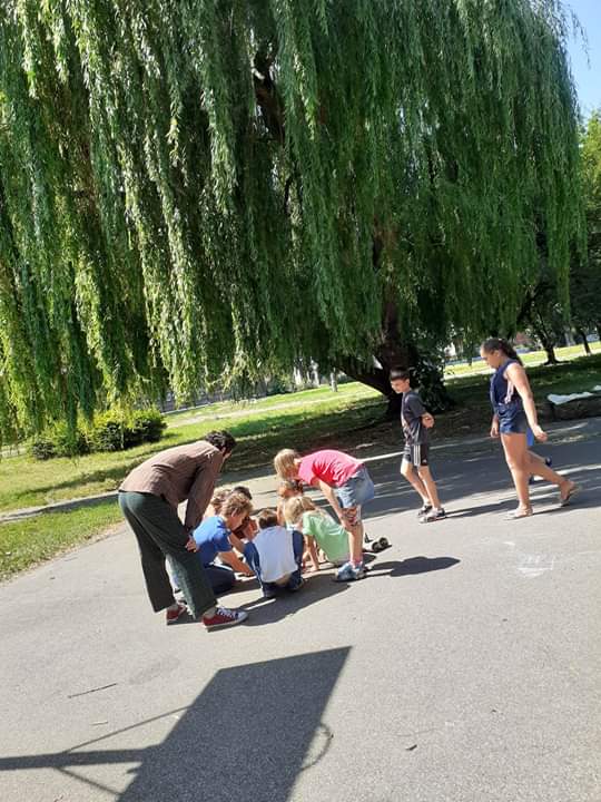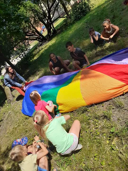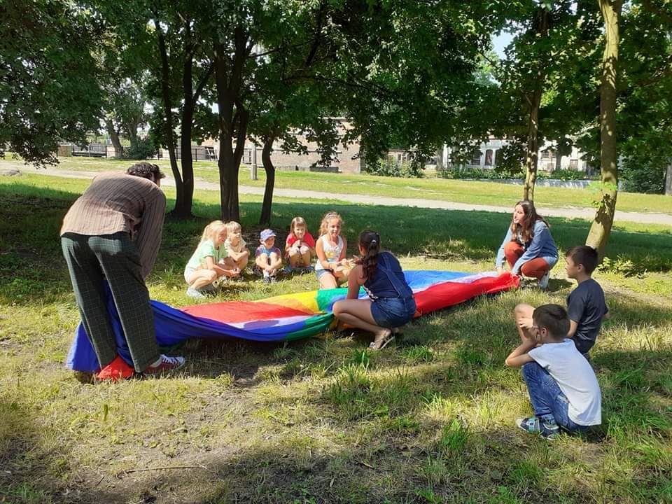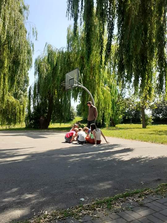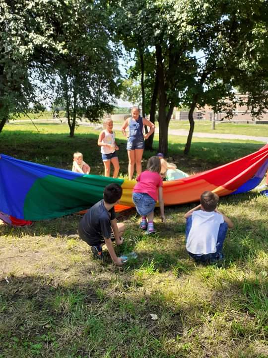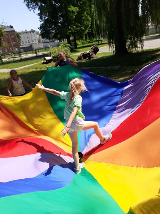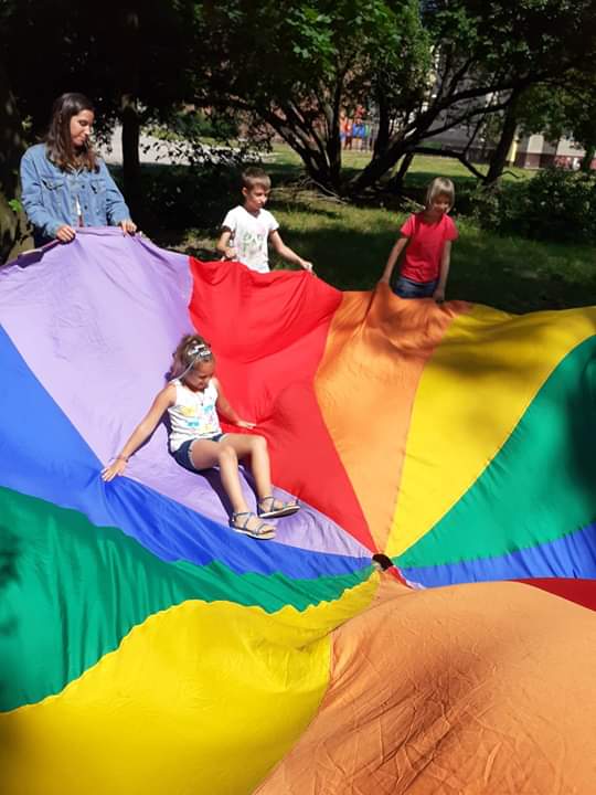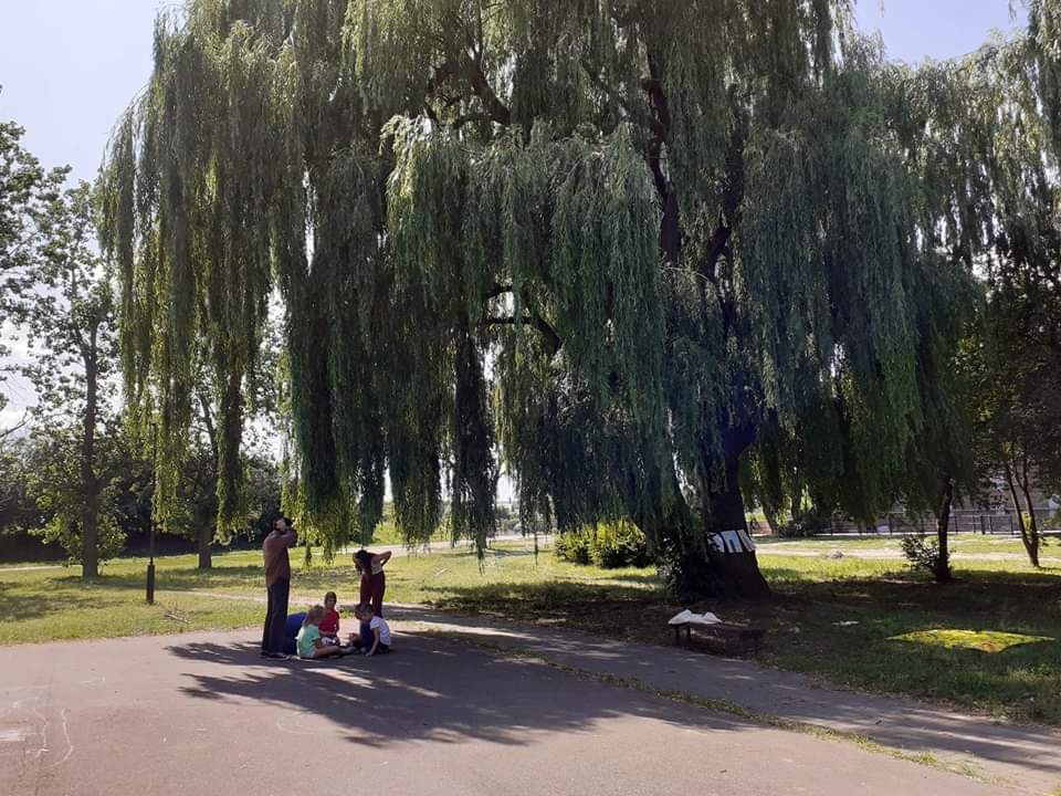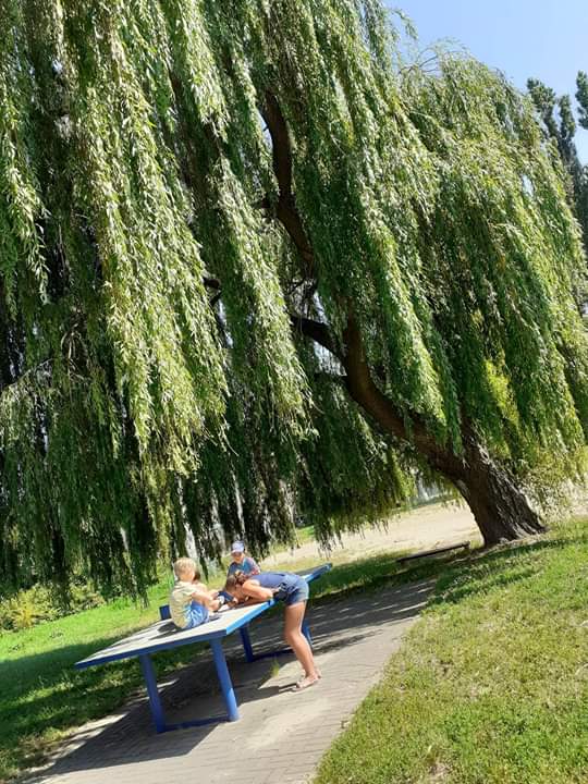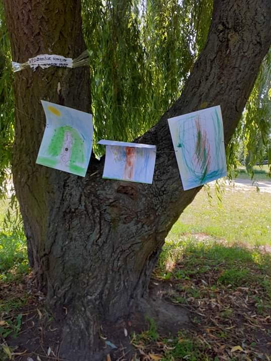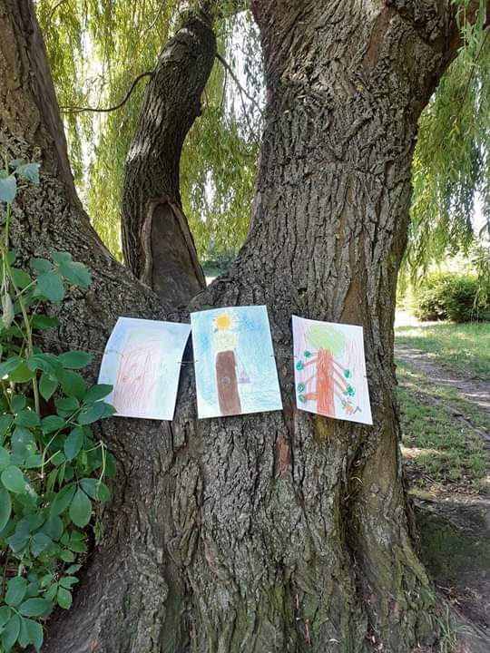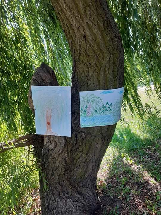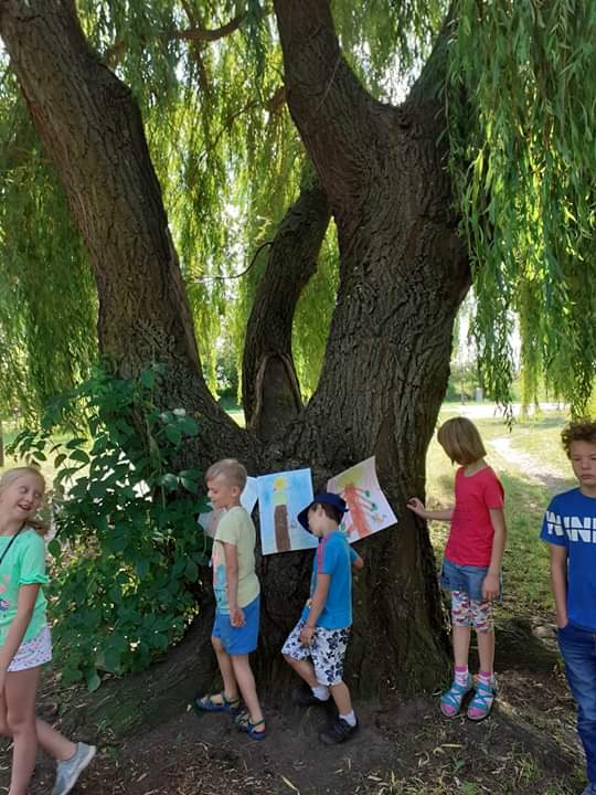 Nadal stajemy w obronie wierzb płaczących rosnących w okolicy naszej placówki. Dzisiaj zawisły na nich obrazki, które ostatnio namalowaliśmy. W ubiegłym tygodniu deszczowa aura nie sprzyjała, ale wczoraj mogły już stać się widocznym znakiem naszej dezaprobaty na wycinkę tych drzew.Tym bardziej, że bardzo nam służą, choćby podczas zabawy, jak widać na załączonych zdjęciach. Chusta animacyjna i inne gry w cieniu drzew chroniących nas przed gorącem promieni słonecznych – to jest TO!