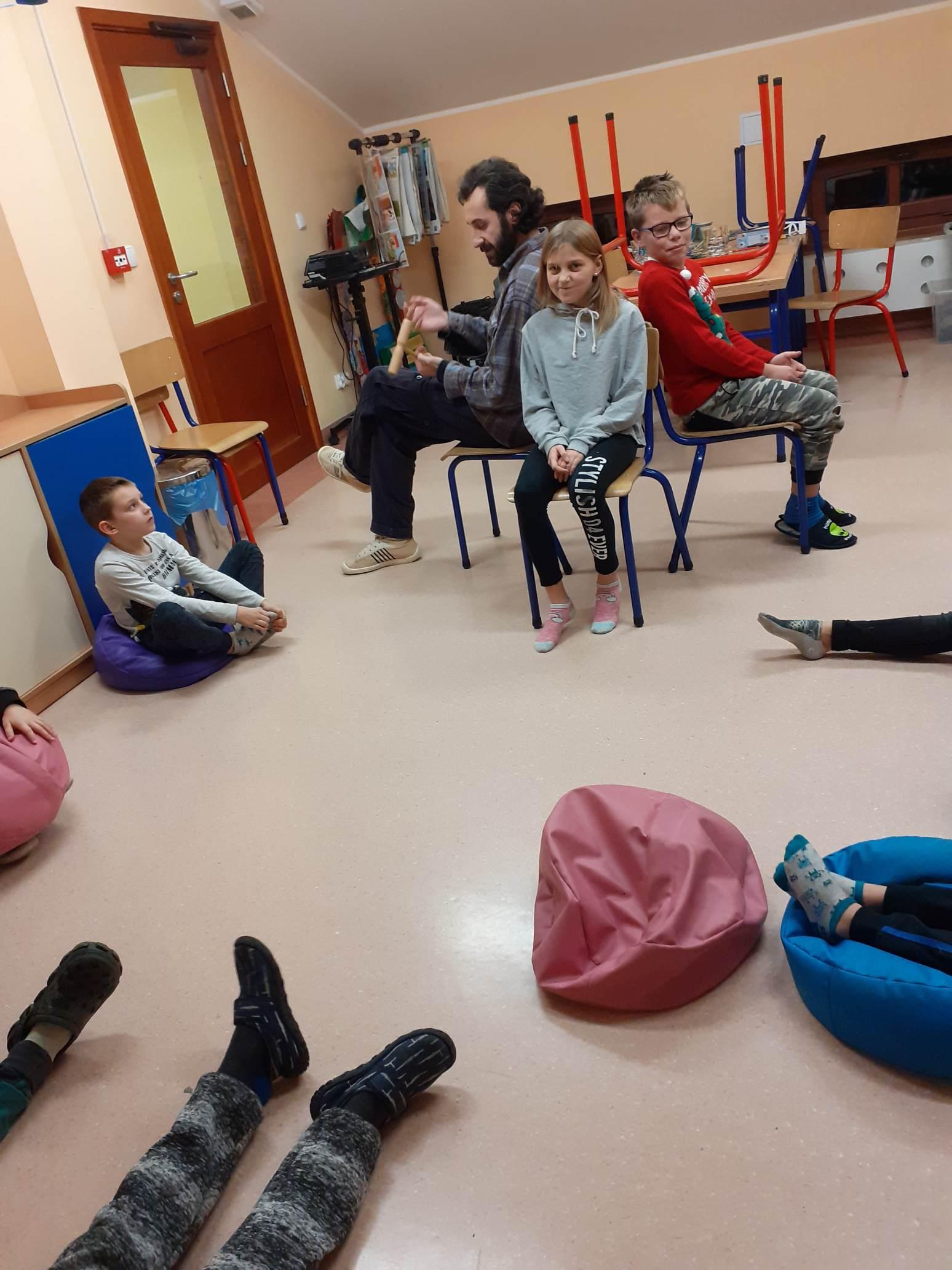 Ostatnie zajęcia z Amo to zabawy w teatr. Na razie to tylko wstęp. Oswajamy się z wystąpieniami przed naszymi kolegami i koleżankami, ćwiczymy przygotowywanie krótkich scenek, uczymy się jak stać i mówić będąc na scenie. Tematyka scenek była dowolna, aby pobudzić trochę naszą kreatywność. Byliśmy zaskoczeni jak fajnie nam to wyszło. W naszych krótkich prezentacjach poruszyliśmy nawet szkodliwość używek czy problem agresji wśród rówieśników. Zajęcia okazały się nie tylko czasem spędzonym na dobrej zabawie, ale także bardzo pouczającą lekcją.