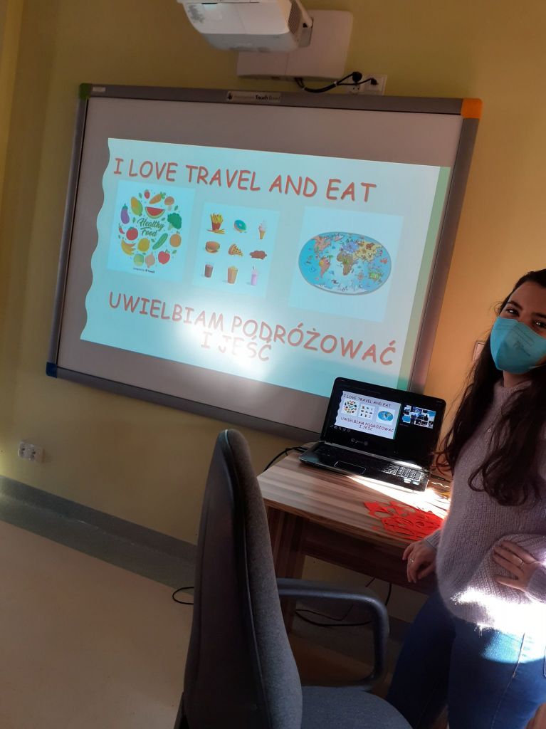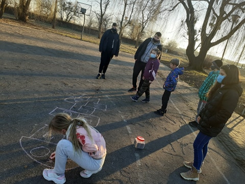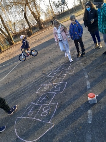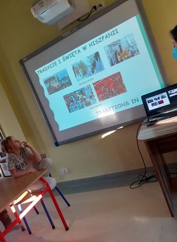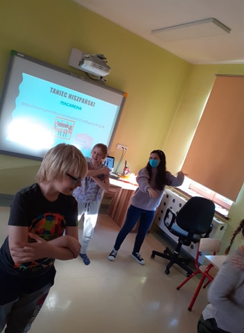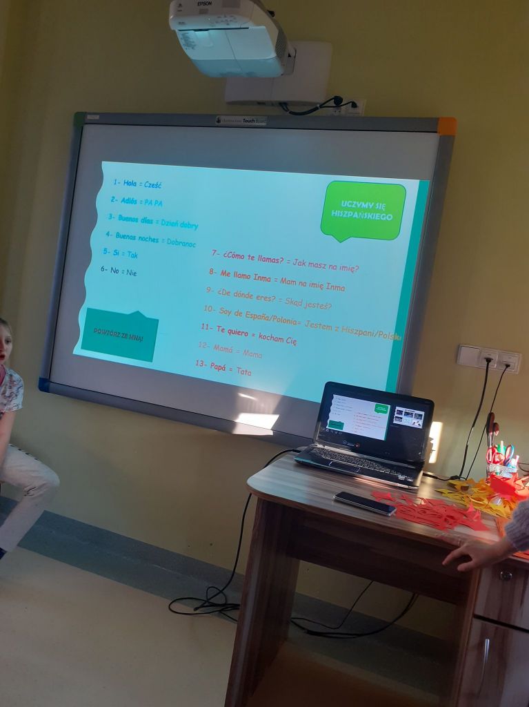 Na ostatnich zajęciach poznaliśmy lepiej naszą wolontariuszkę Inmę. Inma pochodzi z Hiszpanii i opowiedziała nam trochę o swoim kraju – jego świętach, tradycjach, jedzeniu. Próbowaliśmy rozpoznać najsłynniejsze miasta Hiszpanii i wybrać jej flagę spośród tych należących do innych państw. Udało nam się i nawet potrafiliśmy powiedzieć do jakich krajów należą pozostałe flagi. Dużo przyjemności sprawiło nam wspólne zatańczenie „Makareny” – chyba najbardziej znanego hiszpańskiego tańca. Znamy go bardzo dobrze, bo towarzyszy nam na każdej organizowanej zabawie i balu. A na koniec poszliśmy zaczerpnąć trochę świeżego powietrza i zagraliśmy w klasy. Jak się okazało, dzieci w Hiszpanii bawią się w to samo co my!