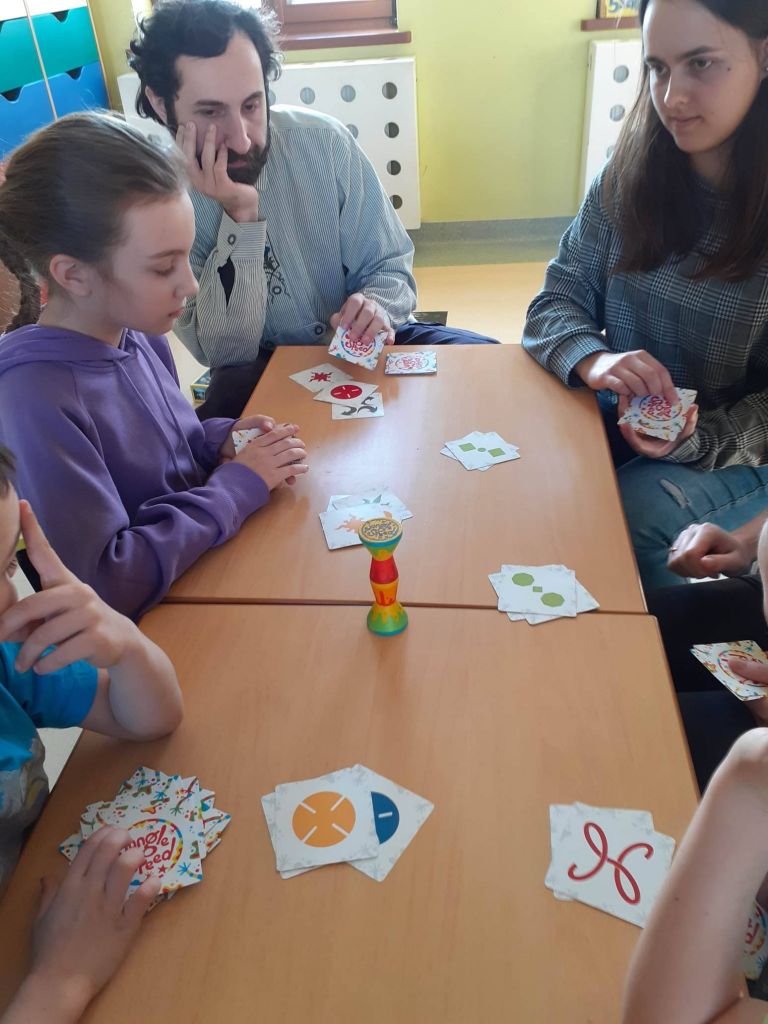 Ostatni dzień ferii był bardzo intensywny. Udało nam się skończyć układanie 1 000 elementowych puzzli, które wyciągnęliśmy z pudełka na początku ferii. Niestety okazało się, że brakuje jednego puzzla, ale mimo to jesteśmy dumni, że nam się udało uporać z tą ogromną układanką. Zagraliśmy też w naszą nową grę od Amo. Bardzo nam się spodobała i teraz Jungle speed znajduje się wysoko na liście naszych ulubionych gier.