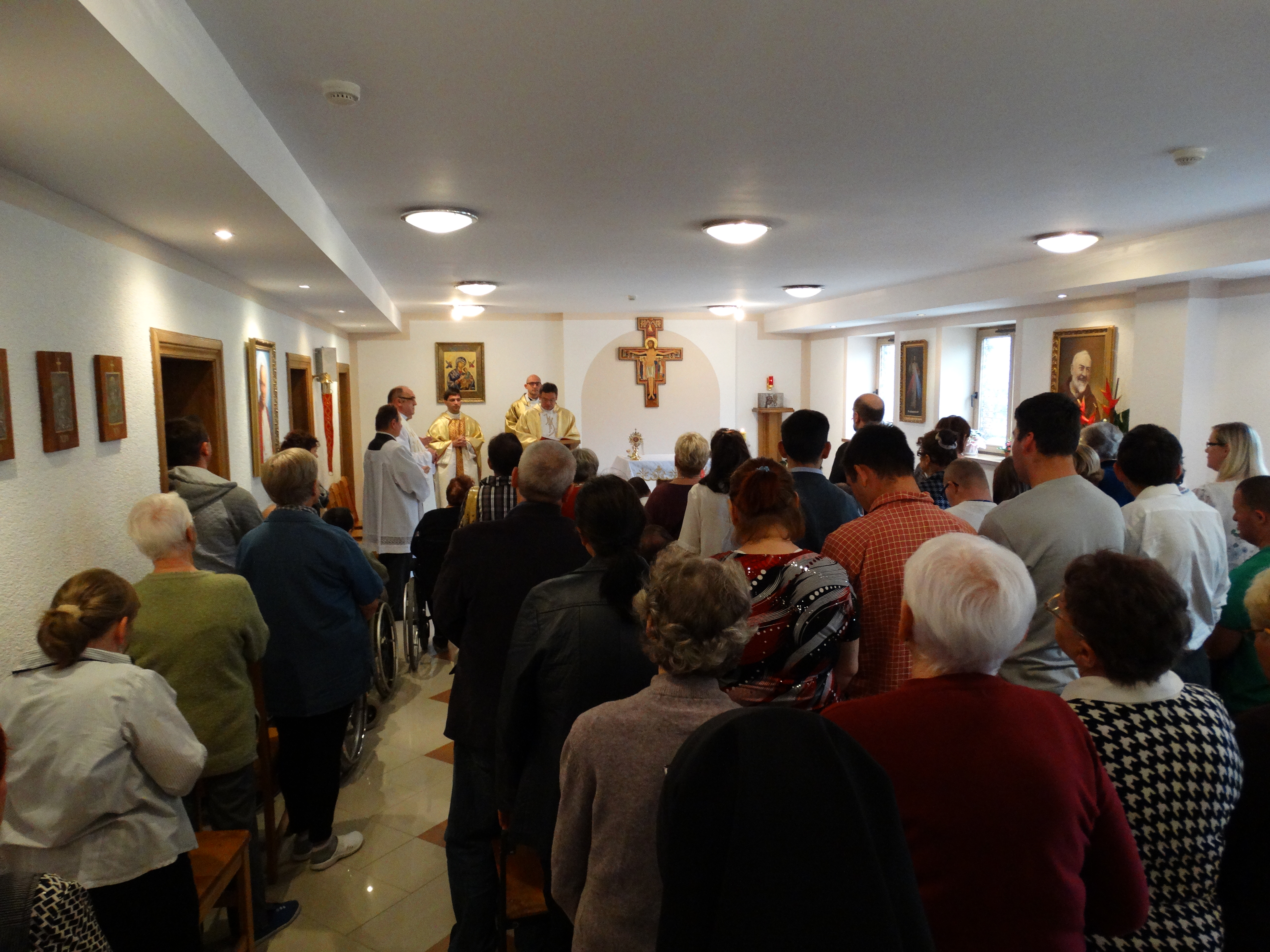 Uroczystości odpustowe, które odbyły się 23 września 2015 roku, rozpoczęliśmy poranną Mszą Świętą koncelebrowaną przez sześciu przybyłych do nas księży. Było nam bardzo miło, że z okazji 13 rocznicy działalności placówki pod patronatem św. Ojca Pio, mogliśmy gościć nie tylko Księdza Dyrektora, ale również księży z innych placówek Caritas, księży z zaprzyjaźnionej i współpracującej z nami parafii Dobrego Pasterza, a przede wszystkim prowadzącego Mszę Świętą księdza kanonika Tyberiusza Kroplewskiego z parafii św. Alberta w Gdańsku. Cieszyliśmy się bardzo, że nie zapomnieli o nas również koledzy i koleżanki z innych placówek Caritas, oraz osoby korzystające na co dzień z zabiegów w Centrum.