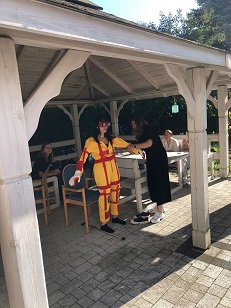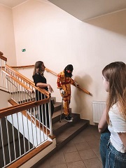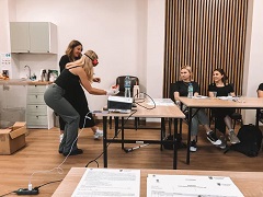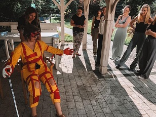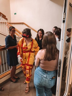 Zajęcia zostały urozmaicone przez praktyczne wykorzystanie symulatora odczuć osób starszych.