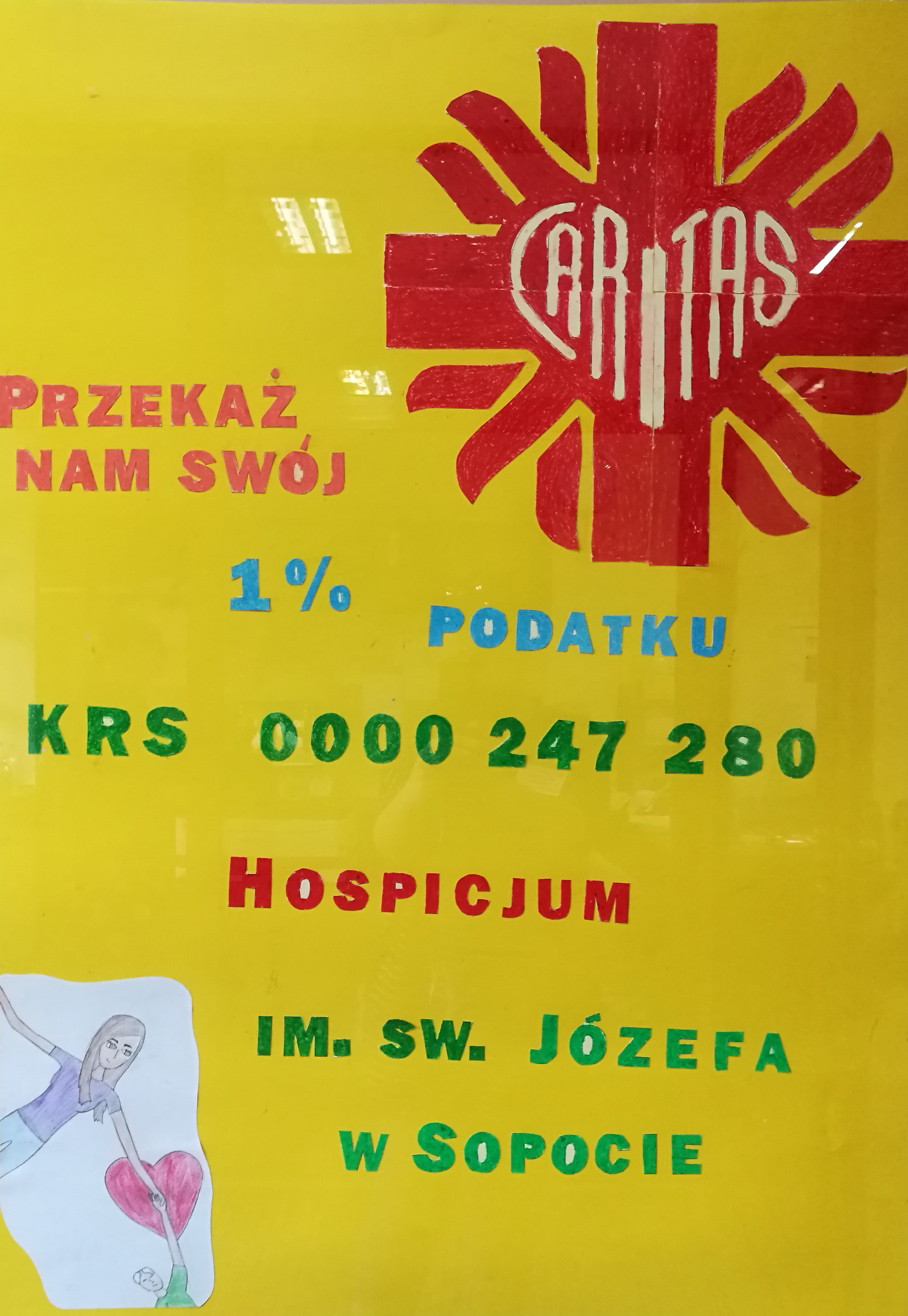 Wczoraj podczas środowych warsztatów plastycznych nasze wspaniałe Wolontariuszki Dorota i Hania wraz z naszymi Podopiecznymi wykonali piękny, bardzo kreatywnie zrobiony plakat zachęcający do wpłaty 1% podatku na nasz Dom.Plakat obecnie zdobi drzwi wejściowe do naszego Domu Hospicyjnego.
