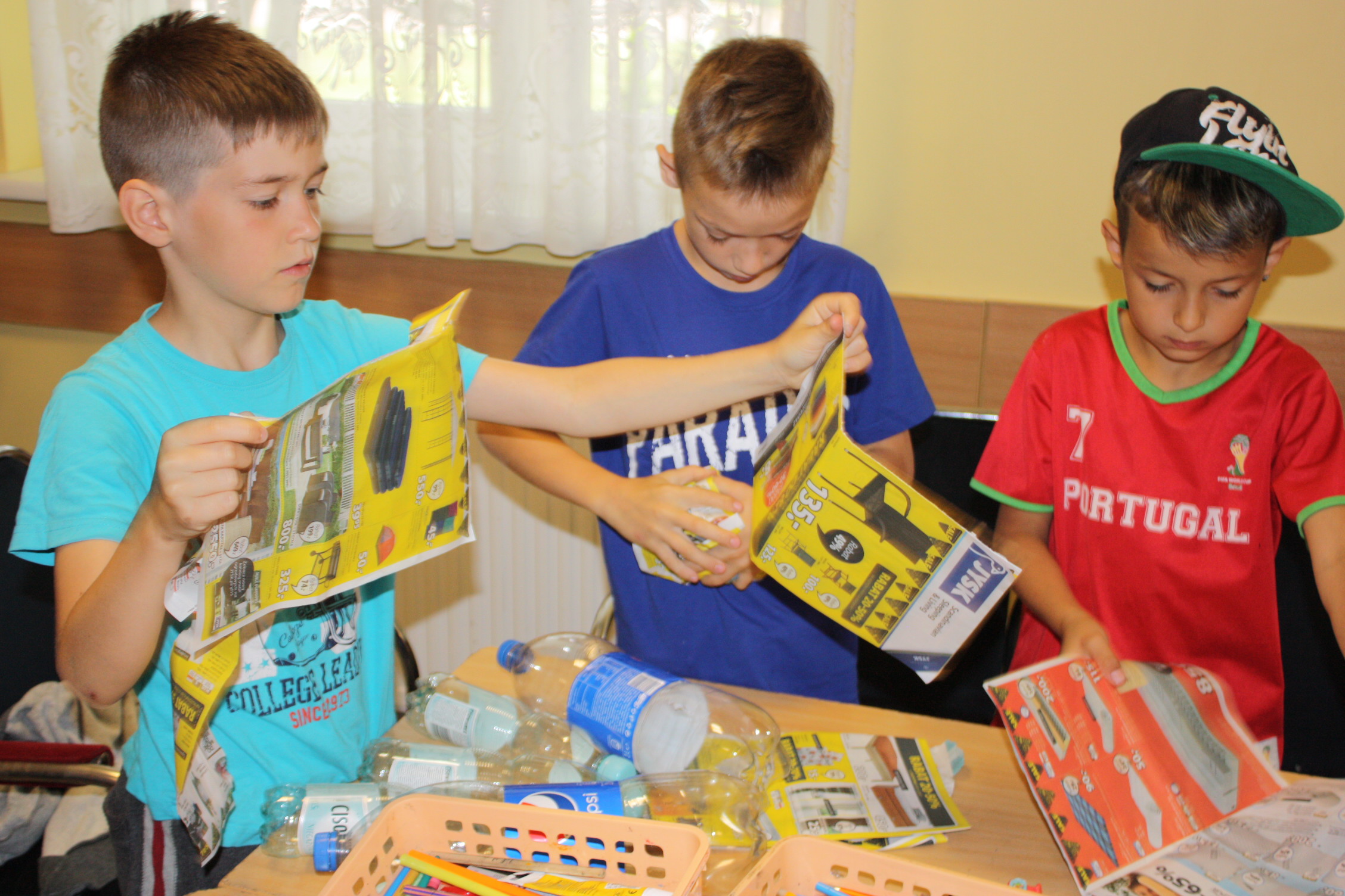 13 lipca odbyły się warsztaty ekologiczne na drugim turnusie kolonii w Warzenku. Dzieci dowiedziały się w jaki sposób można ponownie wykorzystać surowce wtórne, dowiedziały się czym jest recykling i w jak powinno się segregować śmieci. Następnie grupy wykonały wspaniałe gry, zabawki i ubrania z materiałów przeznaczonych do wyrzucenia. Dzieci świetnie bawiły się projektując i tworząc piłki nożne, roboty, króliczki, autobusy- skarbonki, samoloty, zbroję robota oraz sukienkę prawdziwej damy.
