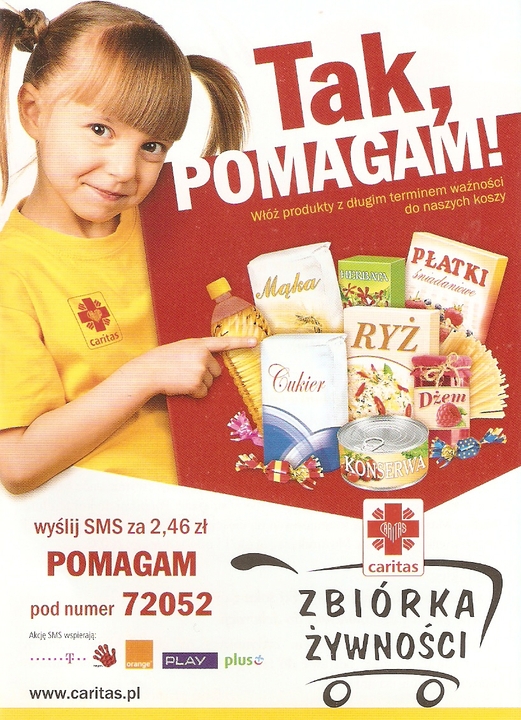 Przypominamy, że celem akcji jest zbiórka artykułów spożywczych o długim terminie przydatności do spożycia (mąka, olej, cukier, ryż, makaron, konserwy itp.).