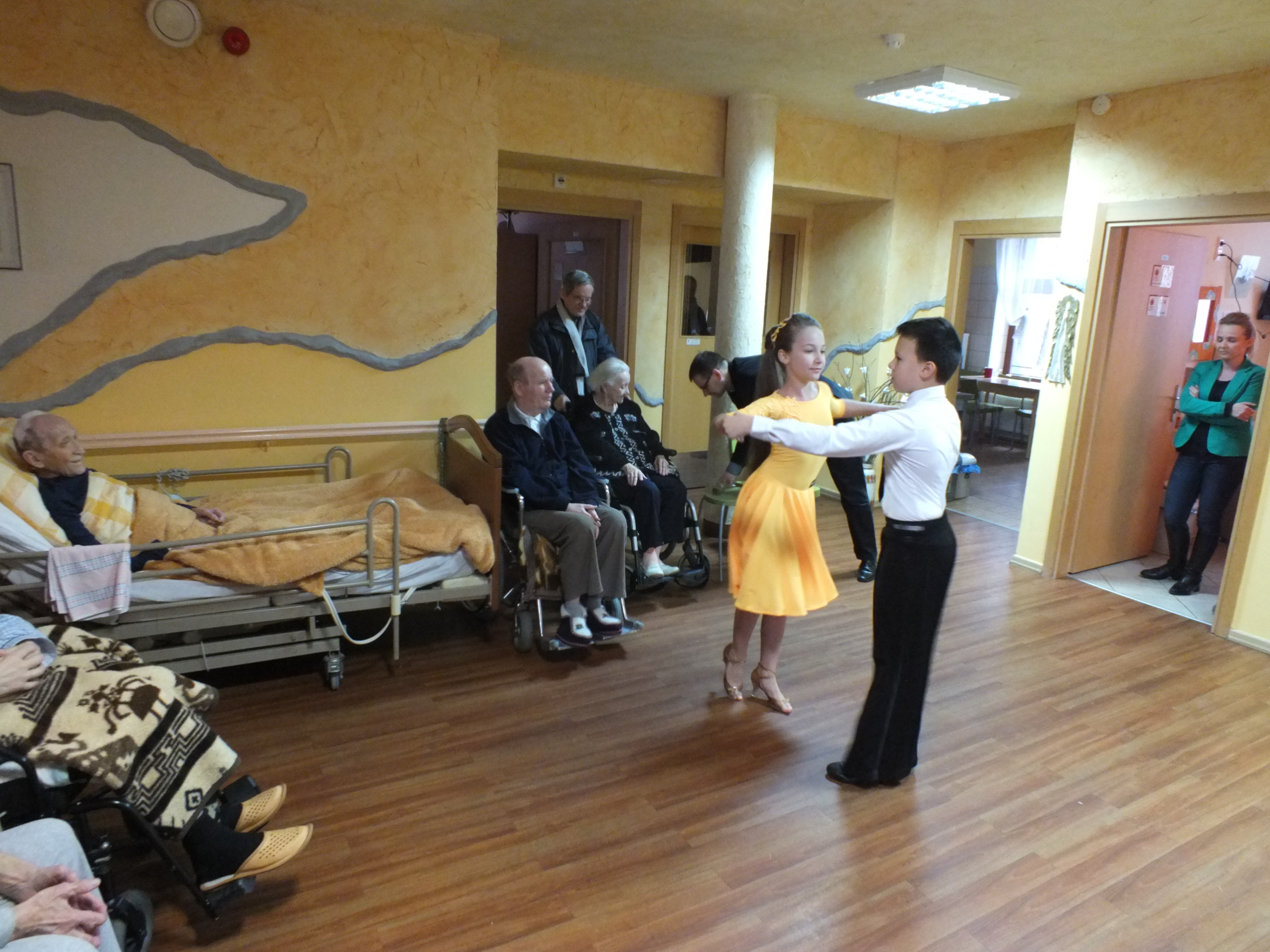 Gdy są urodziny to okazja do radości, życzeń i prezentów. Nasi wolontarusze sprawili niezwykły prezent jubulatowi – naszemu podopiecznemu. Zorganizowali pokaz tańca. Weronika i Maciek z Klubu Tanecznego „Centrum Tójmiasto” z wiekim przejęciem zaangażowali się w to wydarzenie. W południe w naszym domu zrobiło się małe zamieszanie w atmosferze tajemniczosci. Podopieczni, a szczególnie jubilat niewiedząc dlaczego i po co, zostali zgromadzeni w naszym uroczym azułku reakreacyjnym. Gdy ukazała się para tancerzy wszystko stało się jasne choć nie do końca …. bo niektórym nogi niemalże same zaczeły rwać się do tańca. Panu Tadeuszowi Obfitości Łaski Bożej, moc życzeń sił i radosci składamy z darem tańca zaprezentowanego dzieki Młodym Tancerzom. 🙂