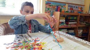W placówce w Łapinie w godzinach popołudniowych realizujemy zajęcia terapeutyczne w ramach projektu SOW sieć ośrodków wsparcia Caritas dla osób z niepełnosprawnościami. Podczas terapii prowadzone są ćwiczenia grafomotoryki, zajęcia z koordynacji wzrokowo -ruchowej oraz lekcje obsługi komputera.