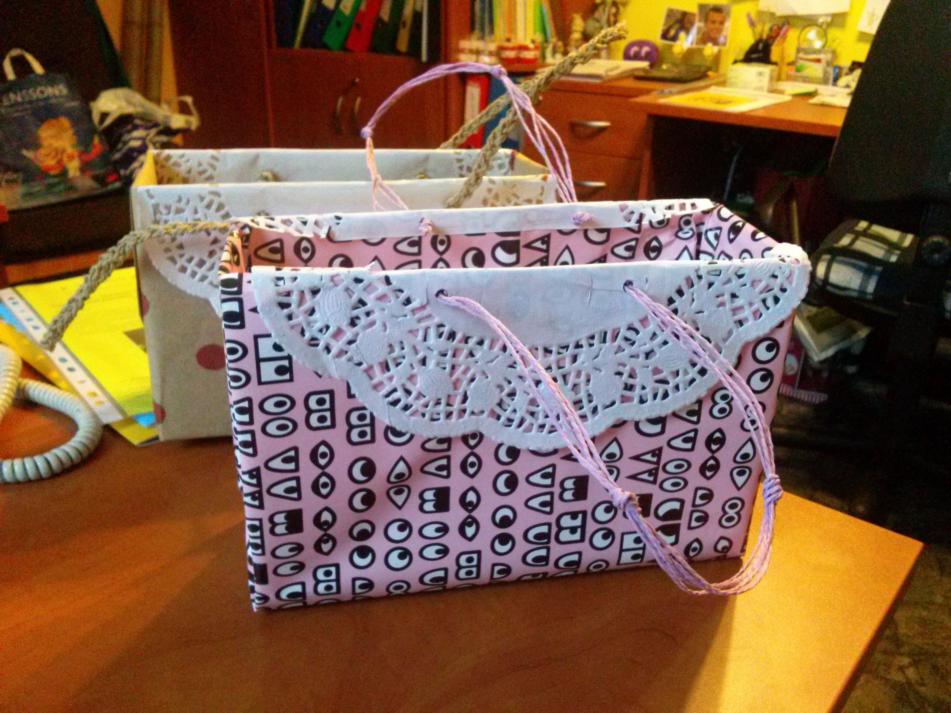 Grupa „Anielska Kraina” uczyła się wykonywania domowym sposobem, z wykorzystaniem dużych kartoników po sokach, ozdobnych torebek na prezenty, bądź też na przechowywanie własnych „skarbów”. Efekt zobaczcie sami 🙂