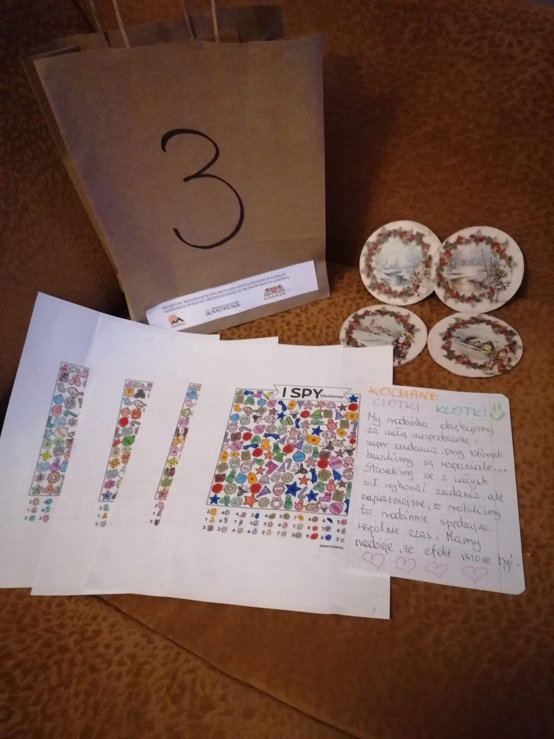 W ramach projektu stworzyliśmy niecodzienny Kalendarz Adwentowy. Rozpoczynając od pierwszego dnia Adwentu każdego dnia jedna lub dwie Kasztanowe Rodziny otrzymywały do domu pakiet z rodzinnym zadaniem do wykonania i słodkim drobiazgiem dla każdego członka rodziny. Dlaczego do domu? Gdyż prowadzimy zajęcia na odległość.