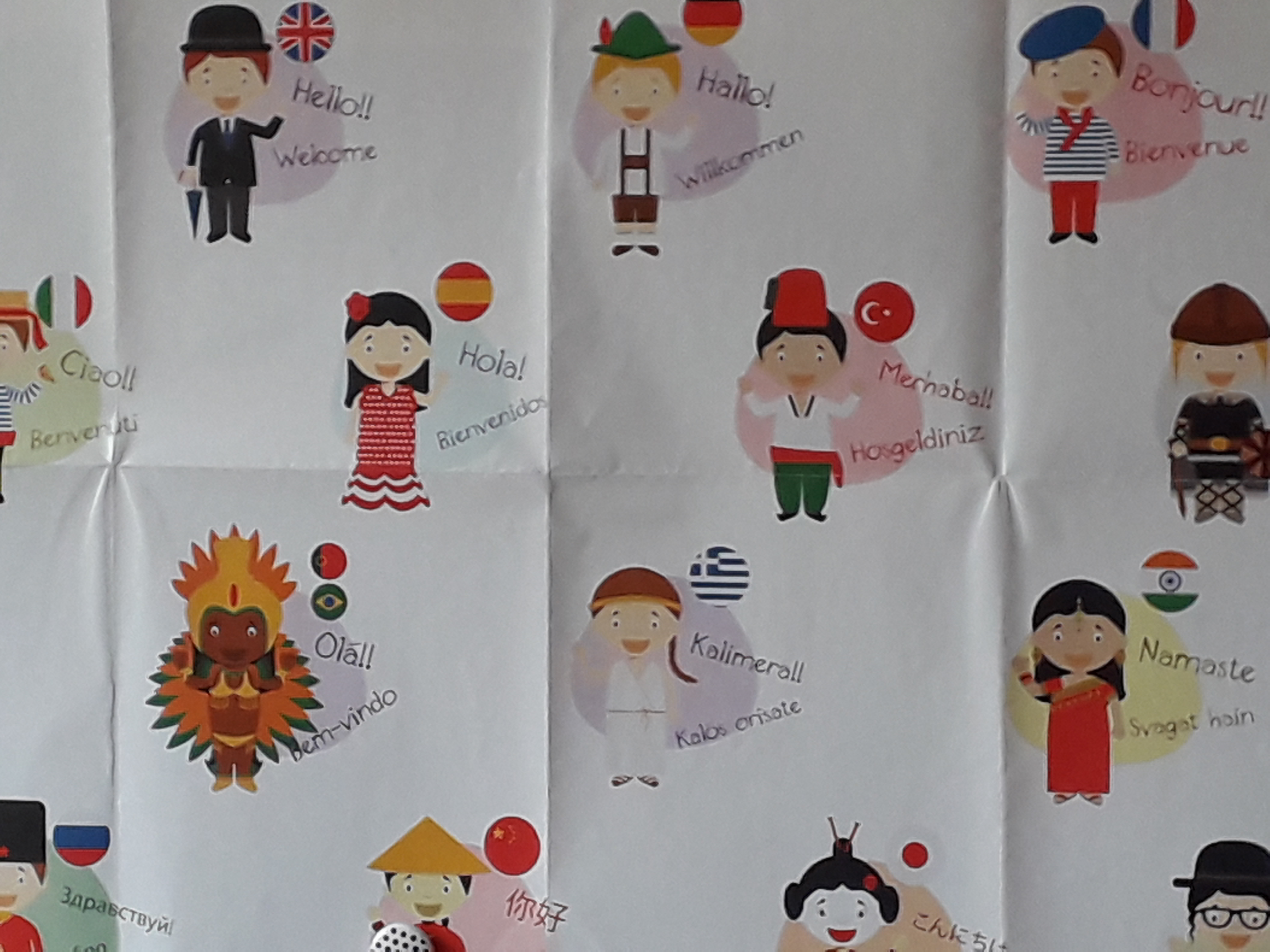 W ramach naszego rocznego programu pracy pod hasłem „Okno na świat” w tym miesiącu wykonały m.in. pracę plastyczną pt.” Cześć, Hello, Merhaba….’. Rysunki przedstawiały ludzi różnych ras, narodów, języków i zawierały słowa powitania w wybranym języku.  Stworzony plakat był pretekstem do rozmowy o uprzedzeniach rasowych i o tym w jaki sposób je przełamywać.  Wspólnie doszli do wniosku, że wiedza o zwyczajach i tradycjach innych narodów  przyczynia się do niedyskryminacji.  Przed nami jeszcze sporo pracy związanej ze zgłębianiem tego zagadnienia.