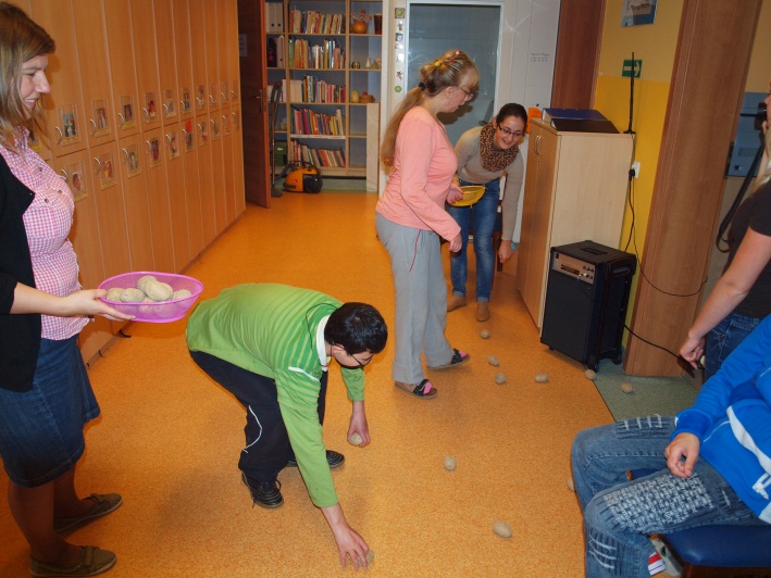 Pierwsze dni października upłynęły w OREWie pod hasłem : „Tydzień z ziemniakiem”. W tym czasie spożyliśmy ogromną ilość ziemniaków. Była zupa kartoflana, frytki, zapiekane ziemniaczki i kartofelki z grilla. Nie zabrakło również wspólnej zabawy: ziemniaczanej dyskoteki oraz grilla w ogrodzie przy Ośrodku. Rozstrzygnęliśmy zabawne konkursy z motywem przewodnim w postaci ziemniaka takich jak: rzut ziemniakiem do celu, zbieranie ziemniaków na czas, bieg z ziemniakiem na łyżce,odgadywanie smaków warzyw oraz warzywne zagadki. Finałem tygodnia z ziemniakiem było wyłonienie podopiecznego będącego właścicielem największego ziemniaka. Wszyscy zaangażowani oraz zwycięzcy zostali wyróżnieni pamiątkowymi dyplomami oraz słodkimi łakociami.