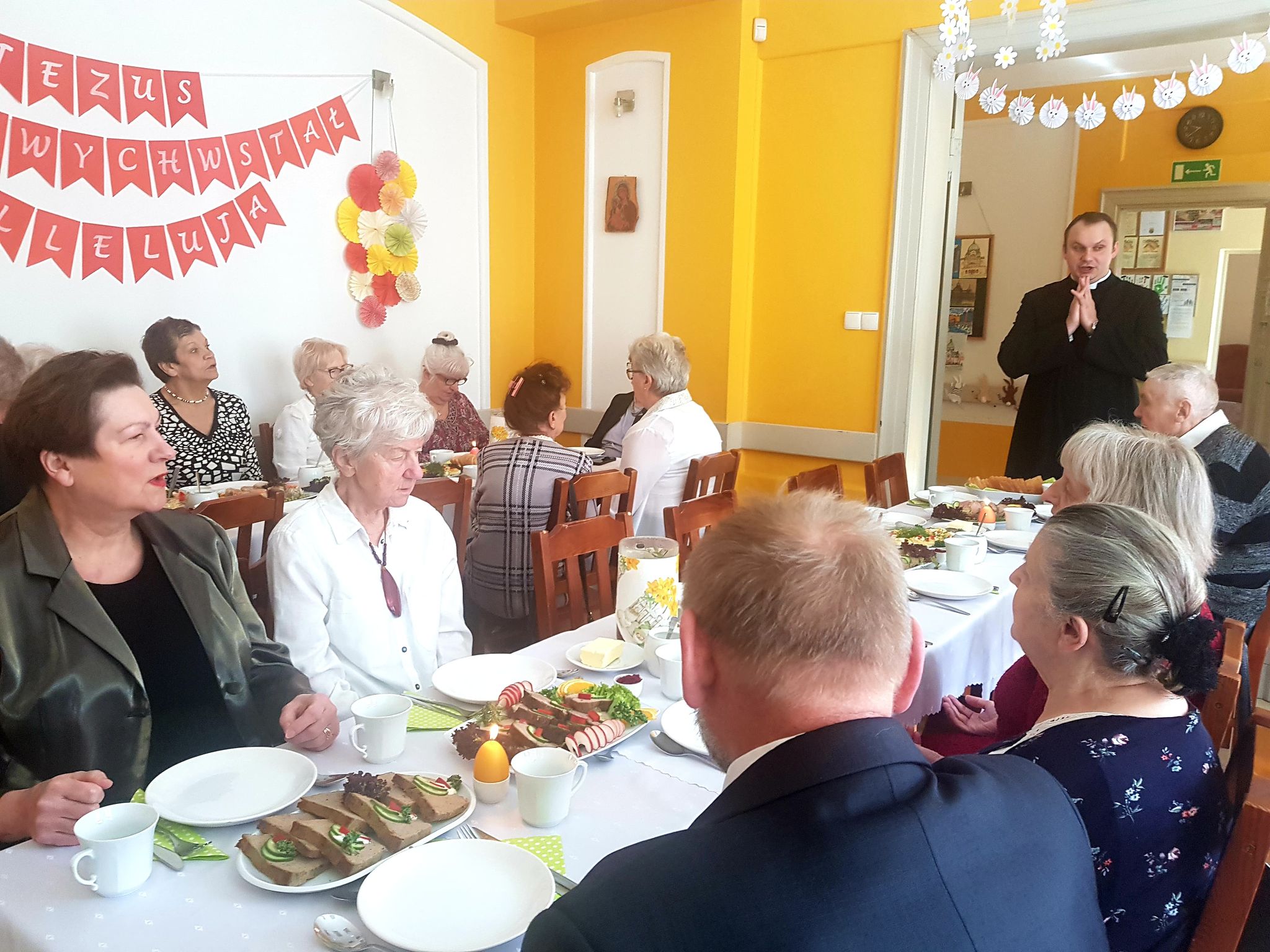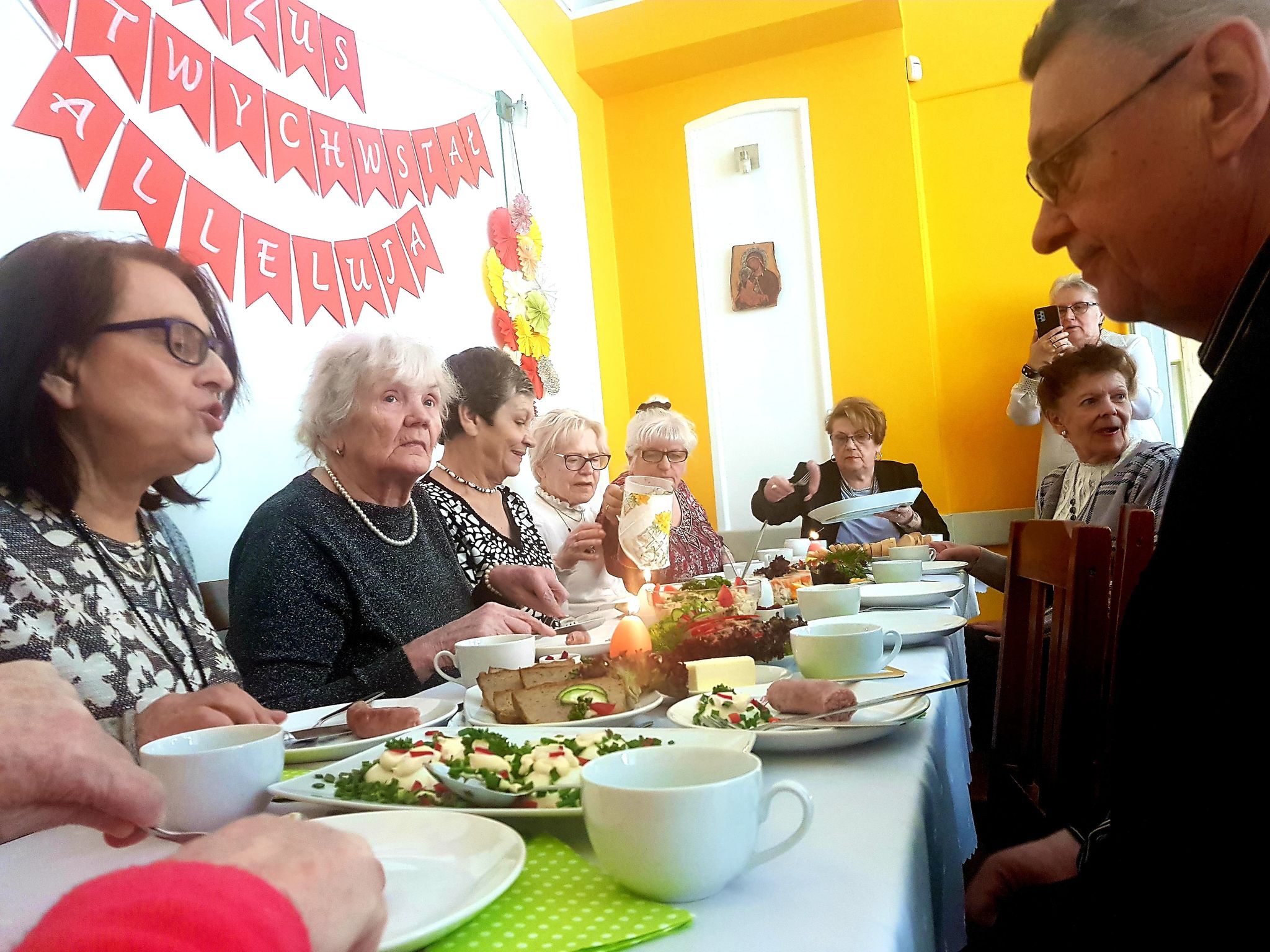 Wczoraj, wraz z Księdzem Andrzejem, świętowaliśmy Zmartwychwstanie. Cieszymy się, że możemy spotkać się w tym szczególnym czasie, porozmawiać, zjeść świąteczne potrawy. Mimo bardzo trudnej sytuacji związanej w wojną, patrzymy w przyszłość z nadzieją, którą daje Chrystus Zmartwychwstały.