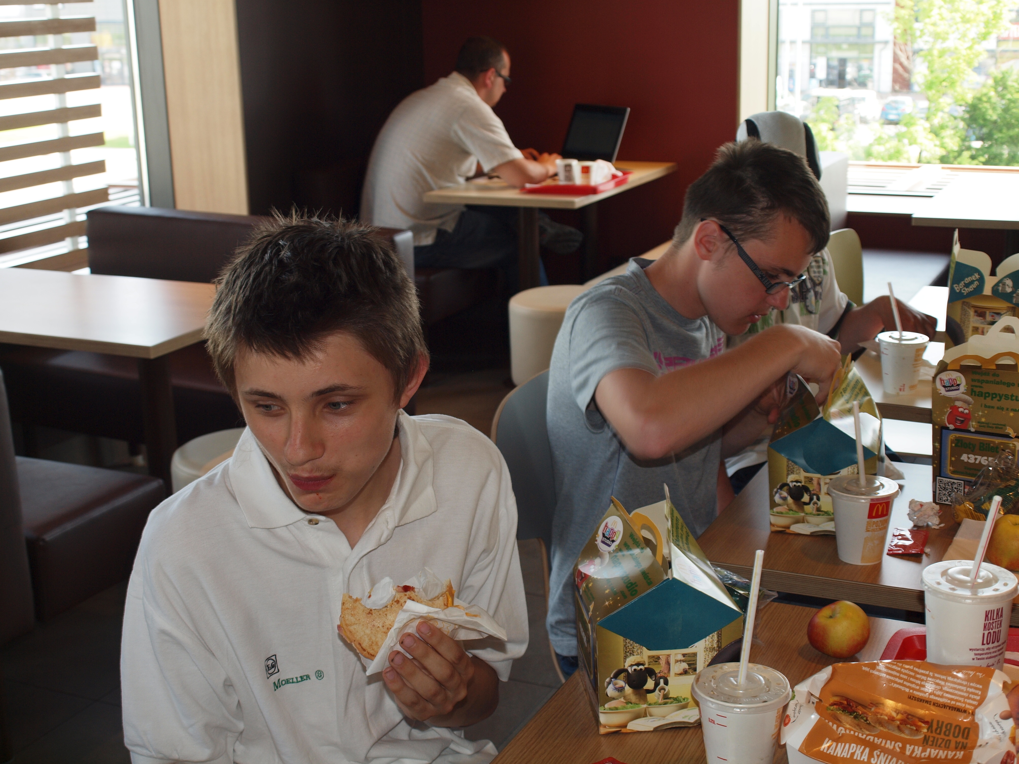 Nasz podopieczny obchodził 17.urodziny. Z tej okazji grupa „Mała Edukacja” wybrała się do restauracji Mc Donald w Gdańsku. Wszyscy byli bardzo zadowoleni z wyjazdu i tym bardziej z konsumpcji:)!