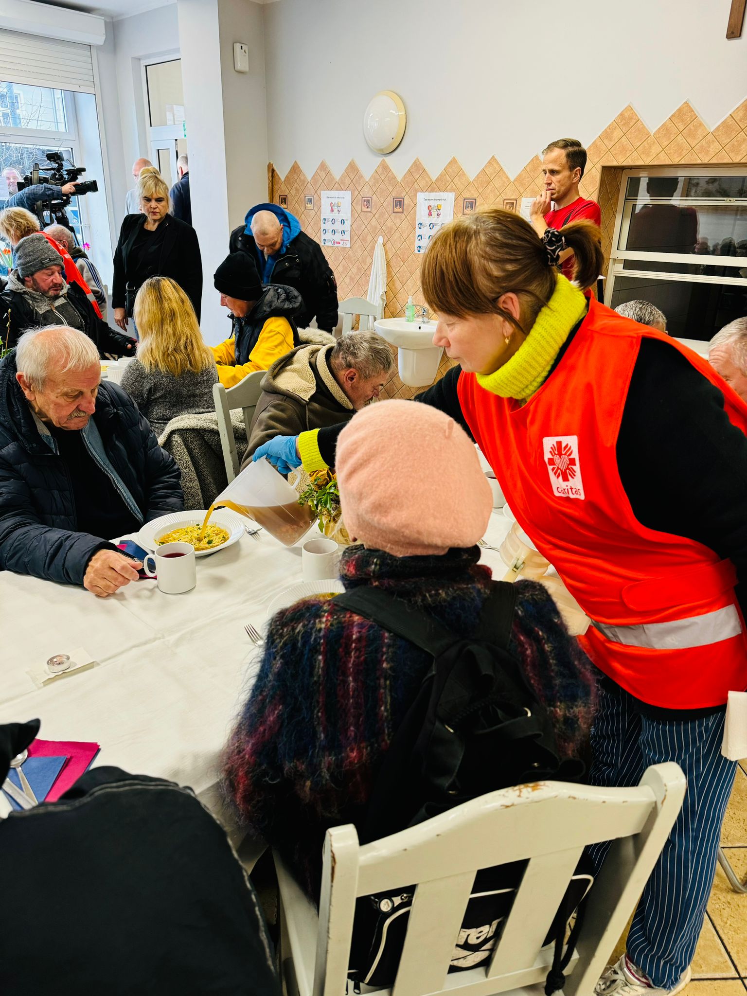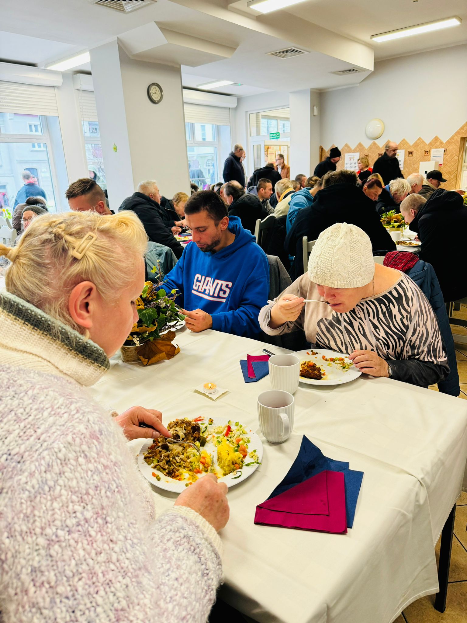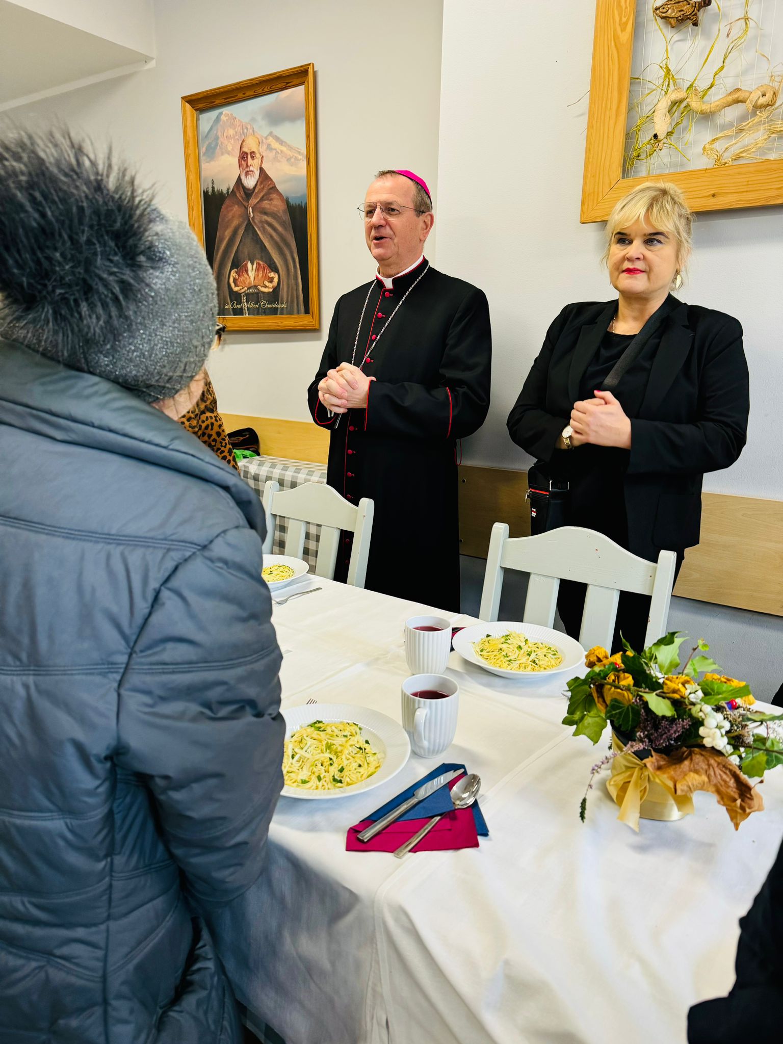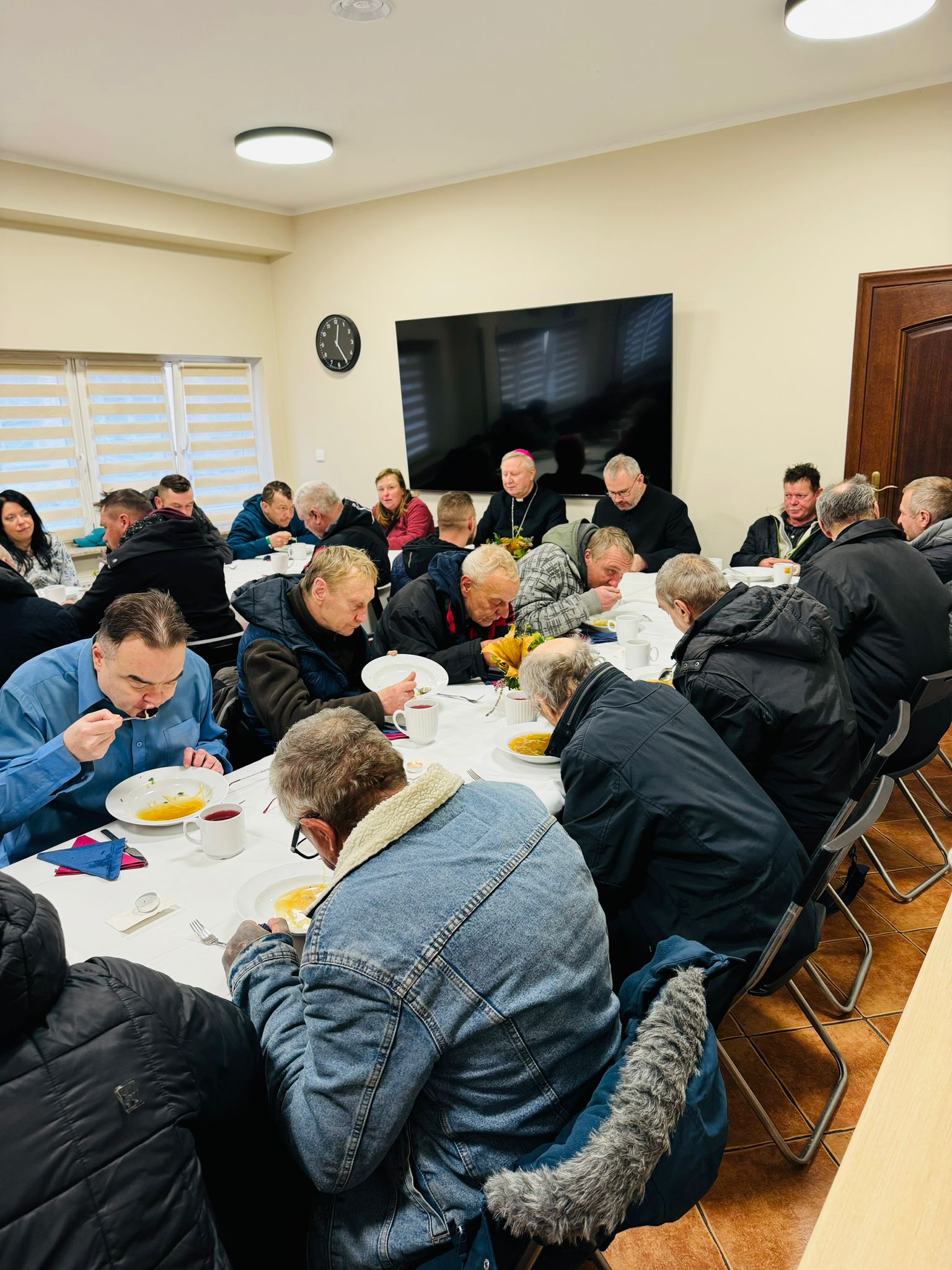 W Jadłodajni Gdańskiej Caritas do wspólnego, uroczystego stołu zasiedli Potrzebujący, Arcybiskup Tadeusz Wojda, Biskup Wiesław Szlachetka, Dyrektor CAG ks. Andrzej Wiecki oraz Wicedyrekor CAG ks. Piotr Weigelt