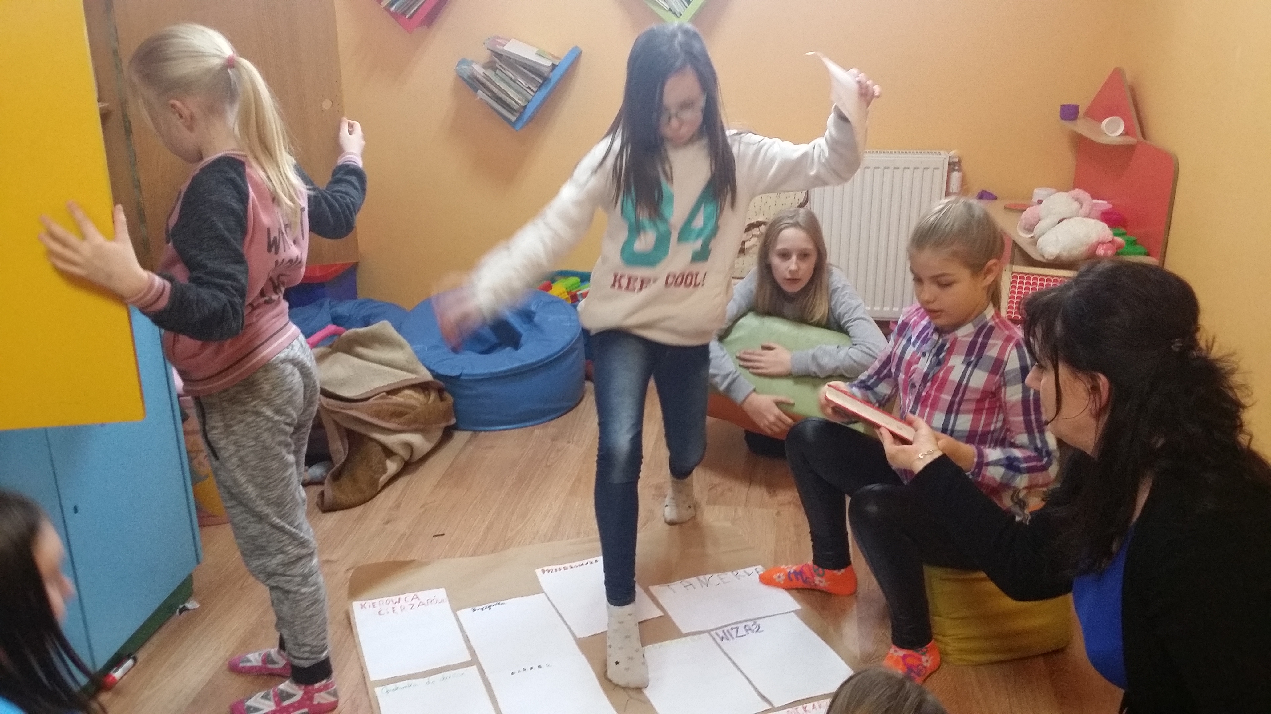 Pracując metodą projektu dzieci w świetlicy w Skrzeszewie na początku marca wymyślały nazwy zawodów opisując ich funkcje. Wspólnie zastanawiały się w jaki sposób możemy poznać dany zawód. Stworzyły plakat ułatwiający im zdobywanie wiedzy o zawodach. Kolejną czynnością będzie zapraszanie osób związanych z danymi zawodami do świetlicy oraz wycieczki do wybranych zakładów pracy. Dzieci z wielkim zaangażowaniem uczestniczyły w zajęciach.