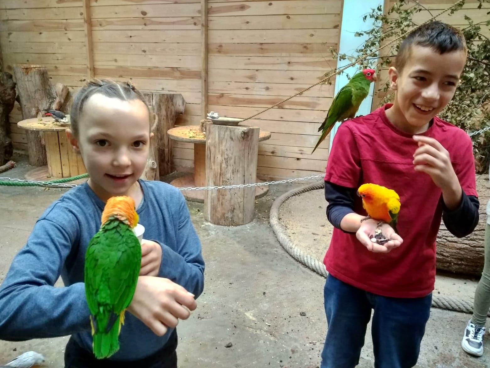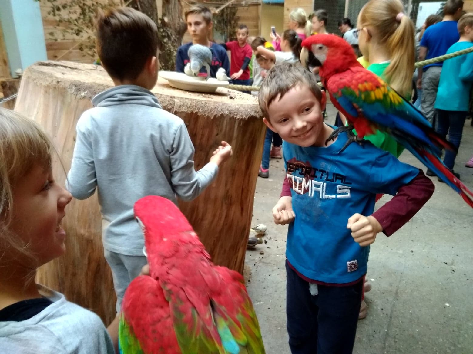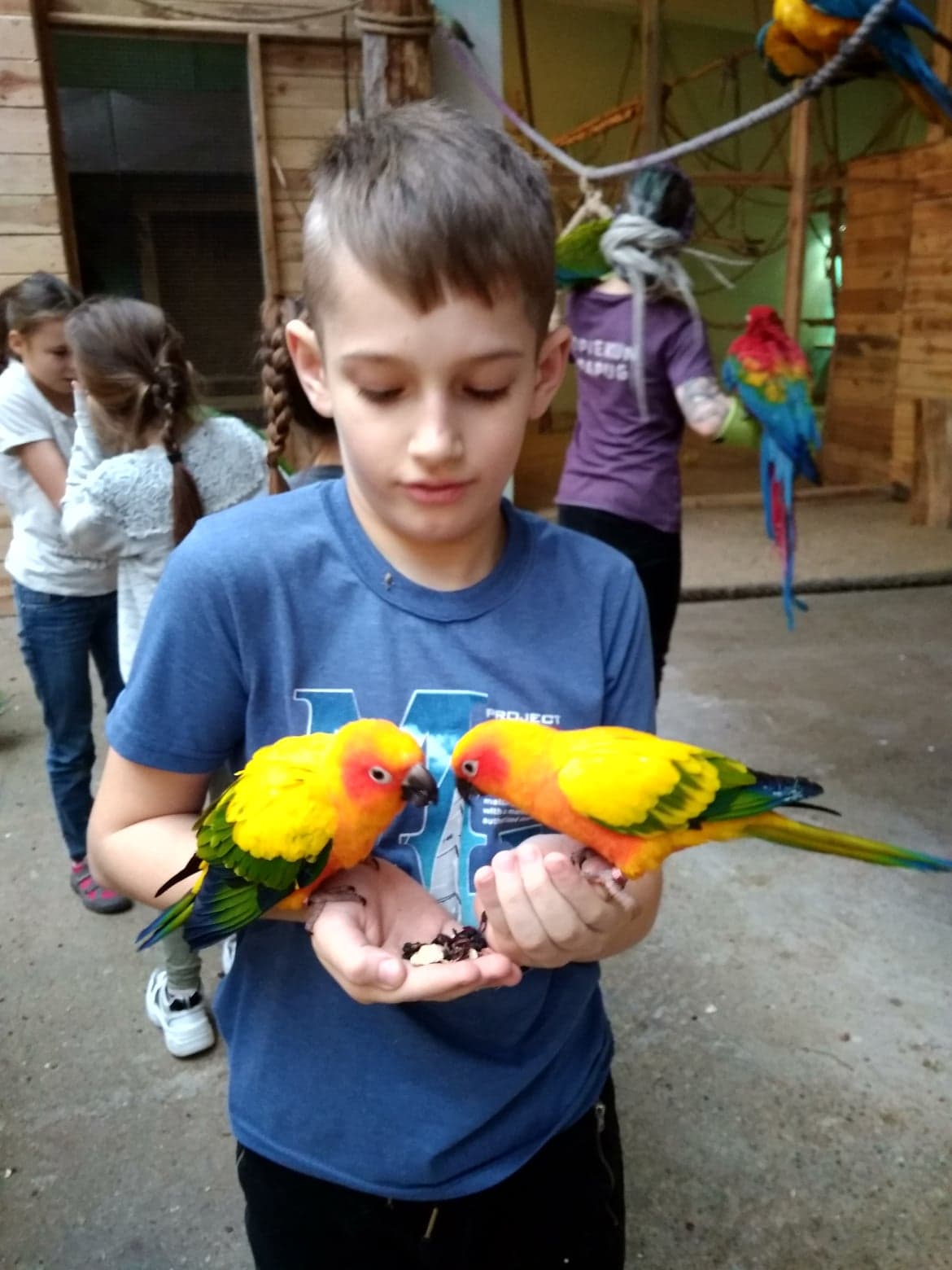 W sobotę rano około 50-osobowa grupa dzieci ze świetlic żukowskich odwiedziła gdańską Papugarnię. Po wejściu wyglądało to, jakbyśmy przenieśli się w inny wymiar. Mnóstwo papug różnej wielkości i ubarwienia, bardzo głośnych i towarzyskich od razu zaczęło do nas podlatywać, siadać na głowach i ramionach, próbując wyrwać nam z rąk kubki z karmą. Podczas wizyty poznaliśmy też surykatki i lemur. Co niektórzy mieli okazję wziąć udział w karmieniu tych drugich. Ta wizyta z pewnością na długo zostanie w naszej pamięci.