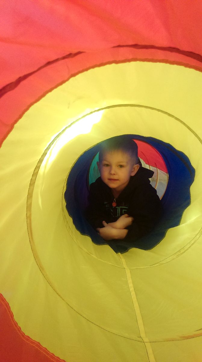 Wczoraj nasze Krasnale doskonale bawiły się podczas zajęć ogólnorozwojowych. Najwięcej radości sprawiła im zabawa w kolorowym tunelu.