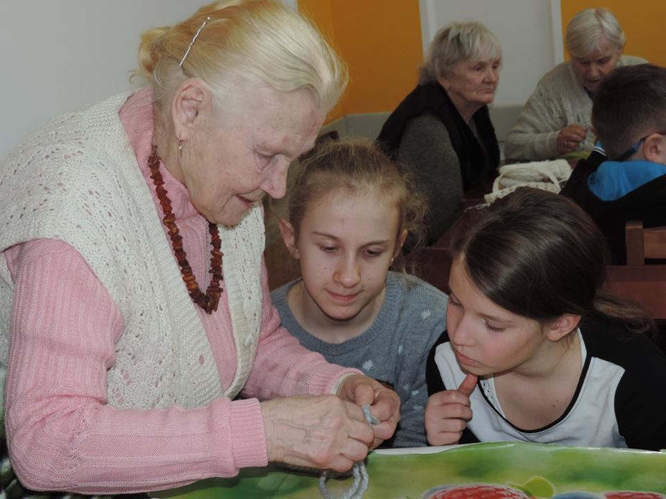 Rozpoczęliśmy współpracę ze szkołą nr 4. Odwiedziły nas dzieci z klas piątych, żeby uczyć się szycia na maszynie, szydełkowania i robienia na drutach. Seniorki bardzo zaangażowały się w nauczanie, a dzieci w naukę, która była miłą odmianą dla siedzenia w ławce przed tablicą. Mamy pierwsze szydełkowe dzieła i początki robótek na drutach, a chęć do nauki tych, wydawałoby się, zapomnianych prac, wśród młodzieży jest zaskakująca. Następne spotkanie odbędzie się w szkole, może teraz „babcie” czegoś nowego się nauczą.