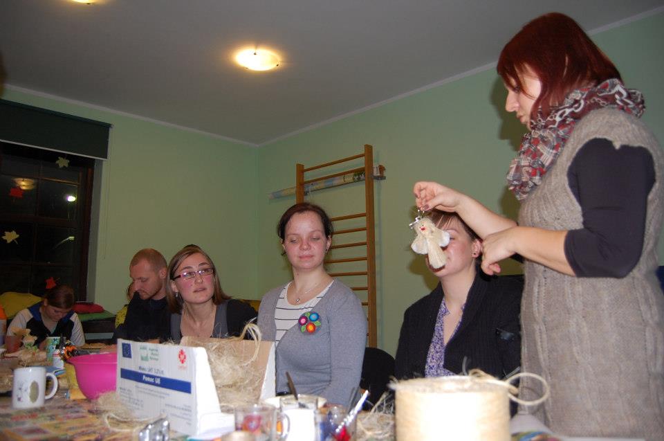 Na zajęciach wspólnie z młodzieżą i pracownikami Caritas tworzyliśmy figurki aniołów i królików z włókien (ze sznurka sizilowego). Praca była prosta, ale pozwoliła mi poznać innych i przedstawić im siebie. Było bardzo przyjemnie, często śmialiśmy się i opowiadaliśmy żarty. Wzruszyłam się widząc Olo, dwuletniego chłopca, który z zaciekawieniem biegał po sali i bawił się ze mną. Brakowało mi kontaktu z dziećmi w tym wieku, ponieważ pracowałam z takimi w Rumunii. Ten dzień upewnił mnie w tym, że nie popełniłam błędu dołączając do EVS i zmotywował mnie do dalszej pracy.