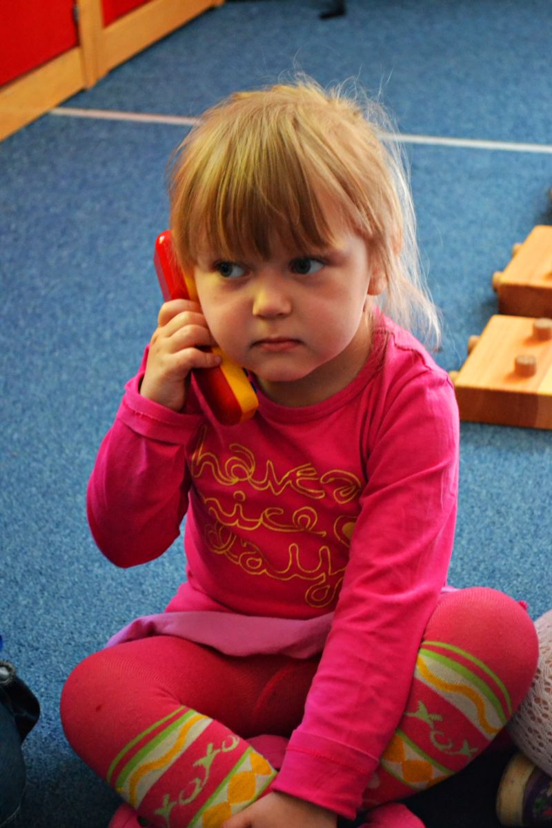 Po wizycie w Straży Pożarnej dzieci z grupy Radosne Krasnale ćwiczyły wzywanie pomocy numerem ratunkowym „112”.