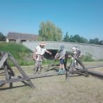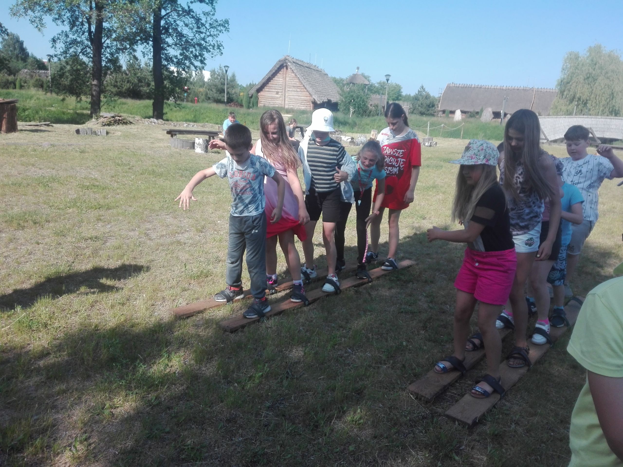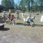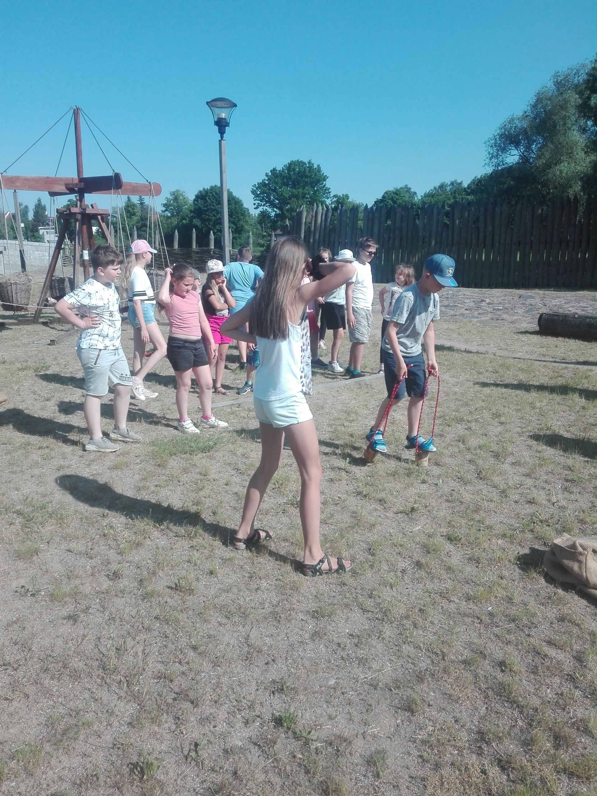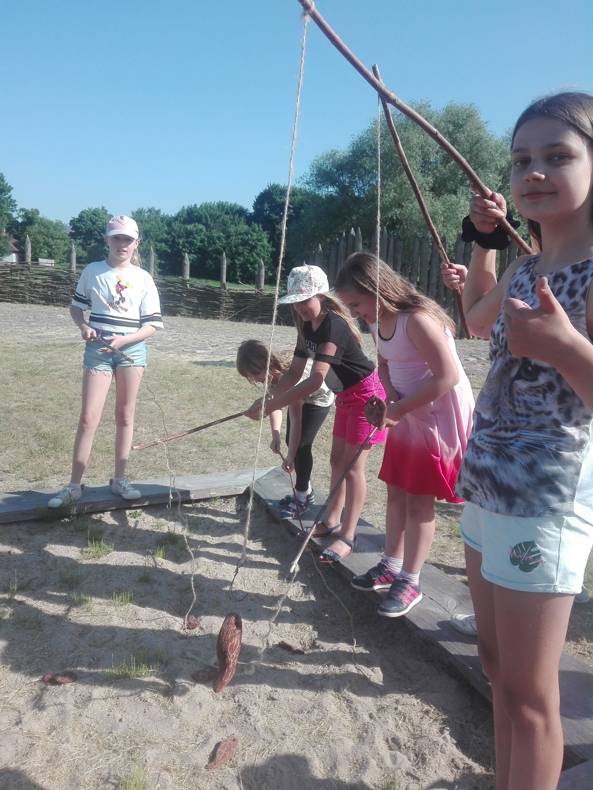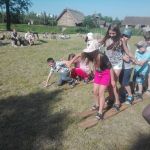 Wczoraj po południu grupy dzieci ze świetlicy w Niestępowie i Łapinie były na wycieczce w Faktorii Rzymskiej w Pruszczu Gdańskim. To było miłe popołudnie. Pierwsza wycieczka, po bardzo długim czasie. Po przyjeździe na miejsce zaspokoiliśmy głód jedząc kiełbaski upieczone na ognisku. Potem braliśmy udział w różnych grach i zabawach, tj. chodzenie na szczudłach, chodzenie po ruchomej równoważni, bieg w worku, bieg z dzidą na koniu, przeciąganie liny, łowienie rybek, chodzenie na deskach. Było dużo emocji i śmiechu. Następnie poznaliśmy magiczne pismo runiczne. Pisaliśmy wiadomości posługując się alfabetem Rzymian i na koniec każdy wykonał sobie na drewnianym krążku wybrane runy, które, jak wierzyli Rzymianie, miały magiczną moc. Obejrzeliśmy też znaleziska archeologiczne. Największe wrażenie zrobił szkielet kobiety.
