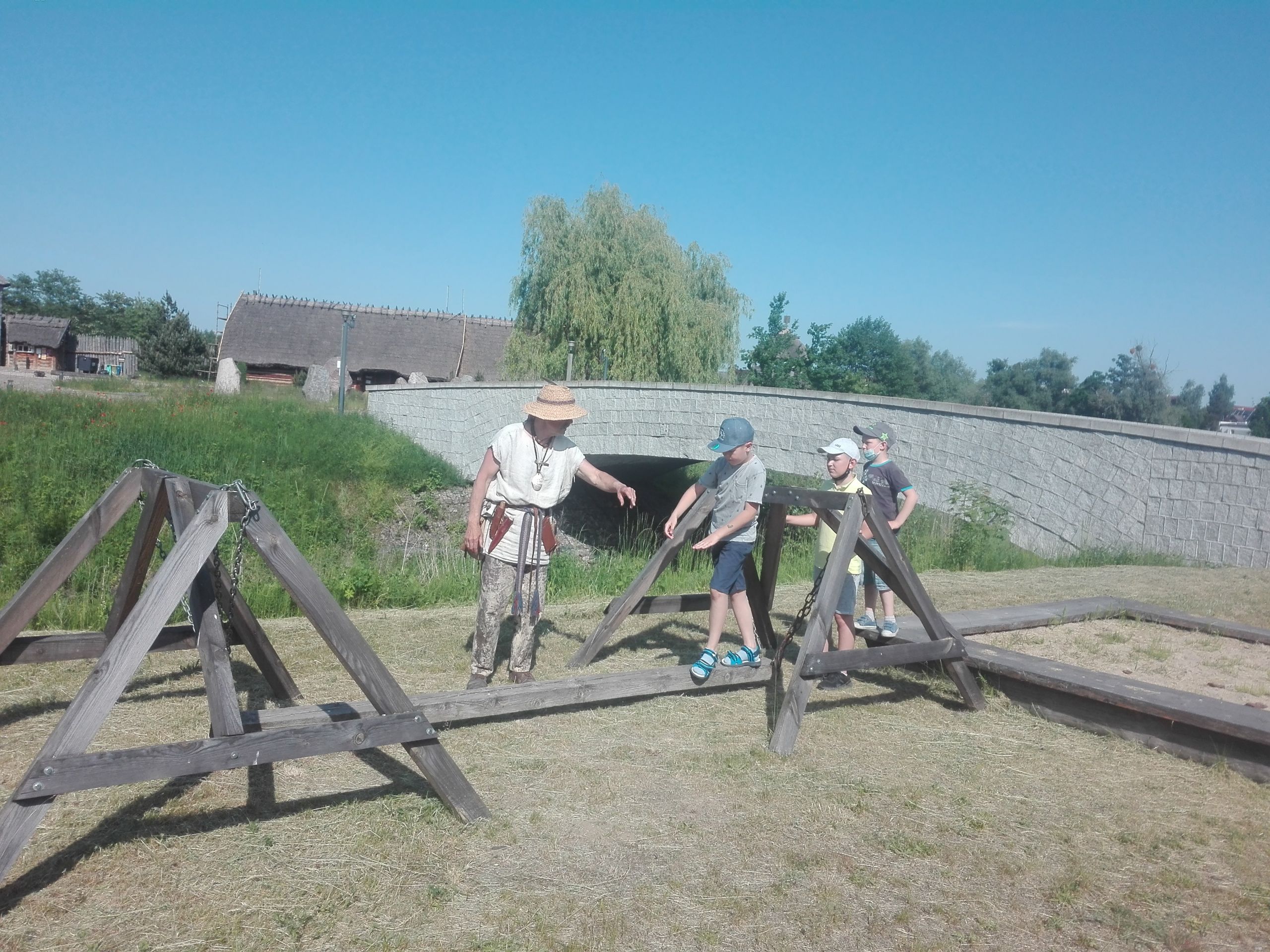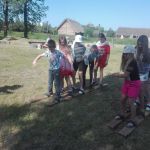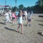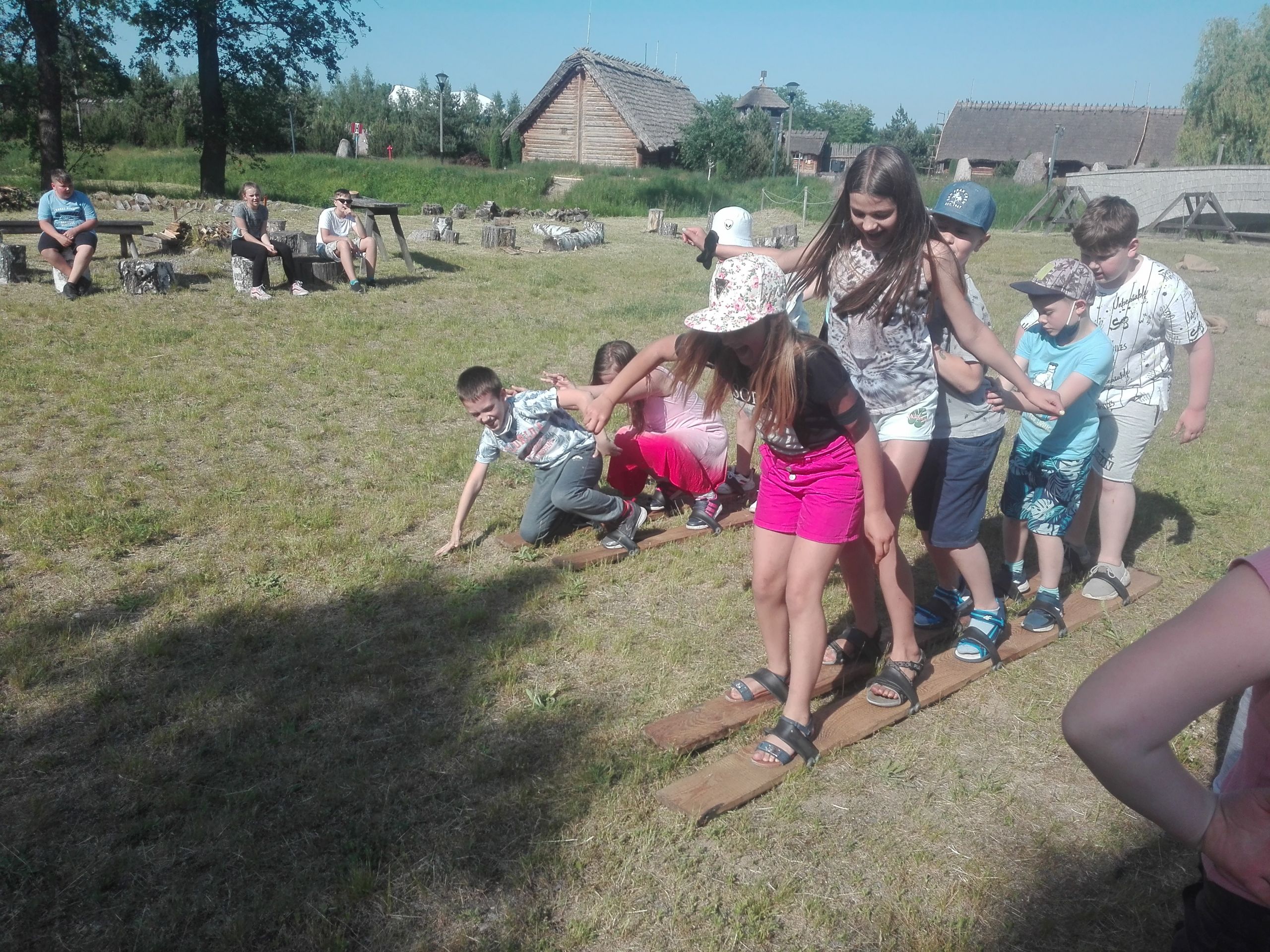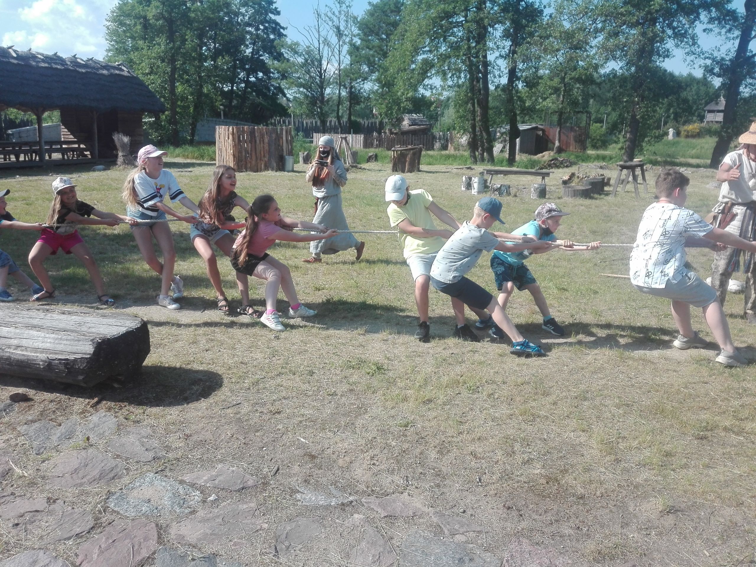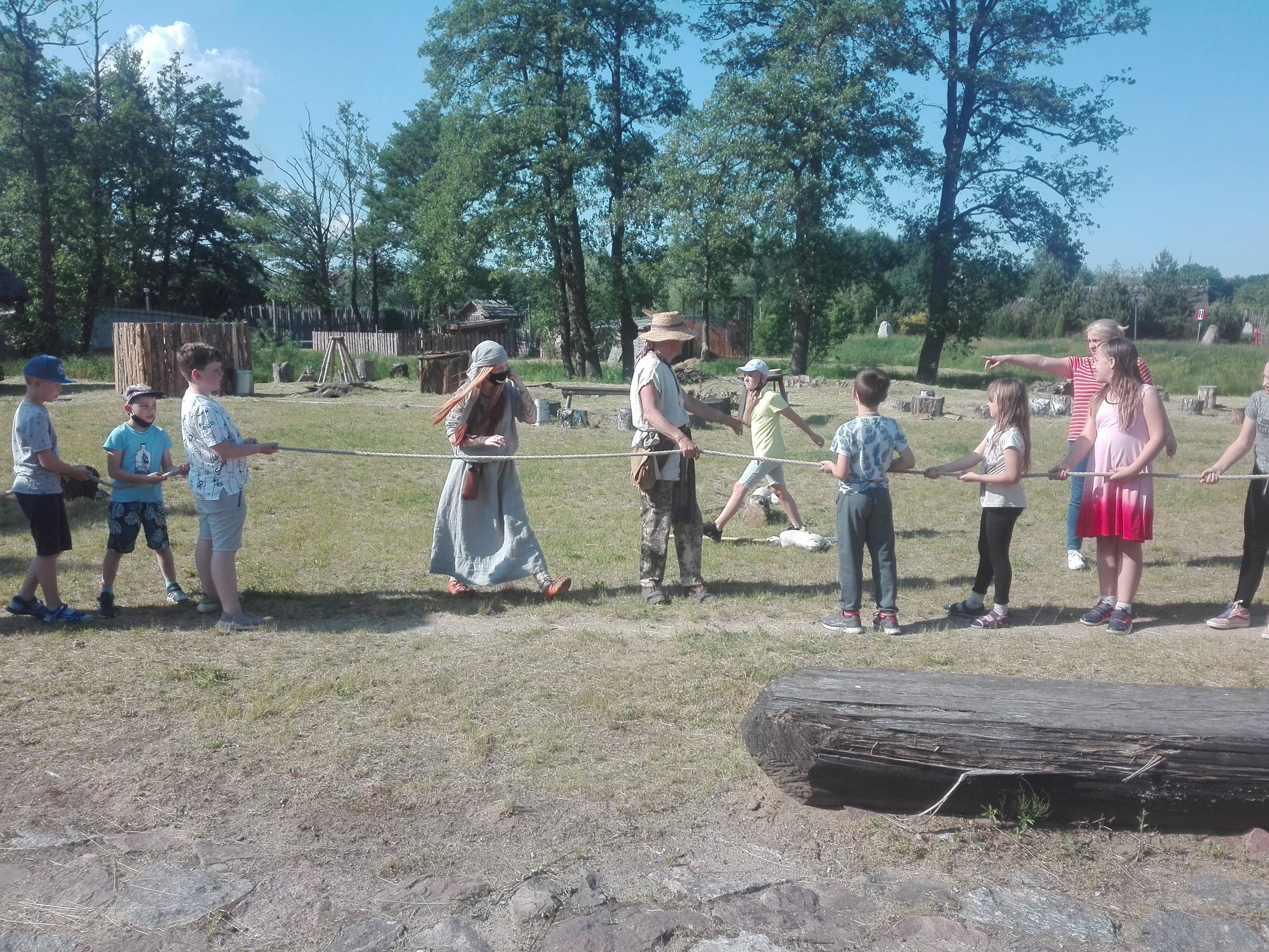 Wczoraj po południu grupy dzieci ze świetlicy w Niestępowie i Łapinie były na wycieczce w Faktorii Rzymskiej w Pruszczu Gdańskim. To było miłe popołudnie. Pierwsza wycieczka, po bardzo długim czasie. Po przyjeździe na miejsce zaspokoiliśmy głód jedząc kiełbaski upieczone na ognisku. Potem braliśmy udział w różnych grach i zabawach, tj. chodzenie na szczudłach, chodzenie po ruchomej równoważni, bieg w worku, bieg z dzidą na koniu, przeciąganie liny, łowienie rybek, chodzenie na deskach. Było dużo emocji i śmiechu. Następnie poznaliśmy magiczne pismo runiczne. Pisaliśmy wiadomości posługując się alfabetem Rzymian i na koniec każdy wykonał sobie na drewnianym krążku wybrane runy, które, jak wierzyli Rzymianie, miały magiczną moc. Obejrzeliśmy też znaleziska archeologiczne. Największe wrażenie zrobił szkielet kobiety.