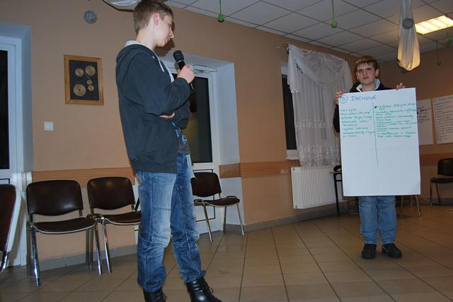 Po krótkim bloku zabaw integracyjnych rozpoczęliśmy zasadniczy blok zajęć. Wspólnie zastanawialiśmy się z jakimi problemami borykają się na co dzień osoby chore, bezdomni, niepełnosprawni, bezrobotni czy ofiary kataklizmów takich np. jak powódź czy trzęsienie ziemi. Zajęcia ciągnęły się do późnego wieczora, a rano już o ósmej spotkaliśmy się na Mszy św., żeby od modlitwy zacząć kolejny dzień szkolenia.
