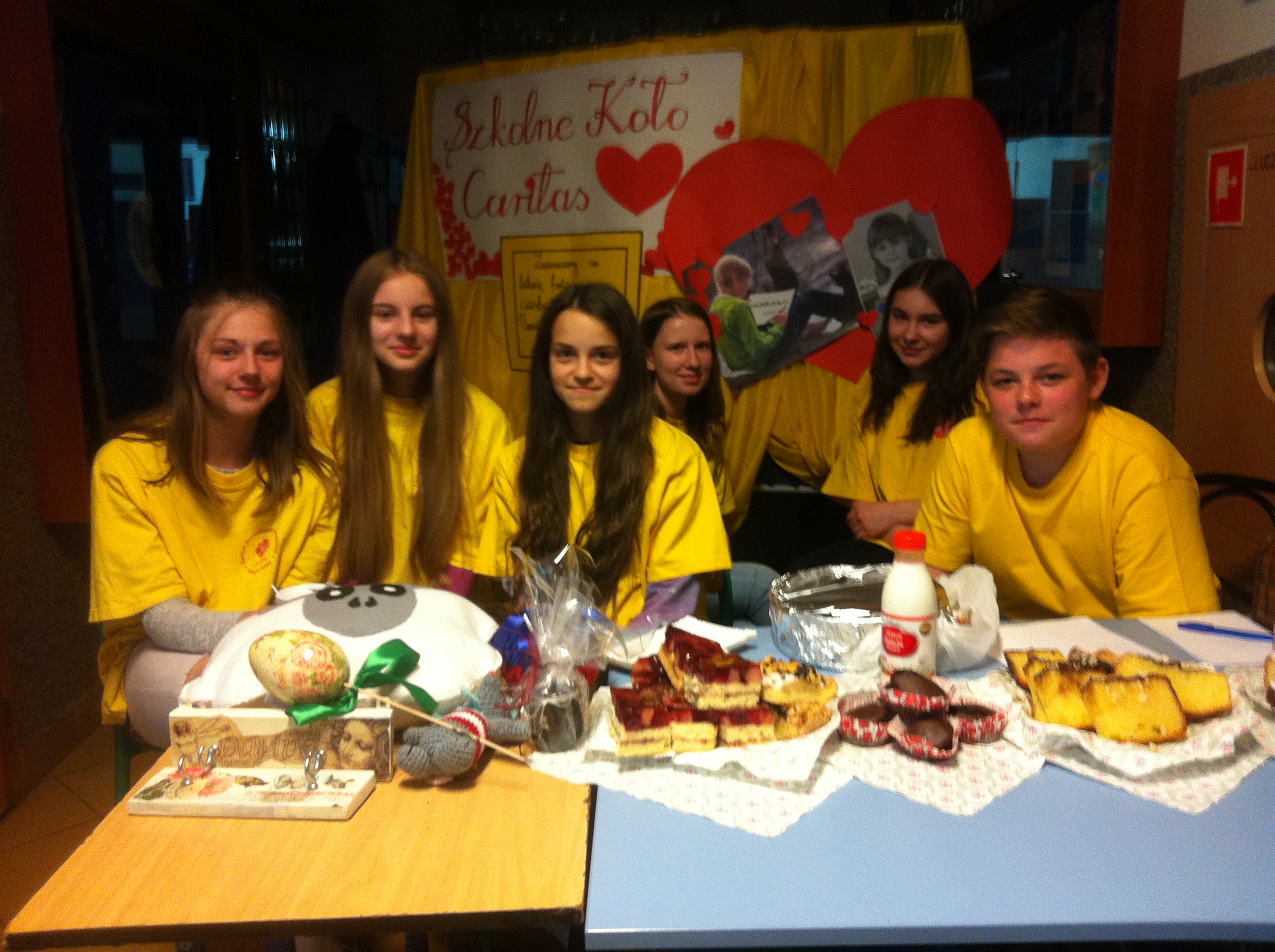 Szkolne koło Caritas z Gimnazjum nr 1 w Rumi przygotowało bardzo pyszne ciasta oraz loterie fantową, na którą nasi uczniowie własnoręcznie przygotowali fanty. Dochód z tego przedsięwzięcia wynosił 297 zł. Przekazaliśmy go na ręce zastępcy dyrektora Caritas Archidiecezji Gdańskiej księdza Piotra Brzozowskiego. Dziękujemy wszystkim rodzica za wsparcie naszej szlachetnej akcji!