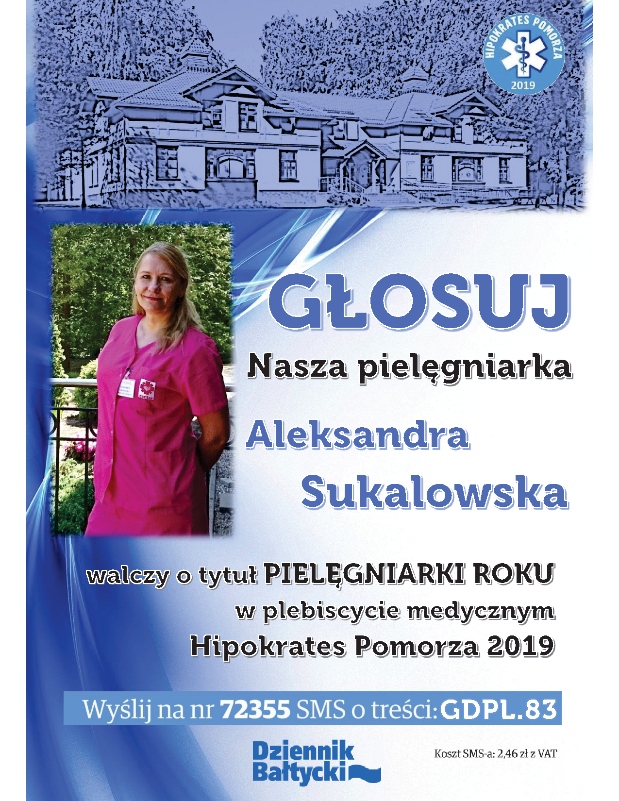 Ola Sukalowska nominacja w plebiscycie Hipokrates 2019 na pielęgniarka roku. Można głosować wysyłając sms o treści: GDPL.83 (DUŻE LITERY) na nr. 72355
