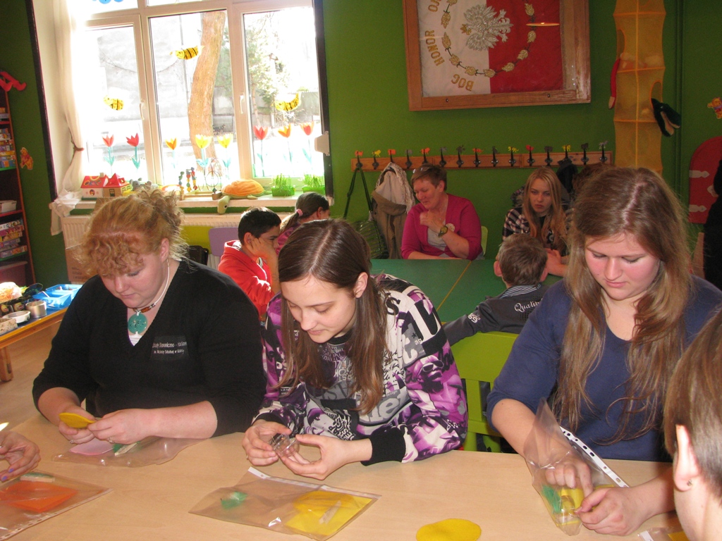 Dnia 26.03.2012r. odbyły się warsztaty dekoracji wielkanocnych dla dzieci i młodzieży z programu SKRZYDŁA w Gdańskim Archipelagu Kultury ,,Dworek Artura” na Oruni Dolnej. Pani Emilia, która prowadziła warsztaty, pokazała nam kilka prac, które były już wcześniej przygotowane, a następnie dała nam małe jajeczka akrylowe, jajka z filcu i kartki wielkanocne. Wszystkie te rzeczy sami ozdabialiśmy różnymi mazakami, piórkami, kolorowymi kartkami. Mieliśmy również do dyspozycji szablony króliczków. Na początku każdy zastanawiał się jakie ozdoby zrobić, ale jak już przyszedł pomysł to wszyscy zabrali się do pracy i w skupieniu upiększali swoje dzieła. Na koniec każdy ze skrzydlatych mógł zabrać swoje ozdoby do domu. Takie warsztaty to bardzo dobry pomysł, rozwija wyobraźnię i zdolności manualne.
