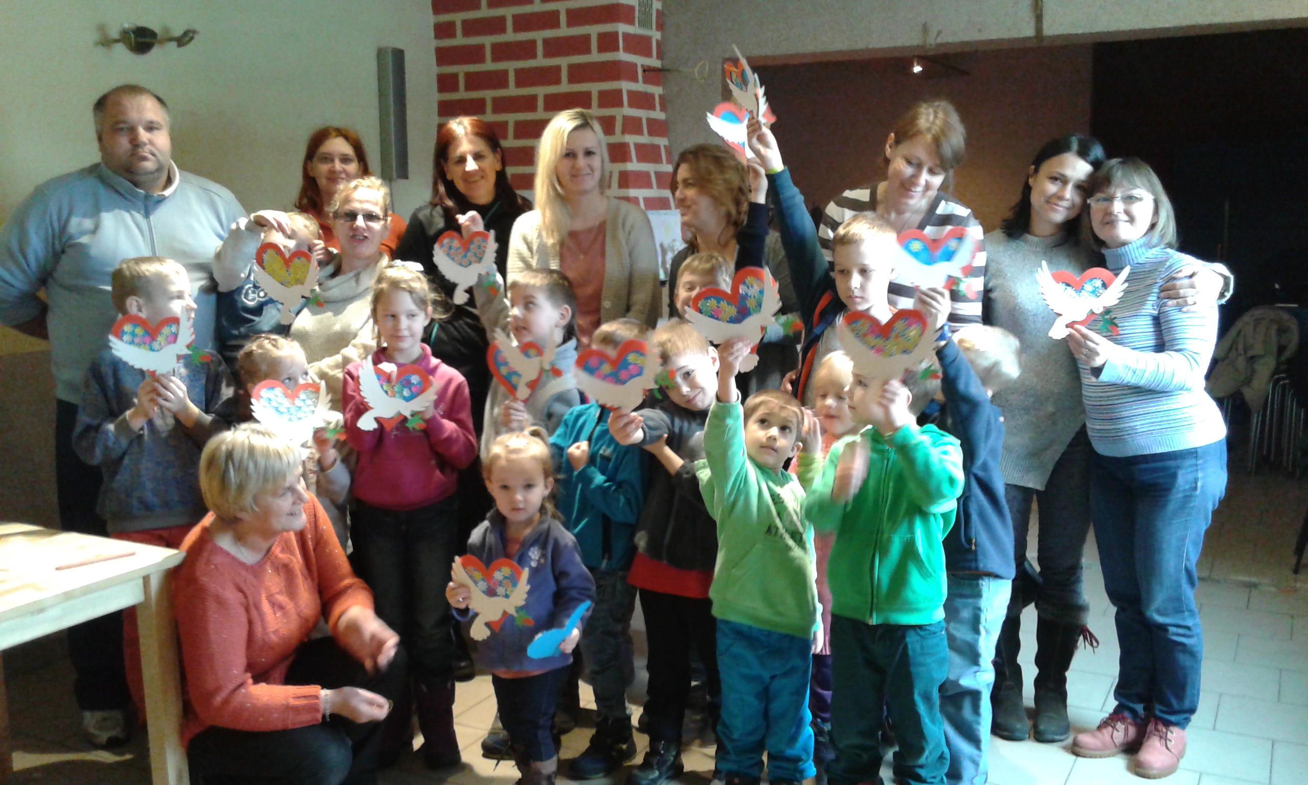 W dniu 05.03.2016 r. spotkaliśmy się na Warsztatach Artystycznych organizowanych dla naszych parafian. Warsztaty związane były z czasem Wielkiego Postu, który właśnie przeżywamy. Rodziny uczestniczące w zajęciach wykonały serca. Choć są one wykonane z papieru mają jednak bardzo głęboki wyraz naszego pięknego wnętrza w czasie Wielkiego Postu. Wszystkim uczestnikom bardzo się podobały wykonane prace. Całe rodziny bardzo się zaangażowały, aby praca była starannie wykonana. Na koniec zajęć zrobiliśmy sobie pamiątkowe zdjęcie. Potem omówiliśmy scenariusz wielkanocny i podzieliliśmy się rolami na występ Wielkanocny w Domu Seniora. Ćwiczyliśmy śpiew nowej piosenki i układ tańca – dobrze nam szło.